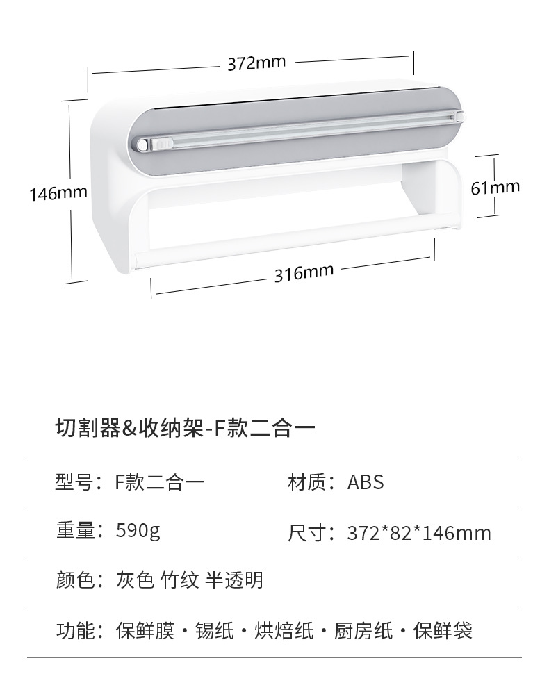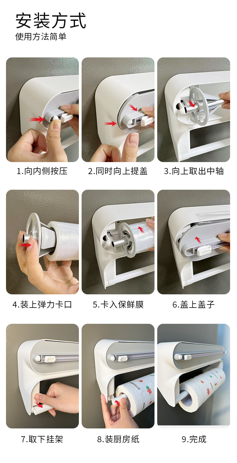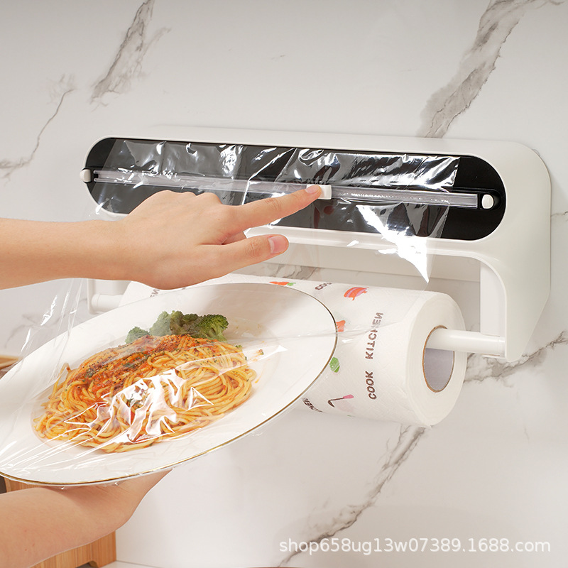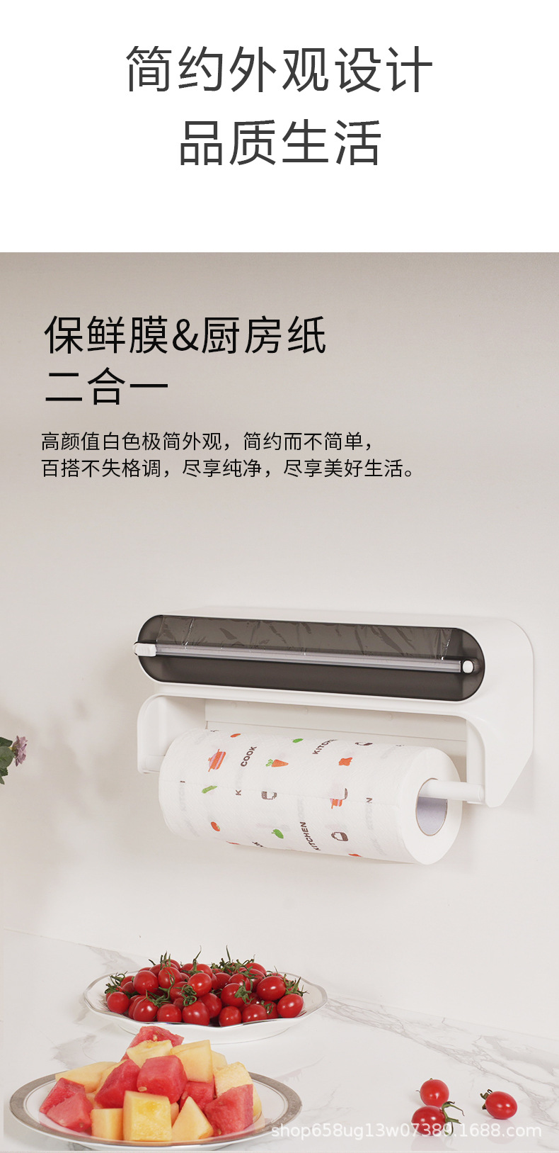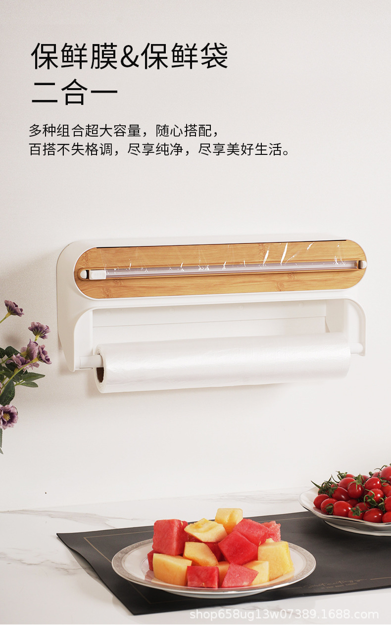 二合一保鲜膜切割器磁吸挂墙两用厨房纸收纳架锡纸烘焙纸保鲜袋架