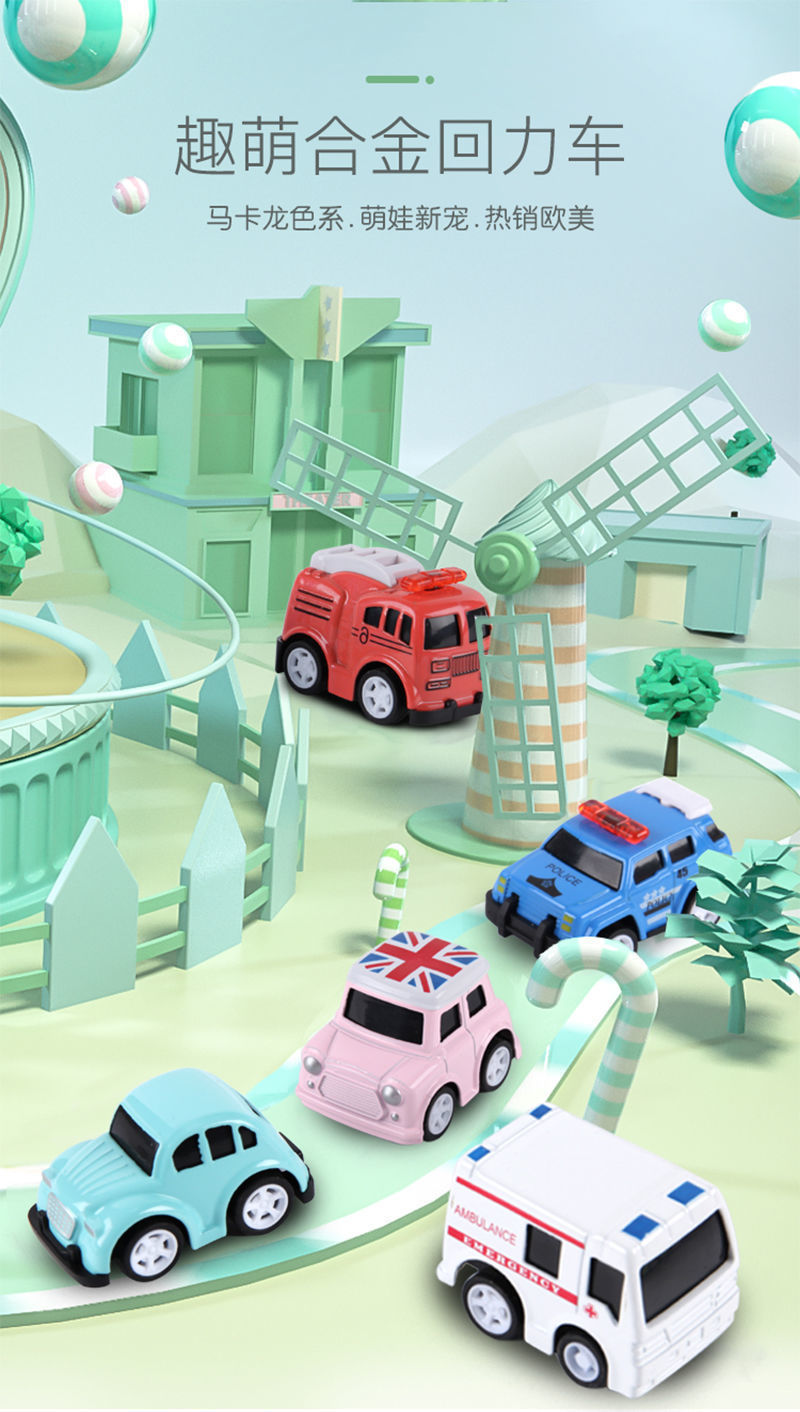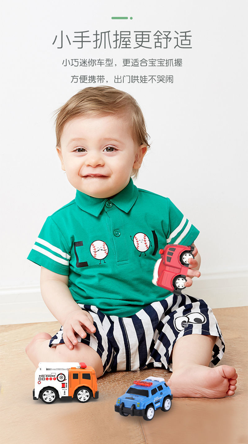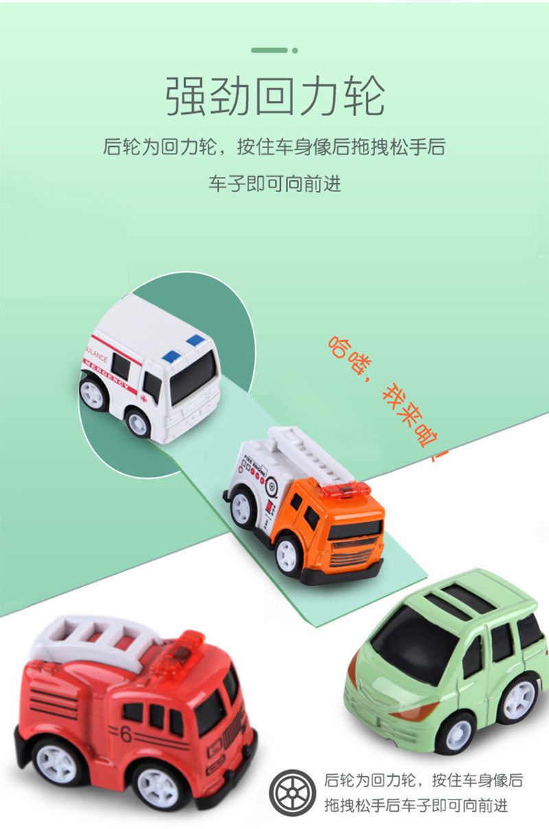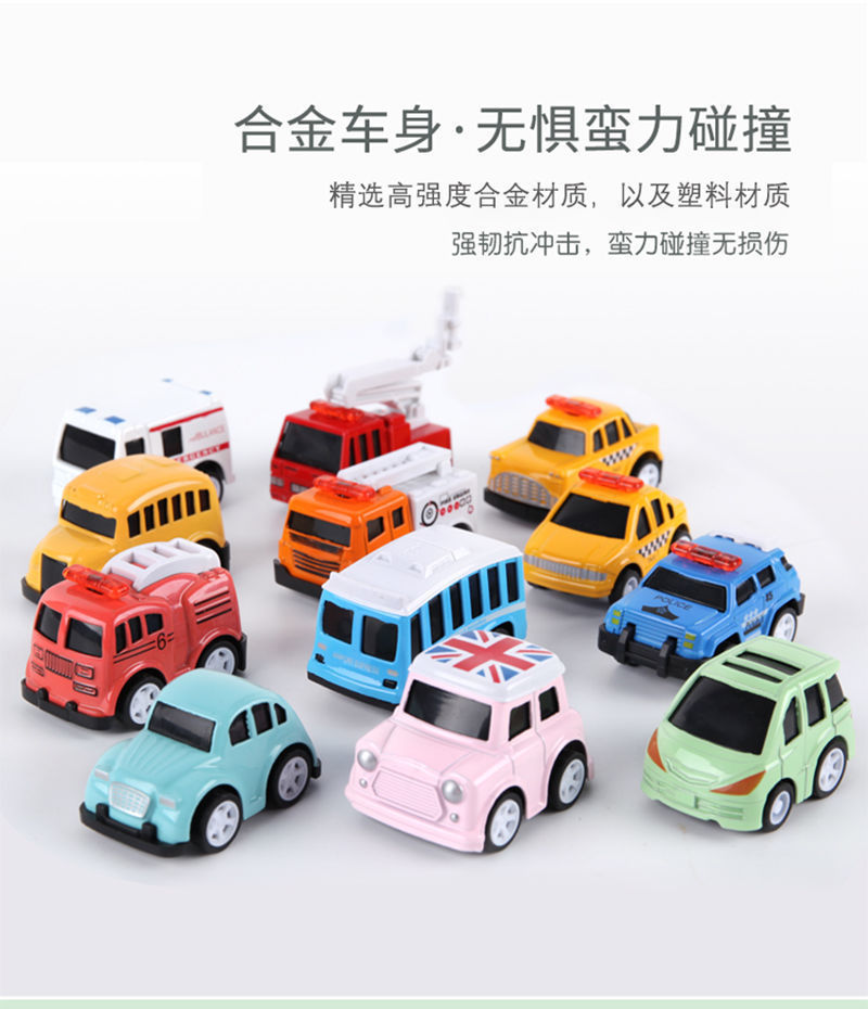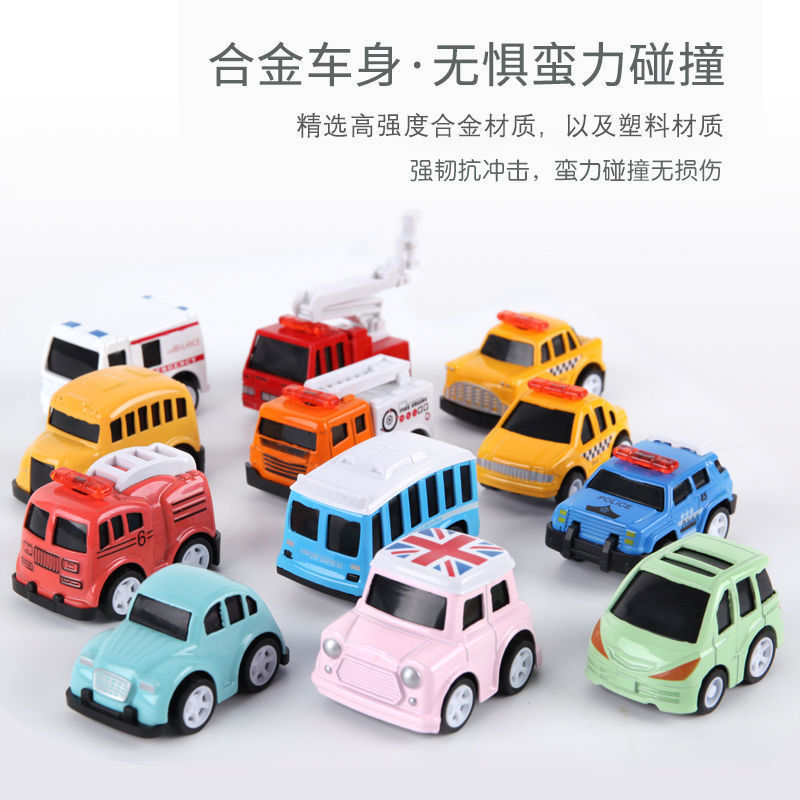 跨境q版迷你合金车耐摔回力工程车挖掘机的士小汽车儿童玩具消防
