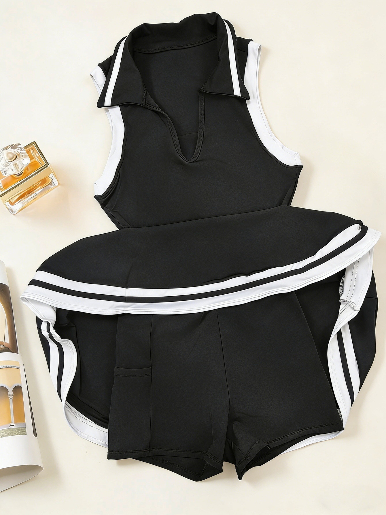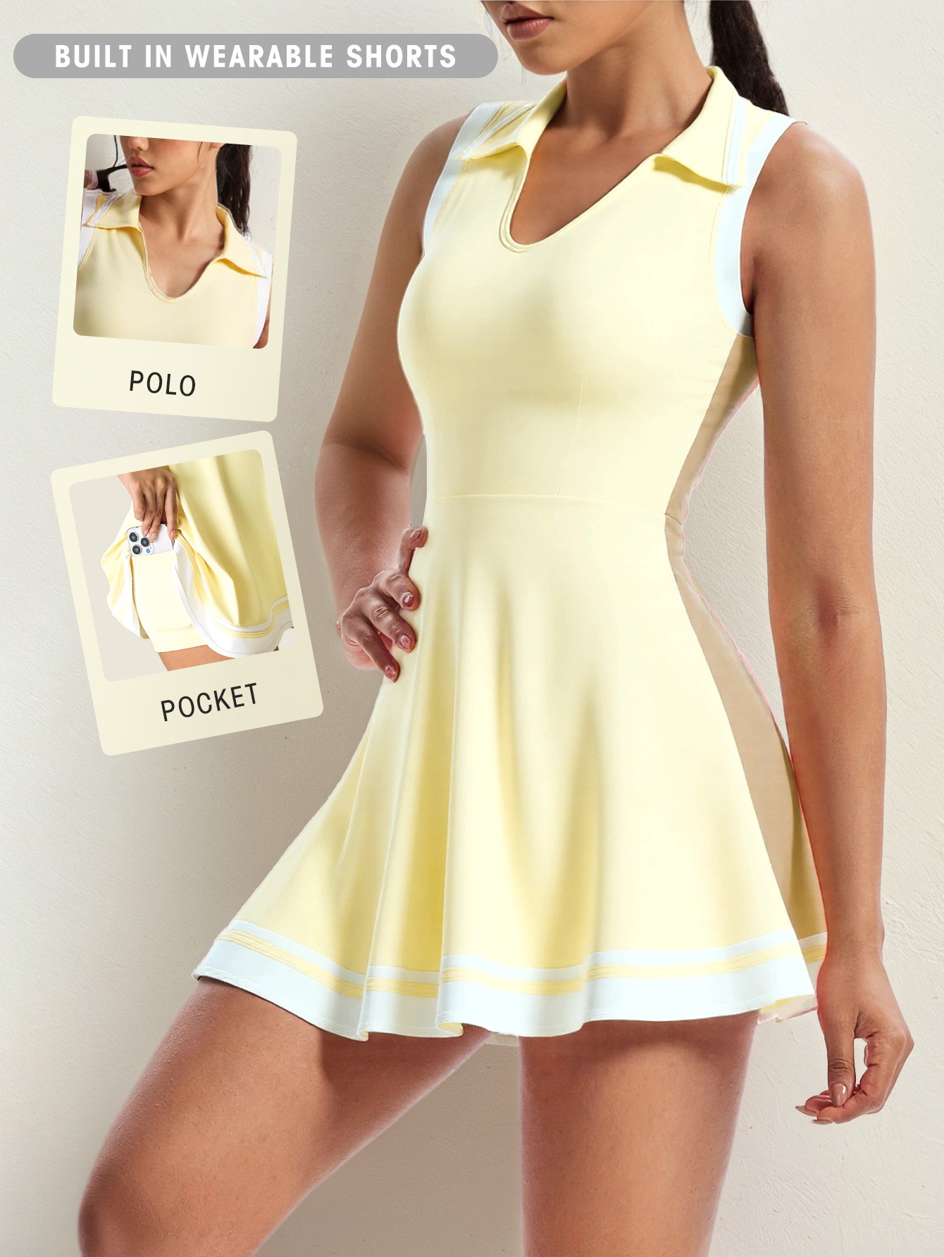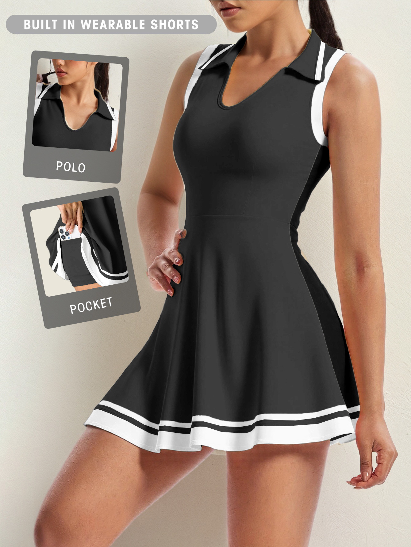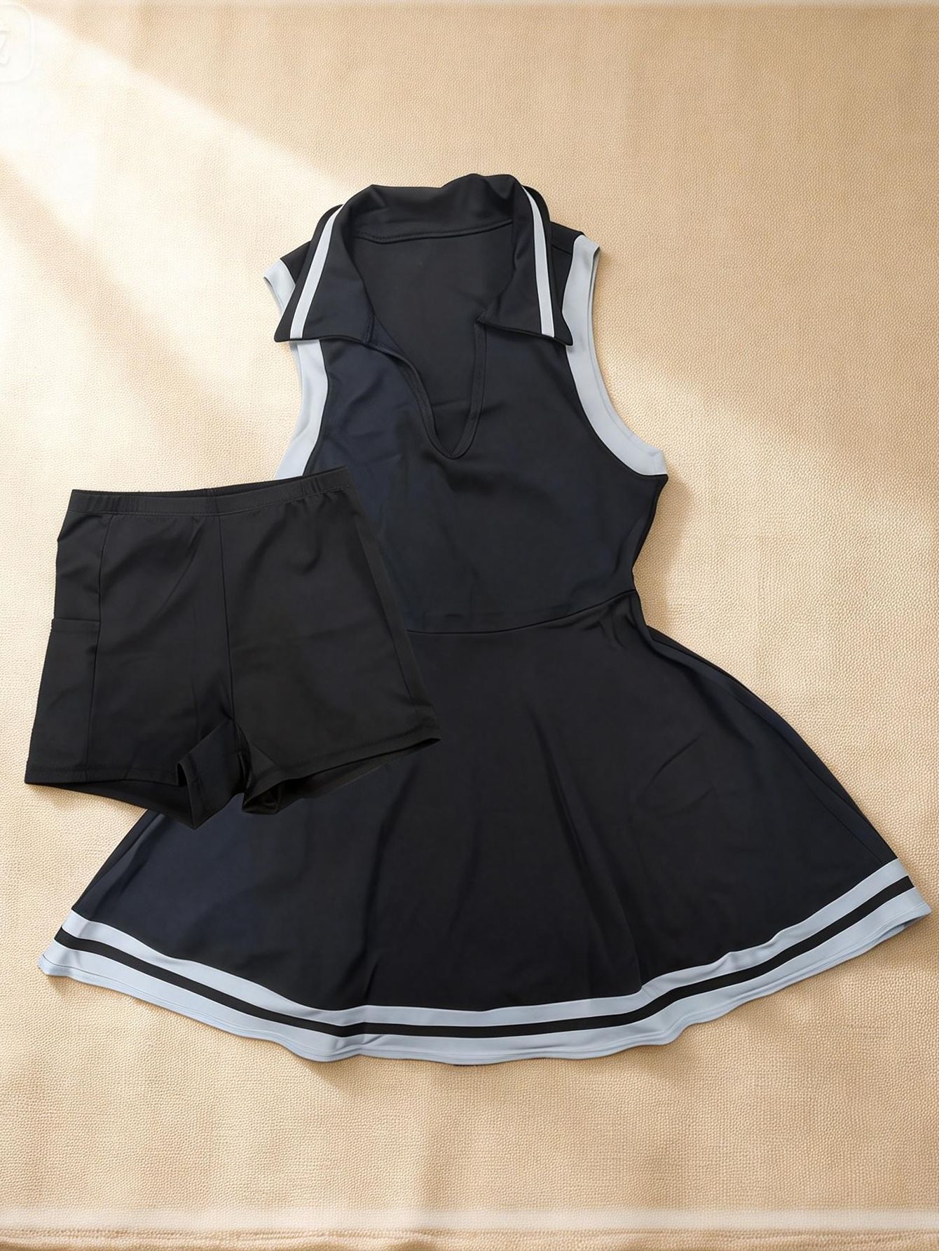 Женский комплект из двух предметов: платье и шорты с эффектом подтяжки ягодиц и защитой от просвечивания, облегающее платье без рукавов для активного отдыха
