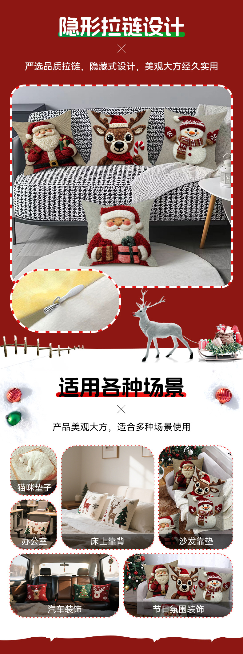 圣诞系列抱枕套 圣诞节日氛围装饰客厅沙发靠枕厂家批发来图批发
