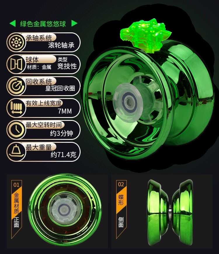 海洋蓝溜溜球(送精美包装+兽头+彩绳); 炽热红溜溜球(送精美包装+兽头+彩绳); 土豪金溜溜球(送精美包装+兽头+彩绳); 草原绿溜溜球(送精美包装+兽头+彩绳); 紫罗兰溜溜球(送精美包装+兽头+彩绳); 玫红色溜溜球(送精美包装+兽头+彩绳); 宝蓝溜溜球(送精美包装+兽头+彩绳); 银色溜溜球(送精美包装+兽头+彩绳); 玫瑰金溜溜球(送精美包装+兽头+彩绳); 合金萝卜球.溜溜球(无灯光); (大号)炫紫渐变色溜溜球; (大号)炫红渐变色溜溜球; 新手入门塑料灯光悠悠球(蓝色); 新手入门塑料灯光悠悠球(紫色); 新手入门塑料灯光悠悠球(绿色); 新手入门塑料灯光悠悠球(黄色); 新款渐变合金溜溜球直径最大款蓝色; 新款渐变合金溜溜球直径最大款绿色; 新款渐变合金溜溜球直径最大款金色; 新款渐变合金溜溜球直径最大款红色; 烈焰兽魂七彩灯发光溜溜球; 蓝魅兽魂七彩灯发光溜溜球; 白凌兽魂七彩灯发光溜溜球; 炫彩烈焰兽魂彩灯发光溜溜球; 炫彩蓝魅兽魂彩灯发光溜溜球; 炫彩白凌兽魂彩灯发光溜溜球; 蓝色合金旋风悠悠球(无灯光); 紫色合金旋风悠悠球(无灯光); 红色合金旋风悠悠球(无灯光); 绿色合金旋风悠悠球(无灯光); 透明实心塑料单轴悠悠球-蓝色(无灯光); 透明实心塑料单轴悠悠球-红色(无灯光); 透明实心塑料单轴悠悠球-黄色(无灯光); 透明实心塑料单轴悠悠球-绿色(无灯光); 圆形实色塑料单轴悠悠球-蓝色(无灯光); 圆形实色塑料单轴悠悠球-红色(无灯光); 圆形实色塑料单轴悠悠球-黄色(无灯光); 圆形实色塑料单轴悠悠球-绿色(无灯光); 巧巧蓝色合金悠悠球(无灯光); 巧巧粉色合金悠悠球(无灯光); 巧巧黄色合金悠悠球(无灯光); 新磨砂小款蓝色溜溜球(无灯光); 新磨砂小款绿色溜溜球(无灯光); 新磨砂小款玫红色溜溜球(无灯光); 新磨砂小款金色溜溜球(无灯光); 新磨砂小款银色溜溜球(无灯光); 新磨砂大款蓝色溜溜球(无灯光); 新磨砂大款绿色溜溜球(无灯光); 新磨砂大款玫红色溜溜球(无灯光); 新磨砂大款紫色溜溜球(无灯光); 新磨砂大款金色溜溜球(无灯光); 新磨砂大款红色溜溜球(无灯光); 新磨砂大款银色溜溜球(无灯光); 烈马流星塑料悠悠球(带七彩灯光); 青鹰流星塑料悠悠球(带七彩灯光); 蓝豚流星塑料悠悠球(带七彩灯光); 金龙流星塑料悠悠球(带七彩灯光); 红色极光塑料悠悠球(带七彩灯光); 绿色极光塑料悠悠球(带七彩灯光); 蓝色极光塑料悠悠球(带七彩灯光); 金色极光塑料悠悠球(带七彩灯光); 卡迪红焰合金溜溜球-红色(无灯光); 卡迪蓝魔合金溜溜球-蓝色(无灯光); 卡迪金闪合金溜溜球-金色(无灯光); 卡迪绿波合金溜溜球-绿色(无灯光)