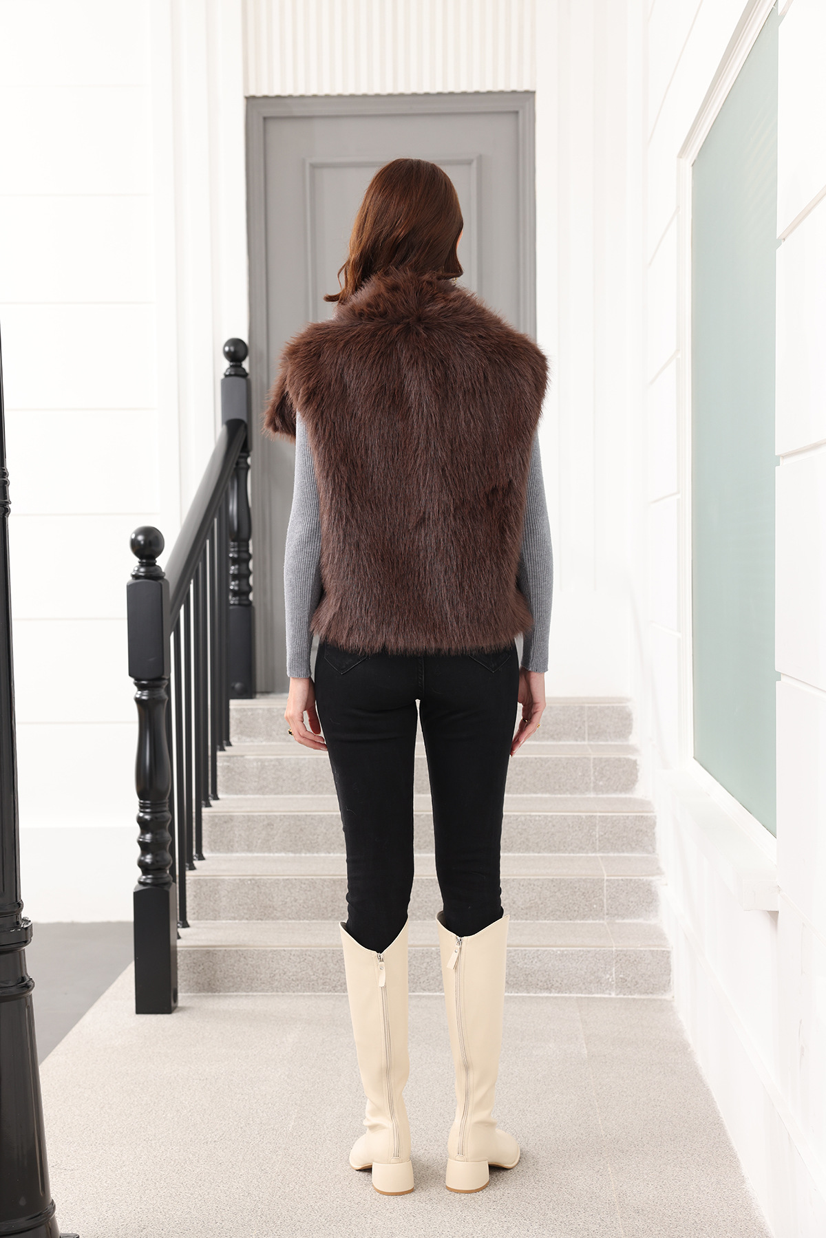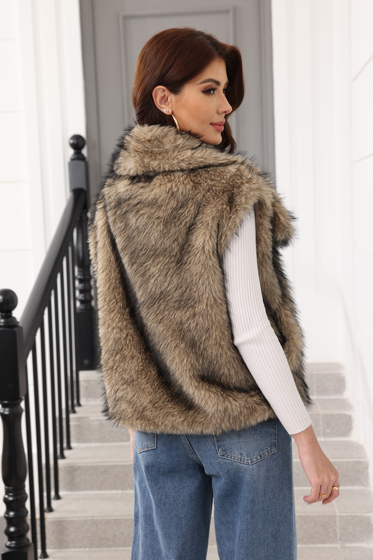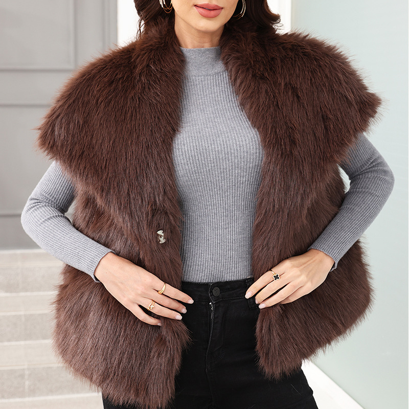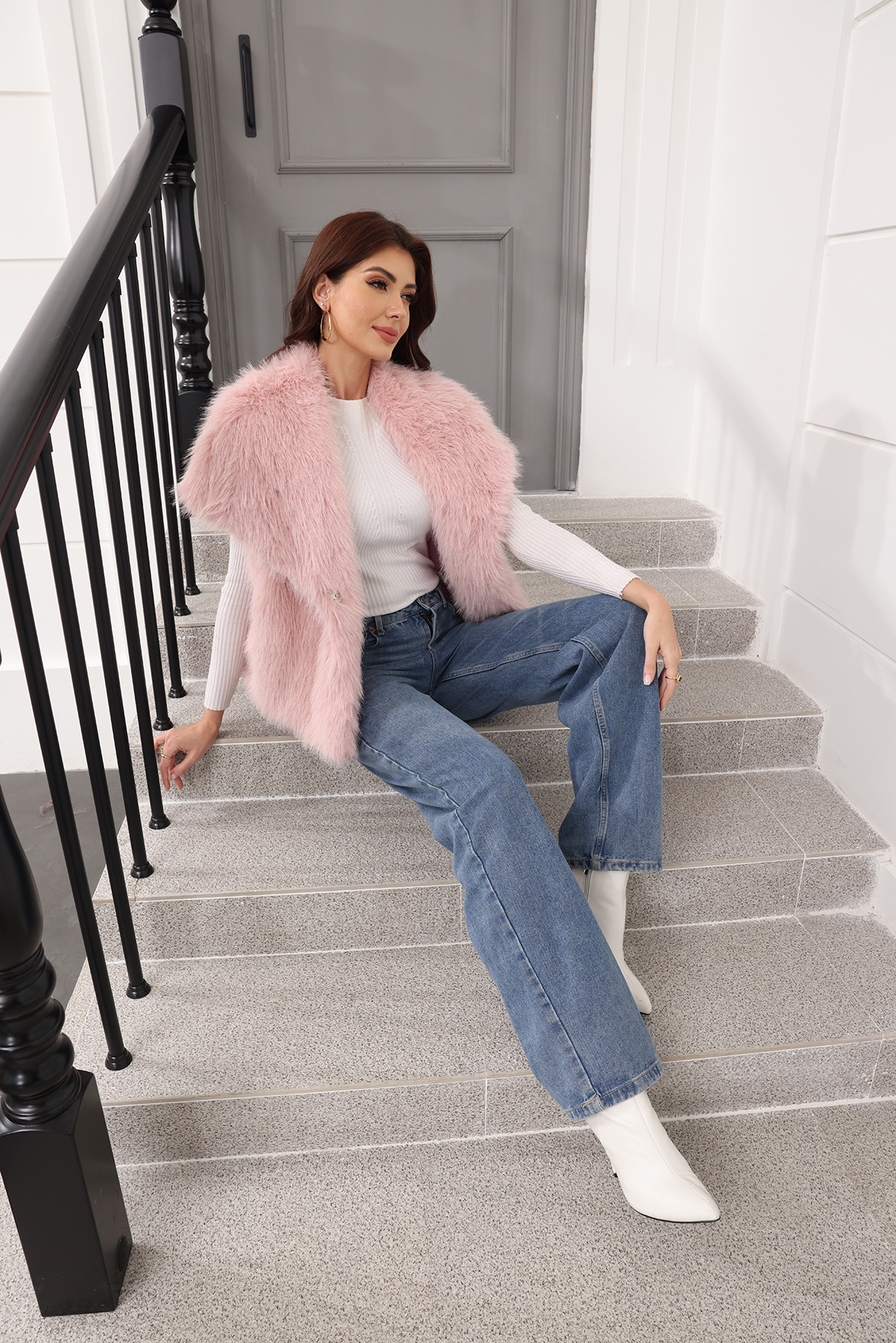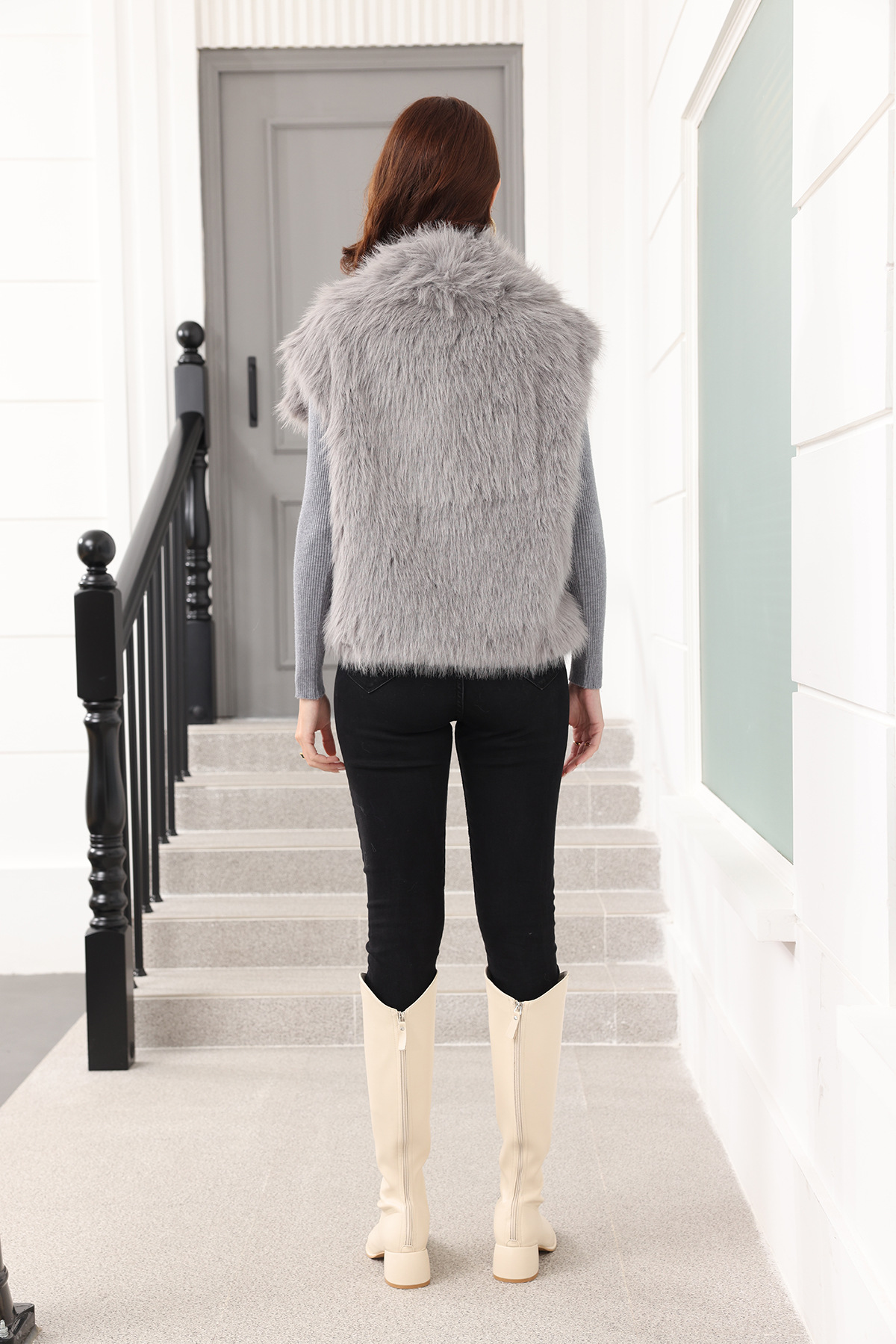 厂家批发大翻领马甲七色可选2025新款秋冬女服装马甲仿皮草外套