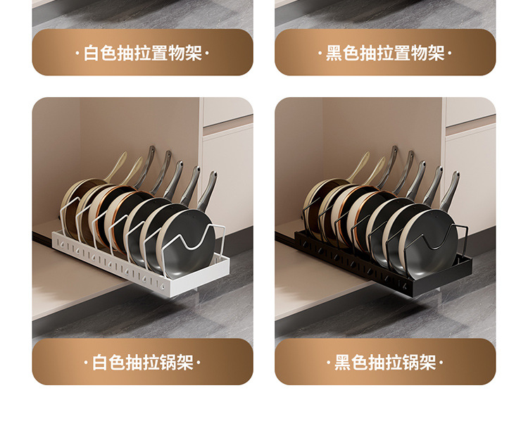 【白色-无线】抽拉置物架; 【白色-8线】抽拉锅架; 【黑色-无线】抽拉置物架; 【黑色-8线】抽拉锅架-带线条; 【白色小号】橱柜拉篮; 【白色大号】橱柜拉篮; 【黑色小号】线条-抽拉架; 【白色小号】线条-抽拉架; 【黑色大号】线条-抽拉架; 【白色大号】线条-抽拉架