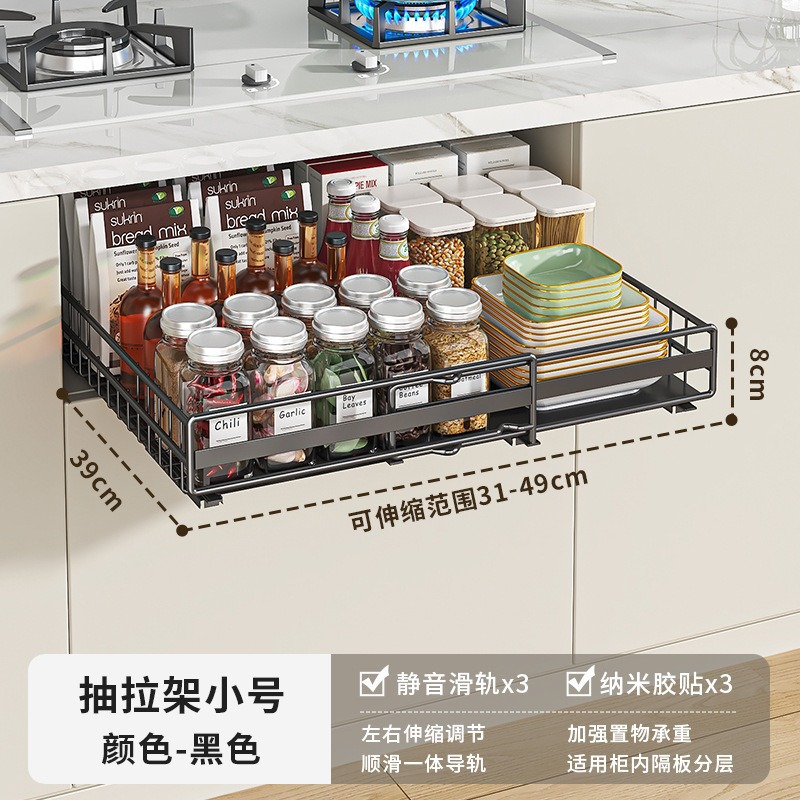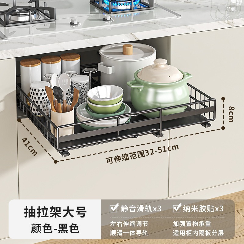 可伸缩橱柜拉篮家用抽拉式置物架下水槽抽屉碗篮厨房免打孔收纳架