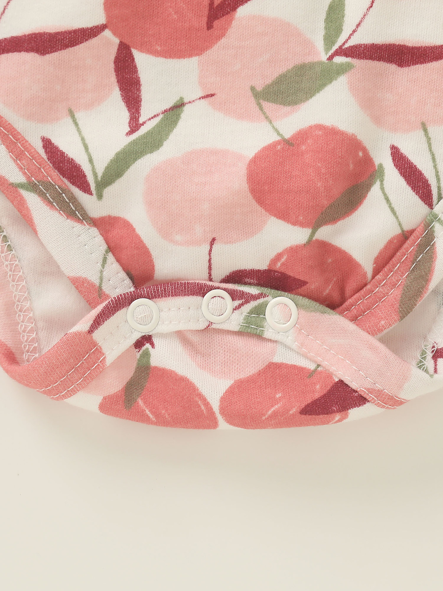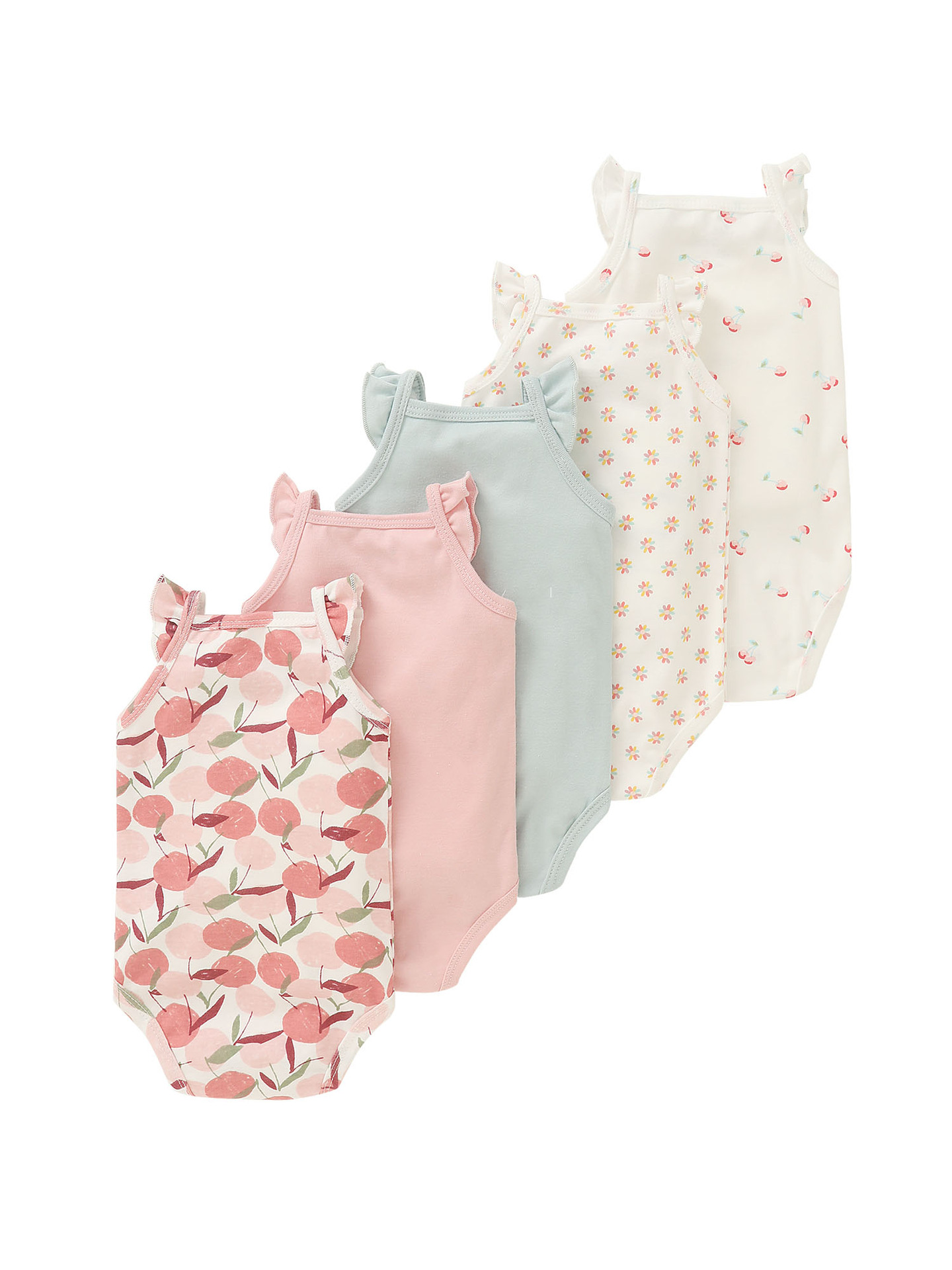 婴幼童夏季吊带花朵印花5件套装0-1岁三角哈衣女宝薄款花边包屁衣