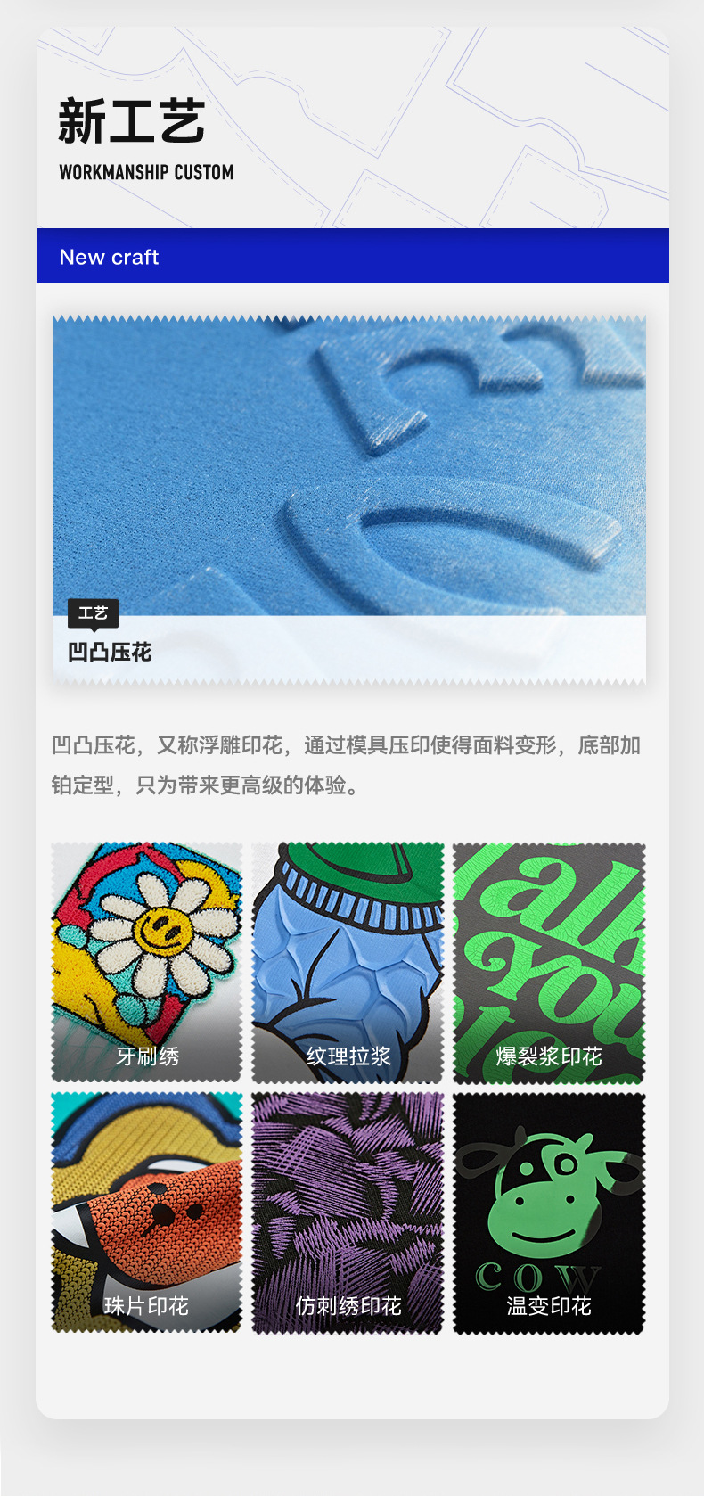 亮片; 刺绣; 水洗; 做旧; 磨破; 褶皱; 磨白; 印花; 磨毛; 烫钻; 拼接; 抽褶; 高温定型; 嵌条; 手工磨破