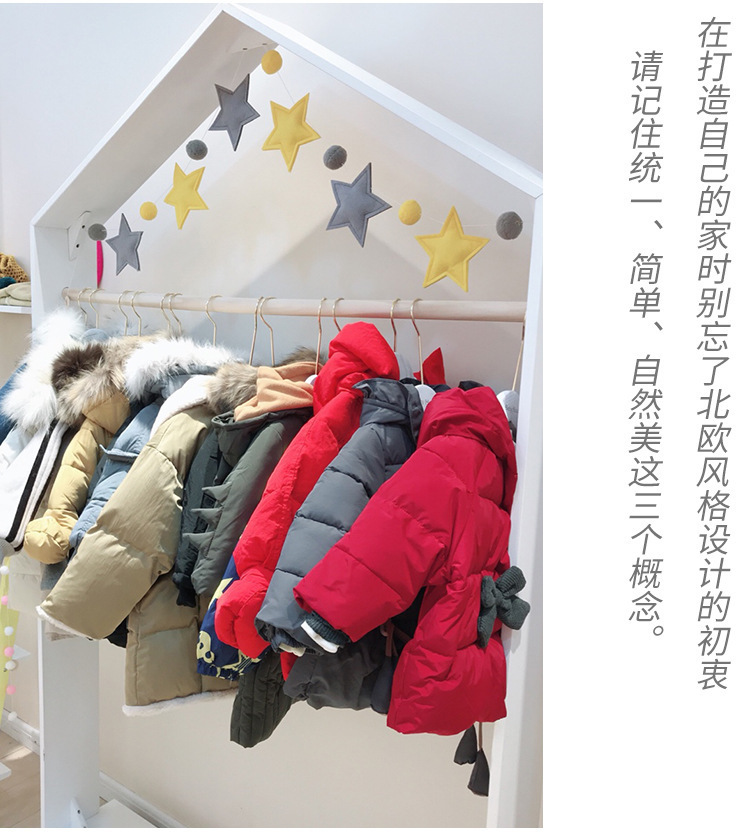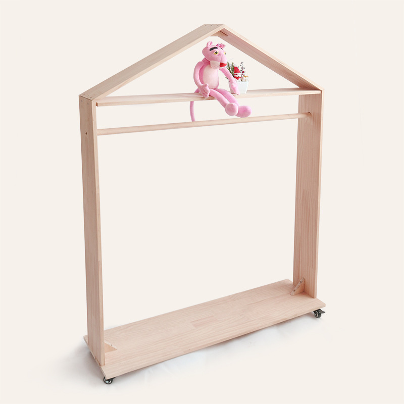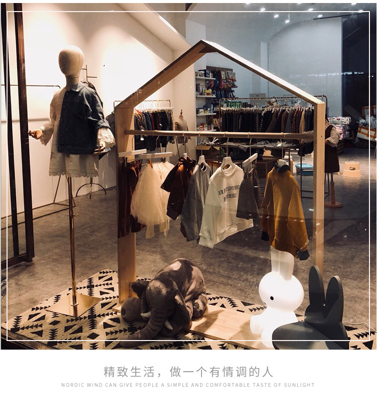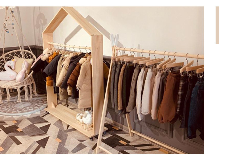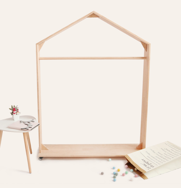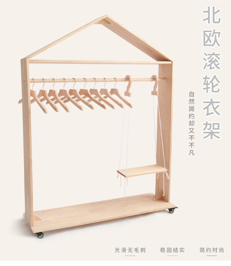 北欧风ins儿童房小房子落地滚轮衣架 可移动橱窗童装店服装展示架