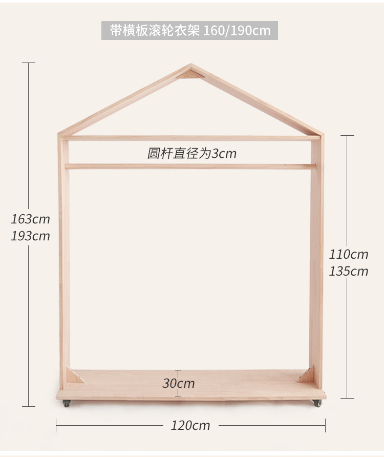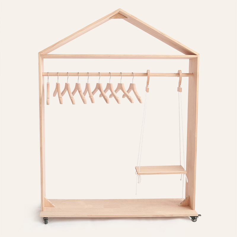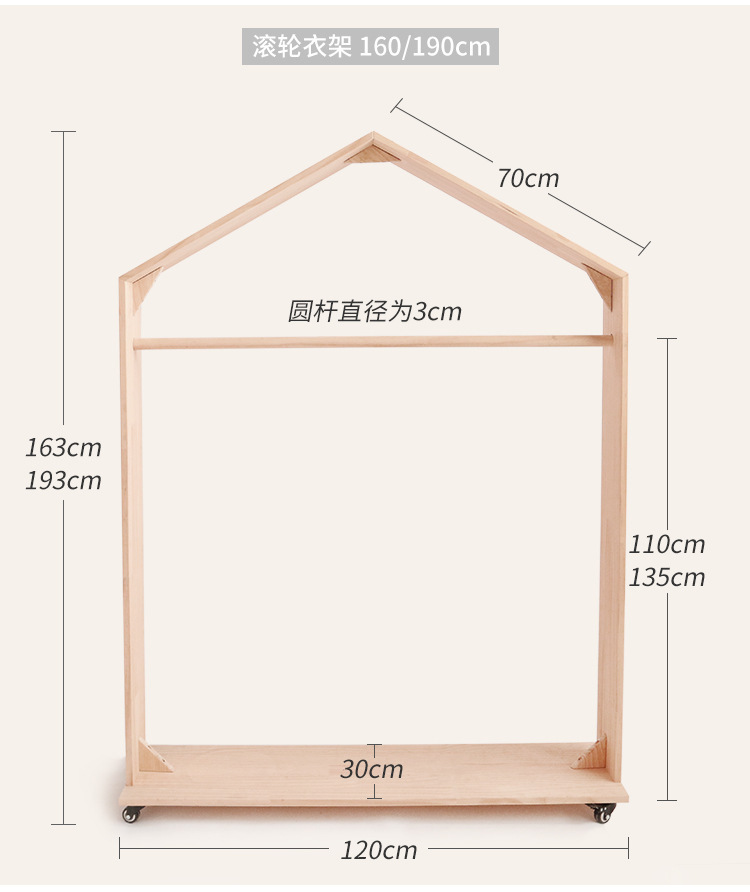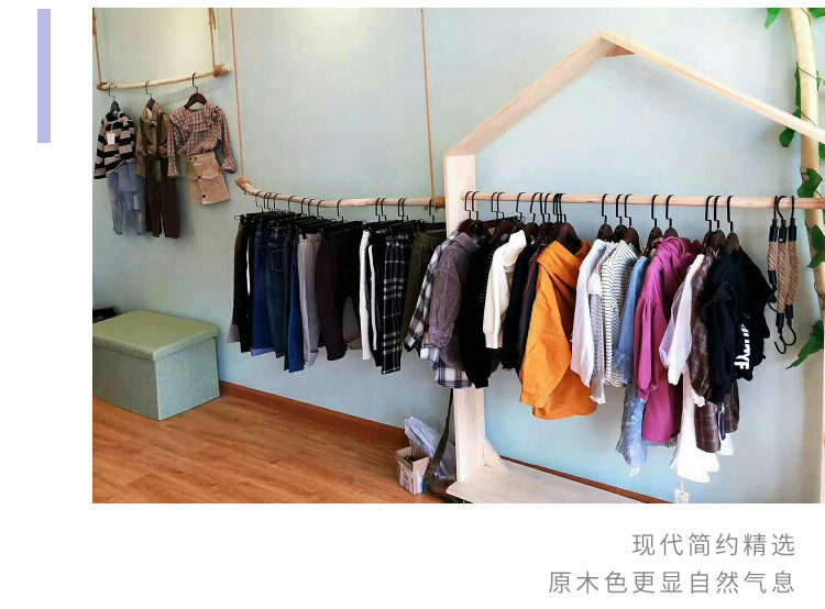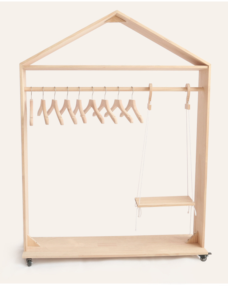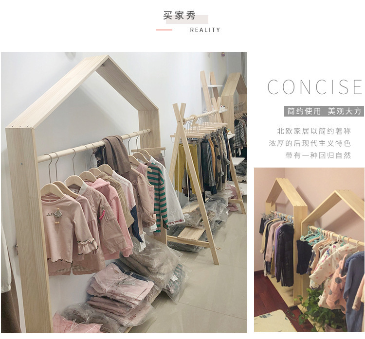 北欧风ins儿童房小房子落地滚轮衣架 可移动橱窗童装店服装展示架