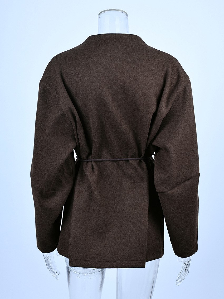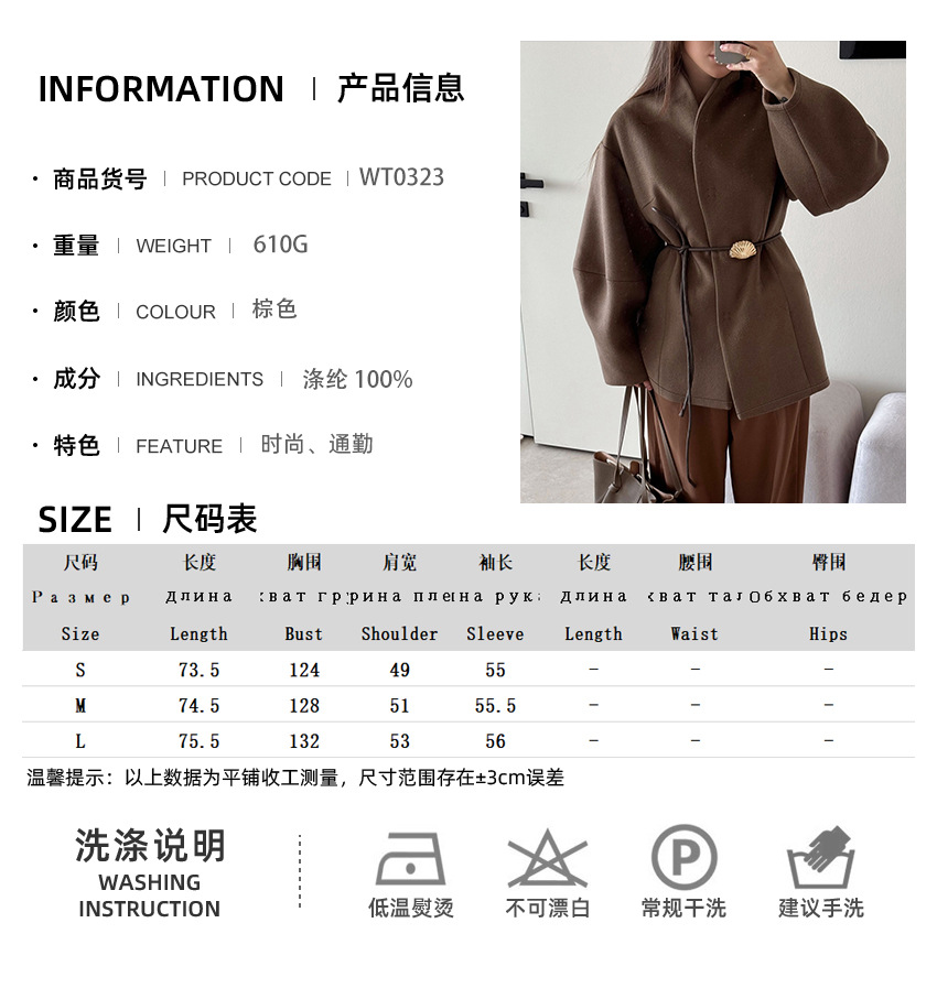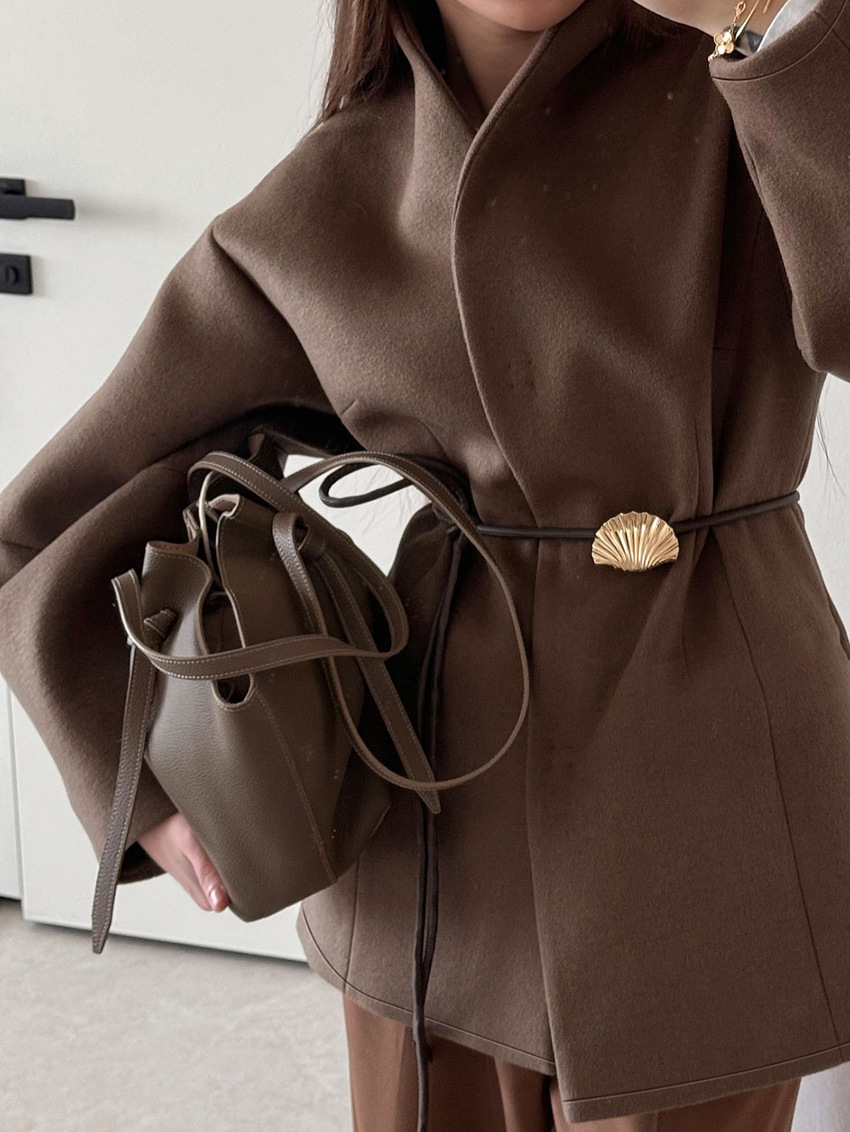 秋冬新款高级感棕色收腰毛呢外套女设计感气质时尚ins风2025跨境