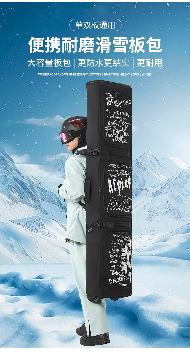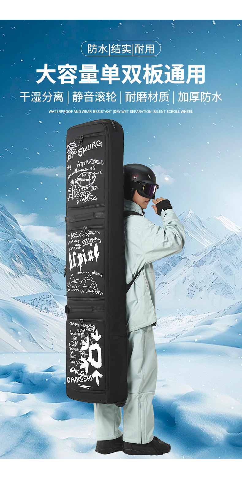 新款滑雪板包带轮单板包双板包干湿分离大容量可托运