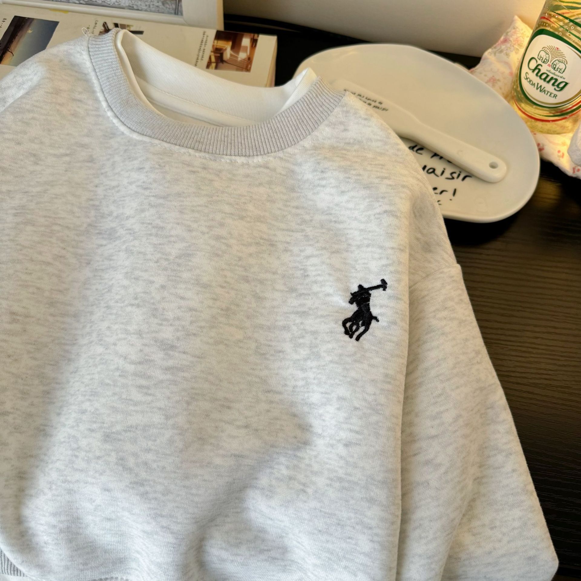 刺绣假两件套装-淡奶黄色; 刺绣假两件套装-白花灰; 刺绣假两件套装-深花灰