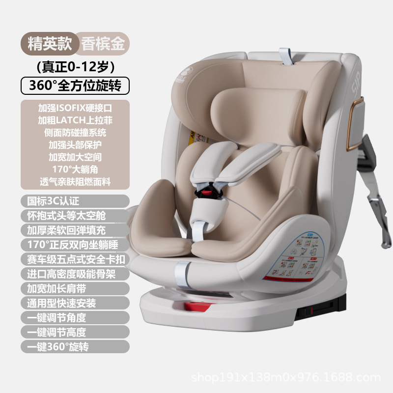 尊享款香槟金+ISOFIX硬接口+360度旋转; 尊享款青提绿+ISOFIX硬接口+360度旋转; 尊享款曜石黑+ISOFIX硬接口+360度旋转; 精英款香槟金+ISOFIX硬接口+LATCH上拉带=360+侧翼; 精英款青提绿+ISOFIX硬接口+LATCH上拉带=360+侧翼; 精英款曜石黑+ISOFIX硬接口+LATCH上拉带=360+侧翼; 至尊款香槟金+全配置+遮阳棚+全包裹布套; 至尊款青提绿+全配置+遮阳棚+全包裹布套; 至尊款曜石黑+全配置+遮阳棚+全包裹布套