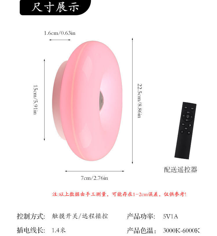跨境ins风甜甜圈卧室壁灯现代简约床头灯触摸装饰氛围灯厂家直销