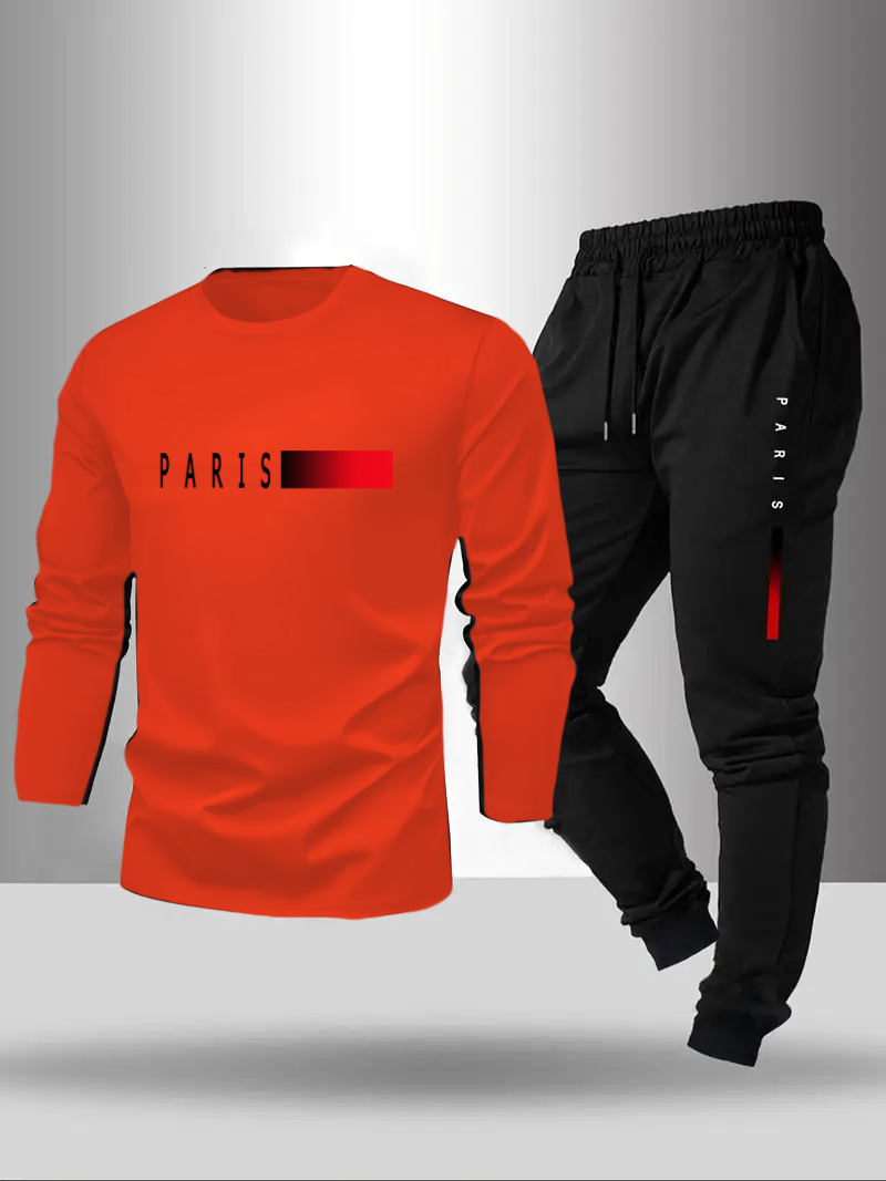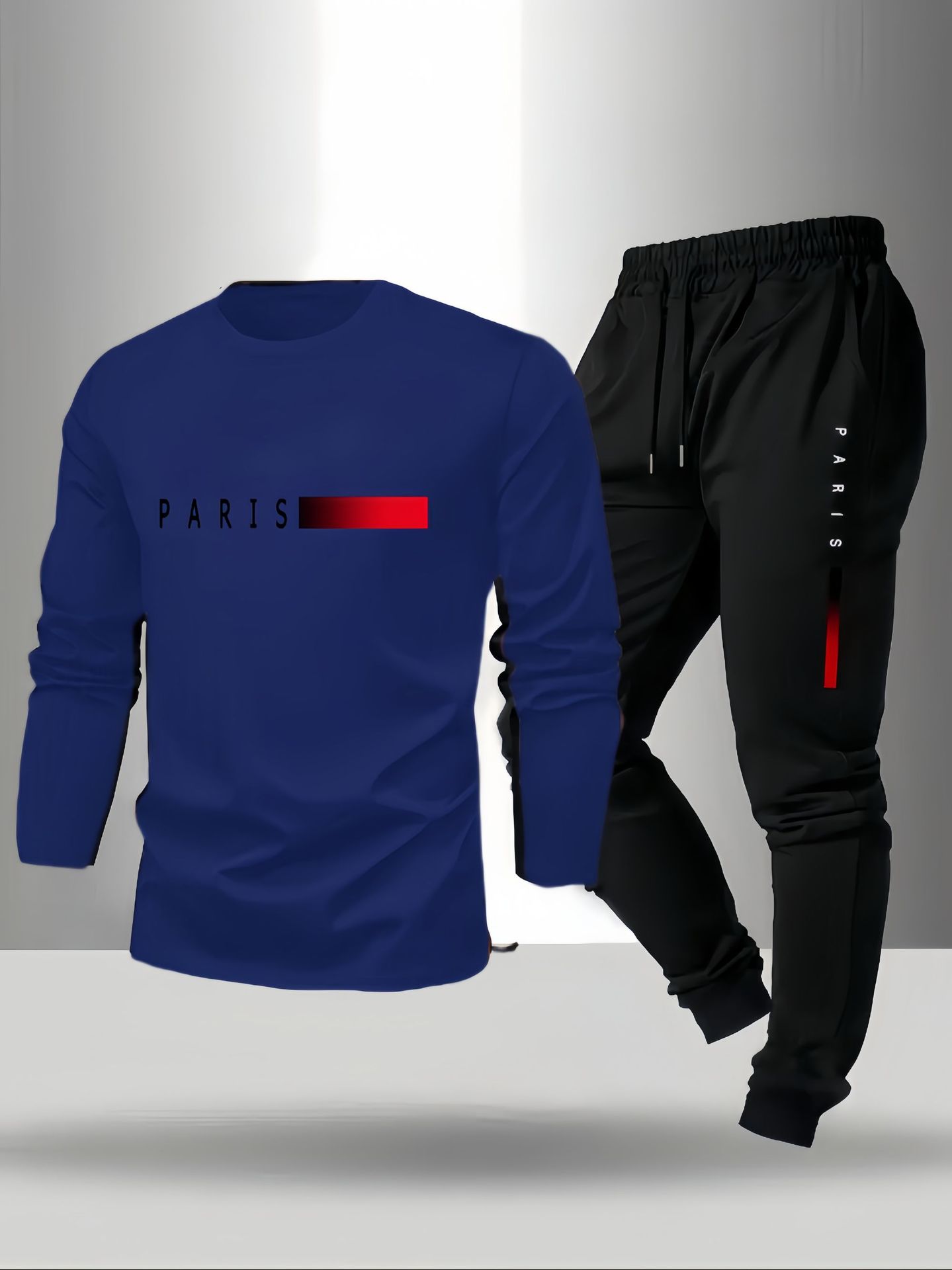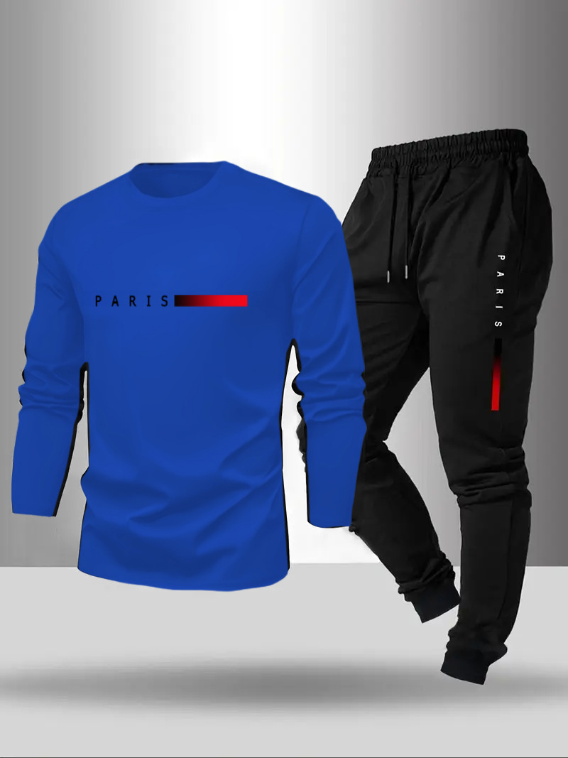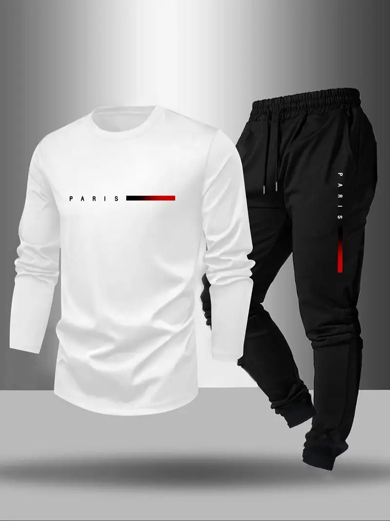 跨境欧码春秋季新款时尚趋势潮流长袖长裤T恤套装亚马逊欧美版印