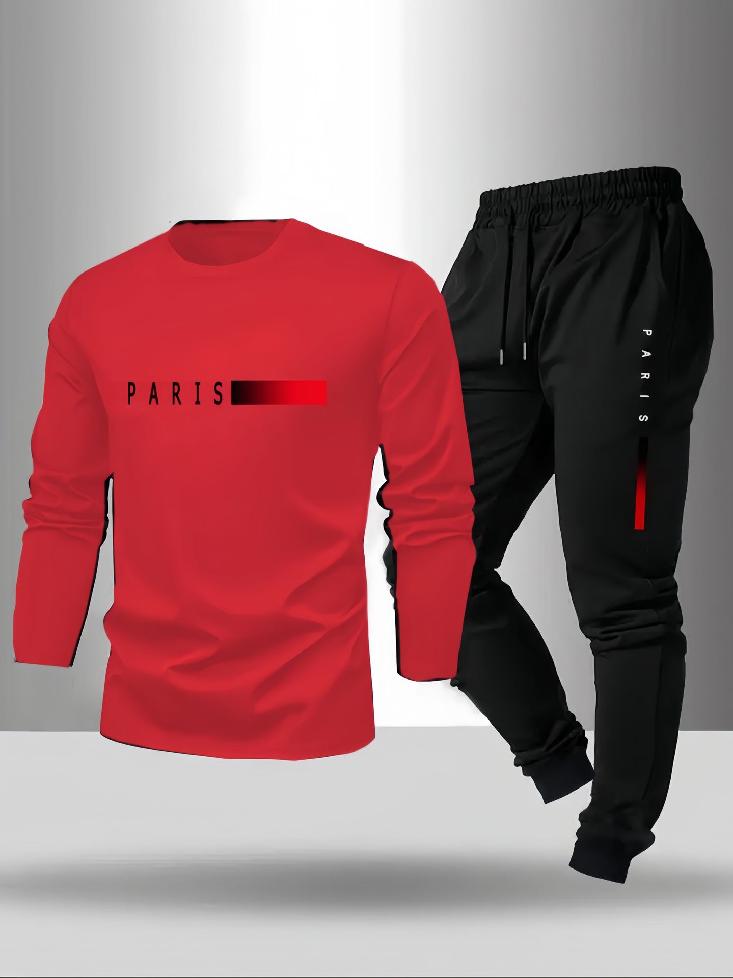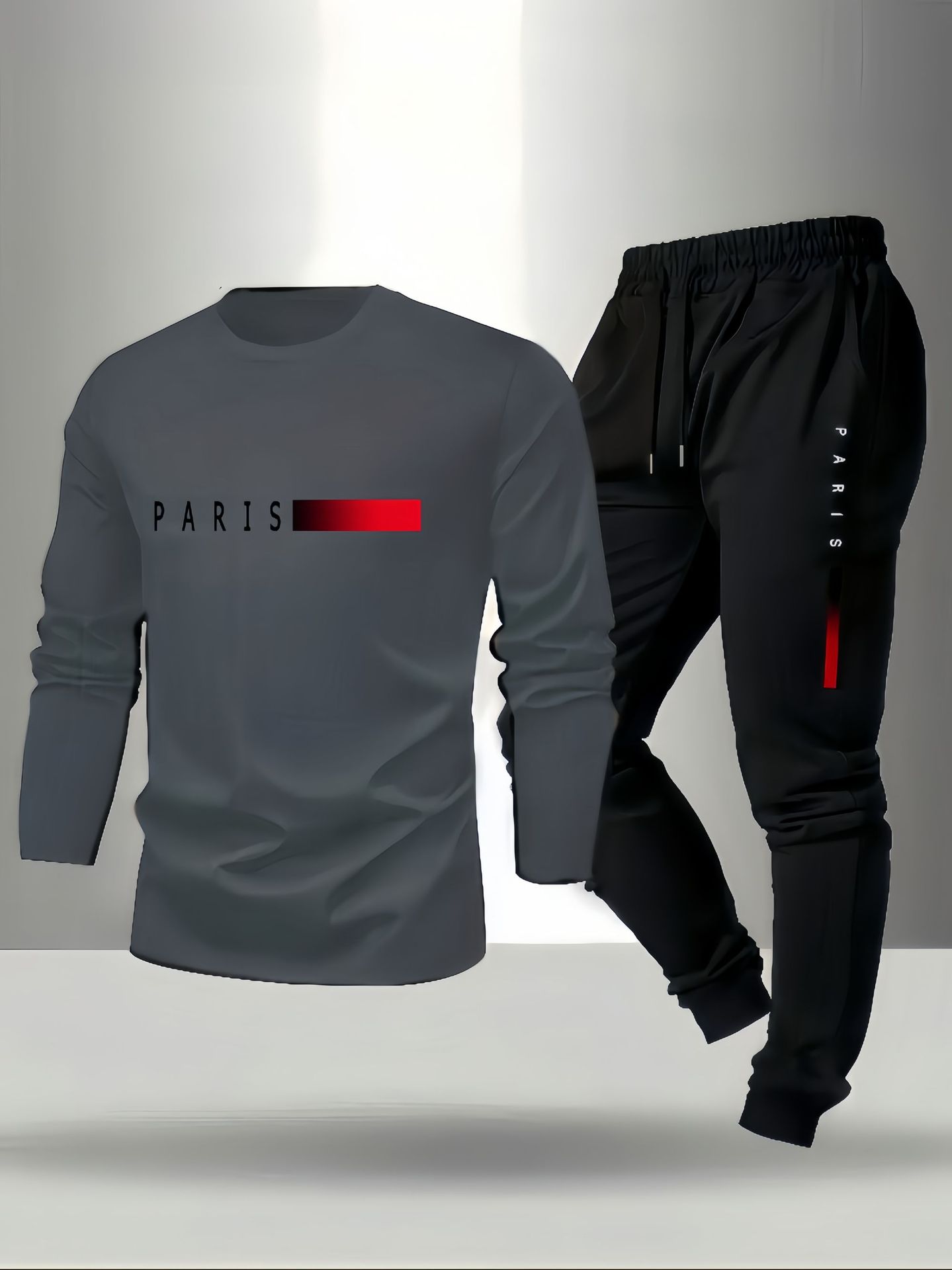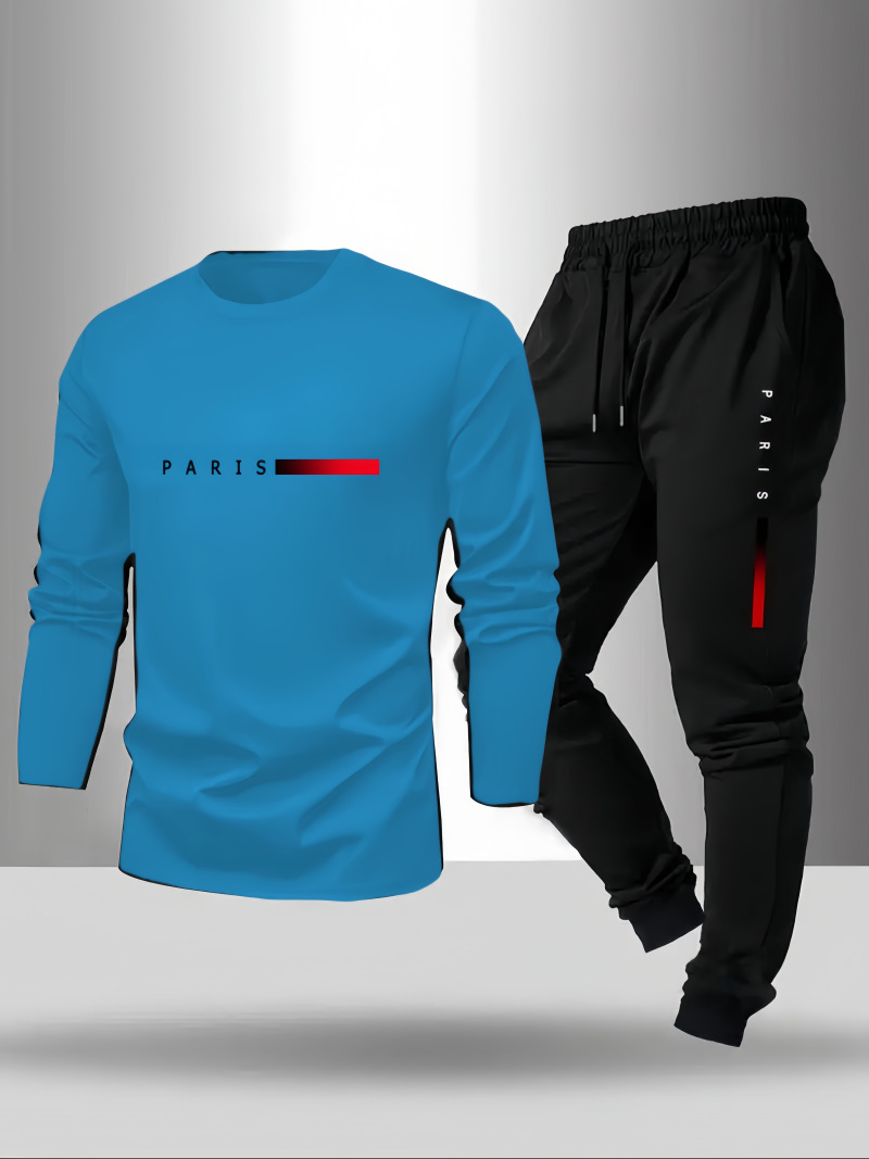 跨境欧码春秋季新款时尚趋势潮流长袖长裤T恤套装亚马逊欧美版印
