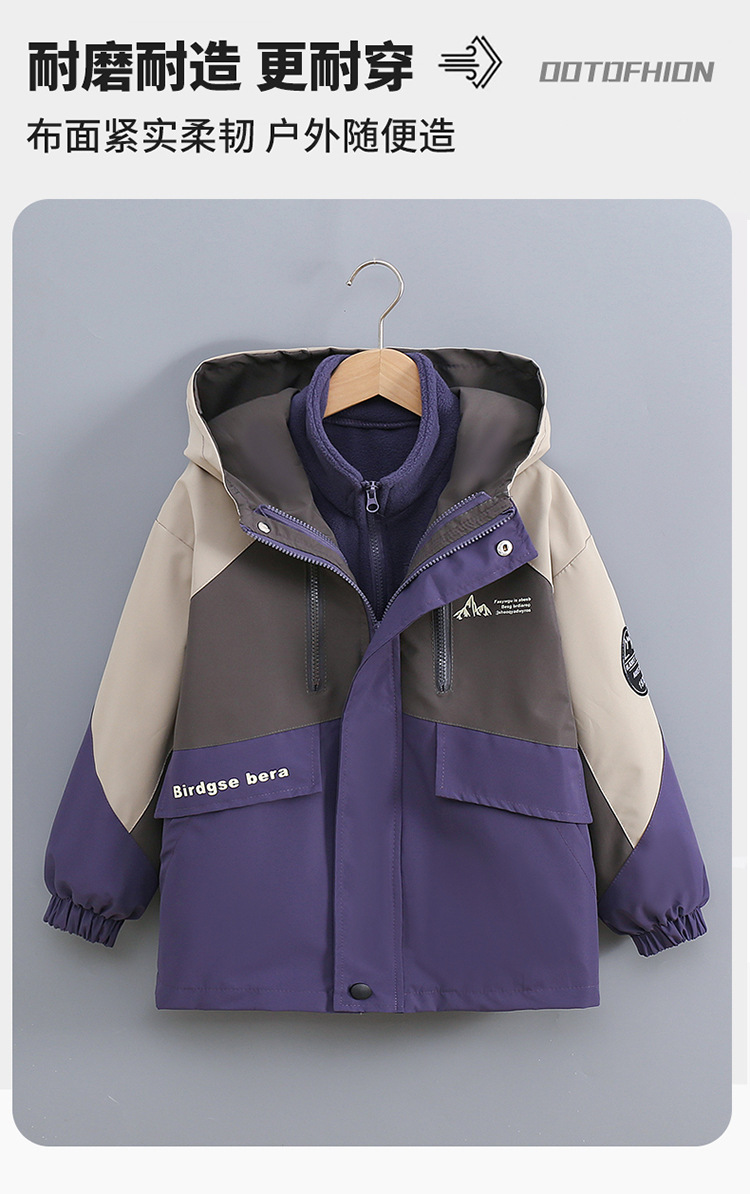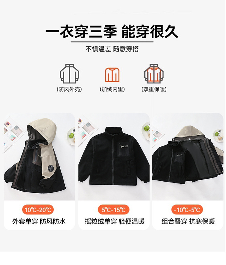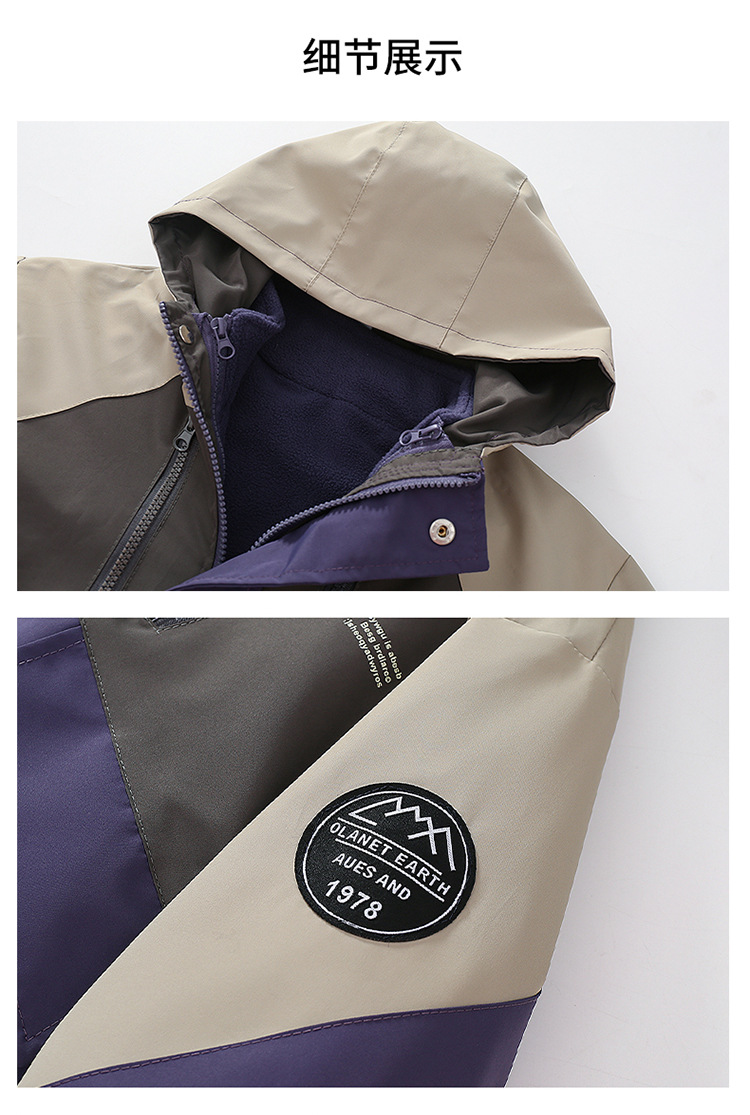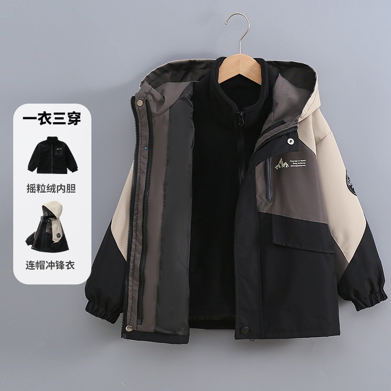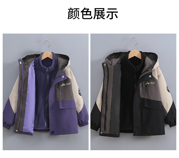 儿童冲锋衣男童三合一可拆卸春秋冬户外两件套中大童风衣加厚防水