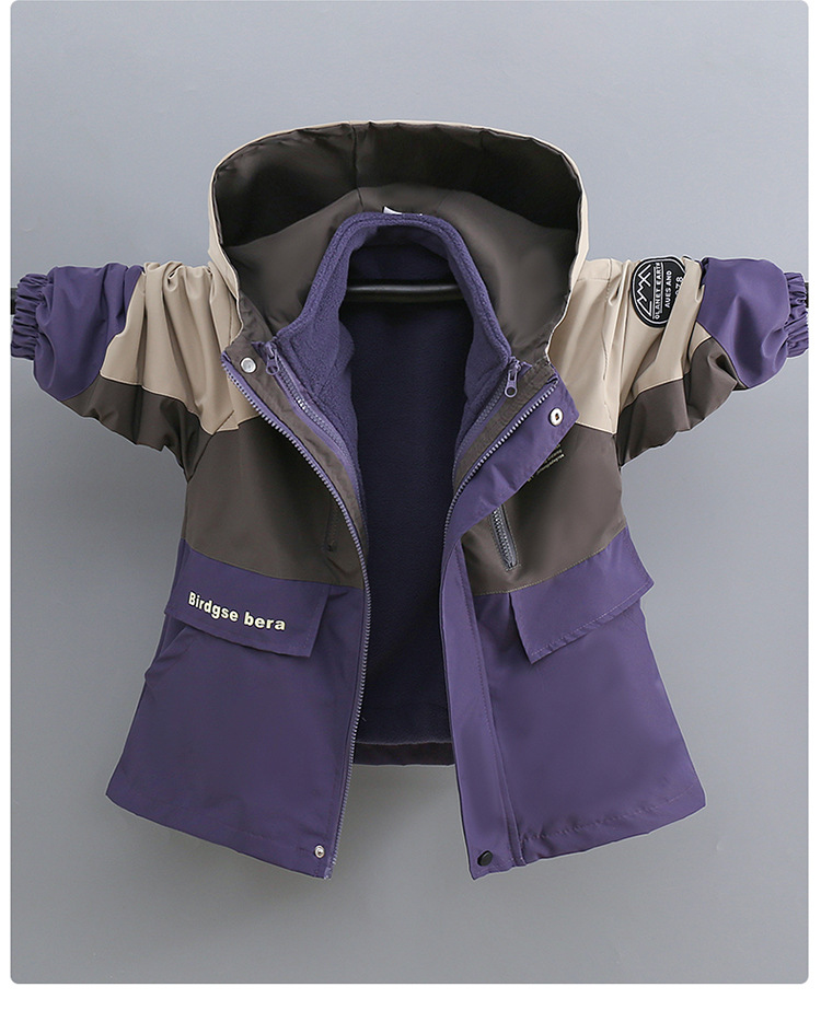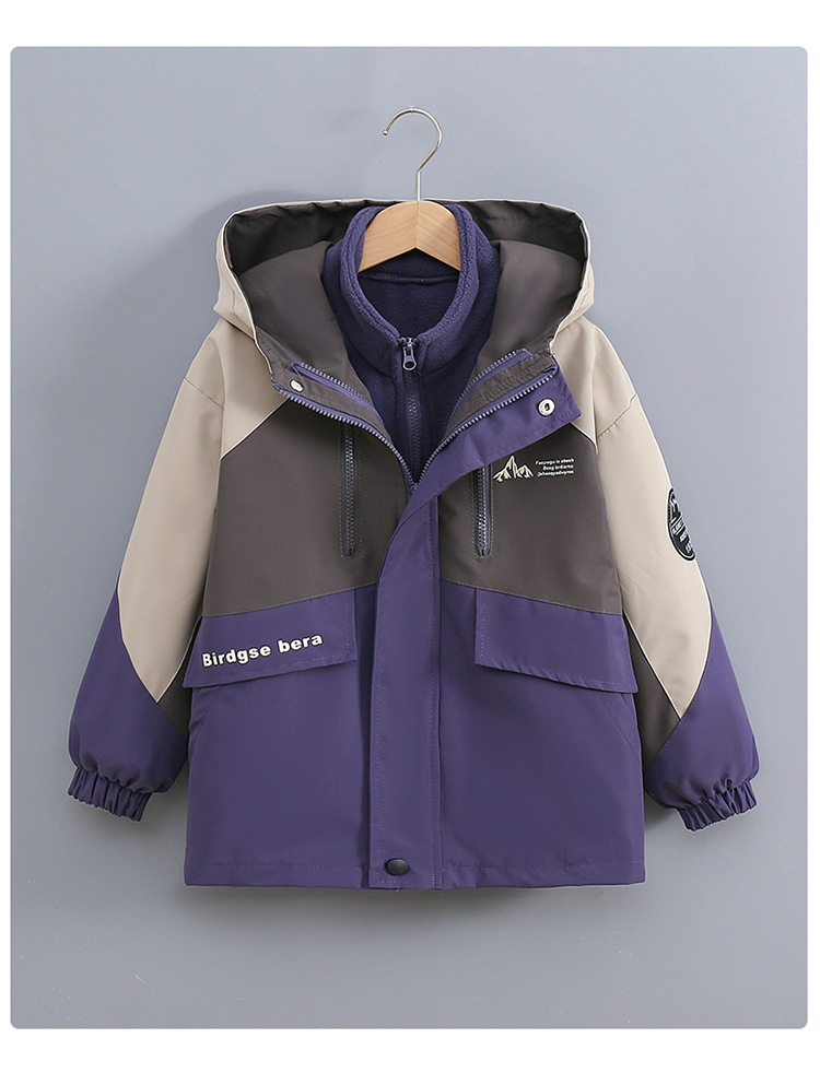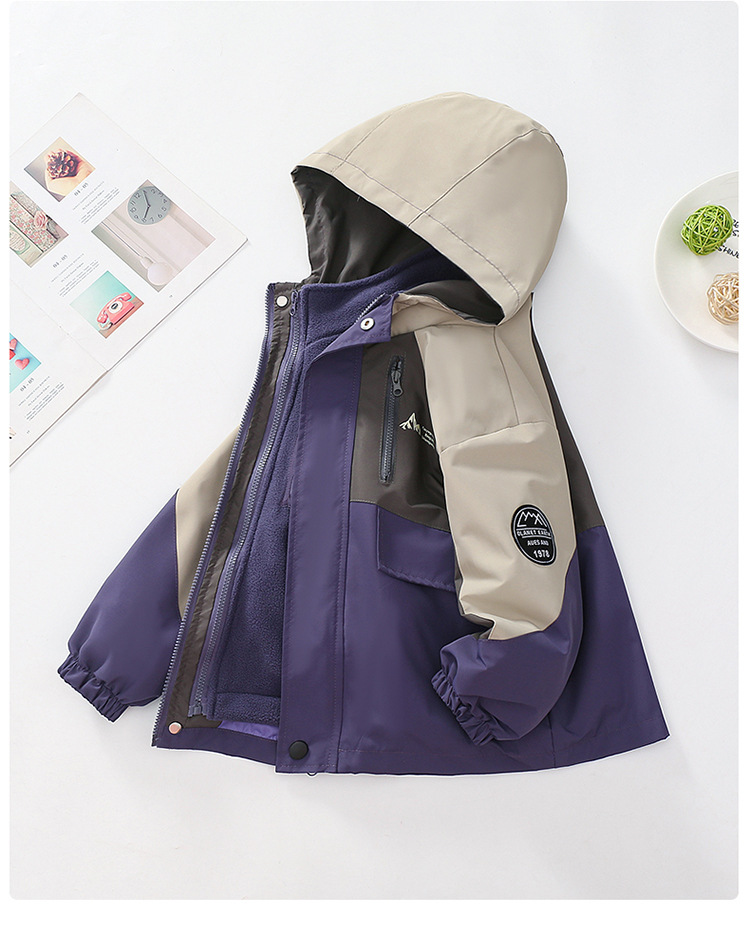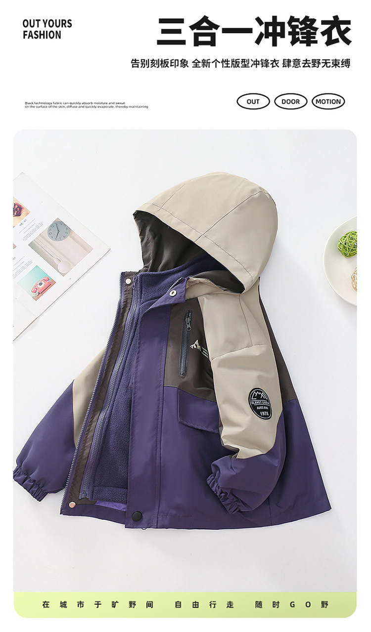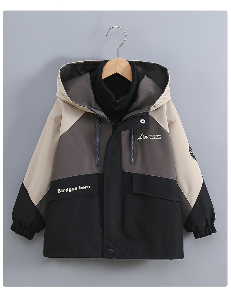 儿童冲锋衣男童三合一可拆卸春秋冬户外两件套中大童风衣加厚防水
