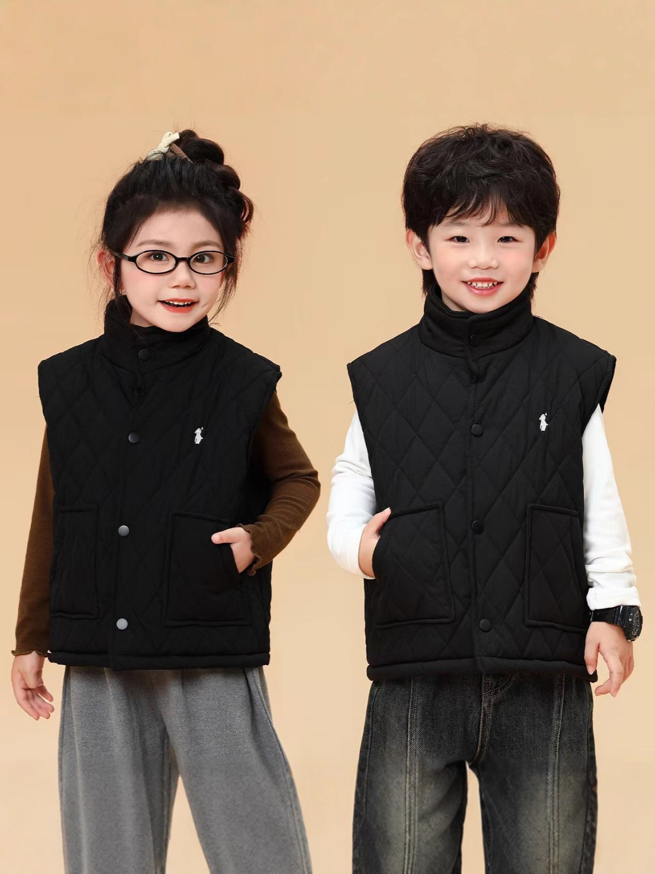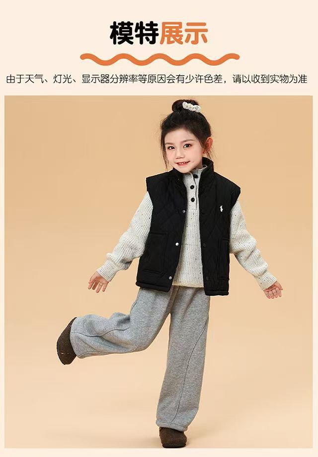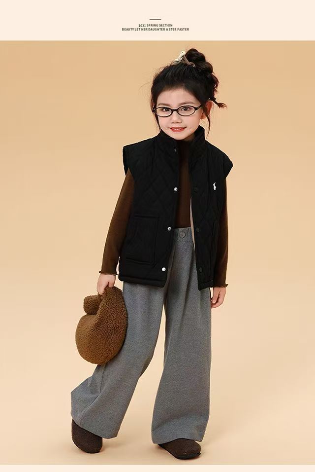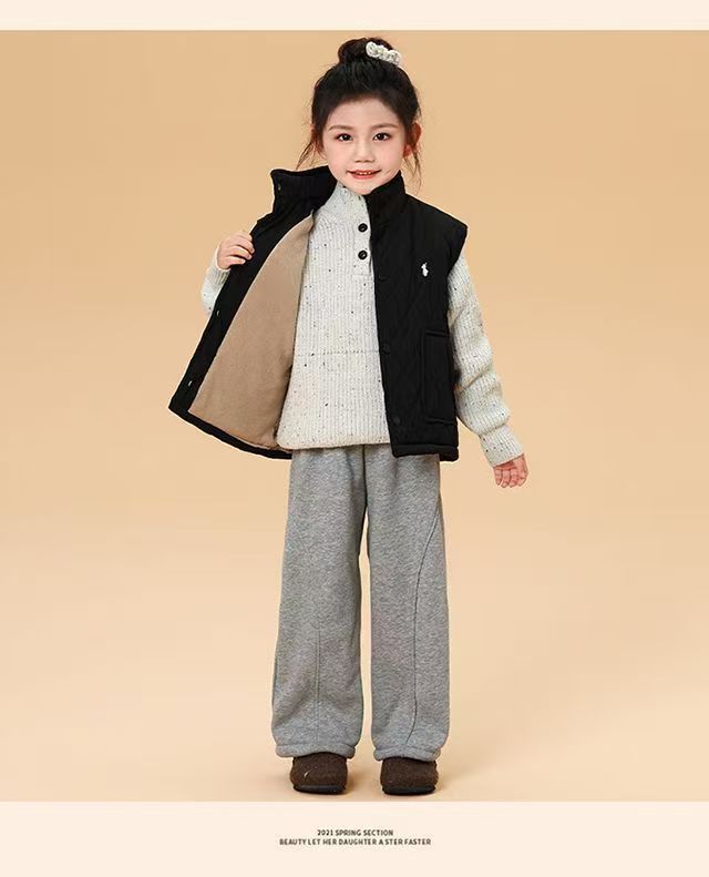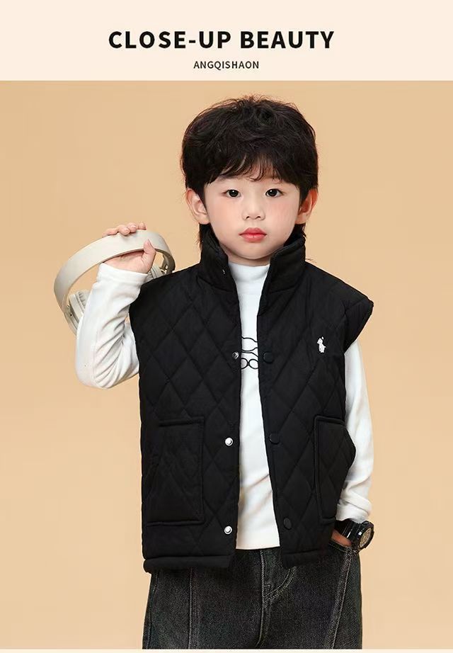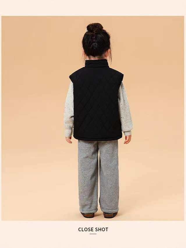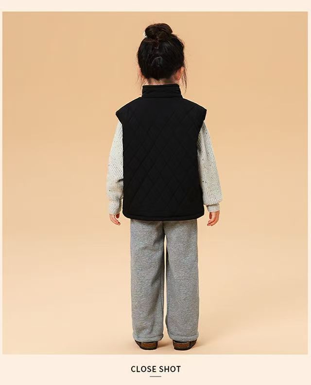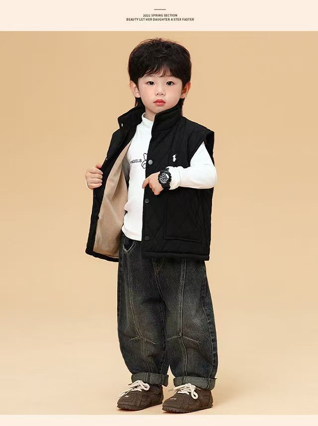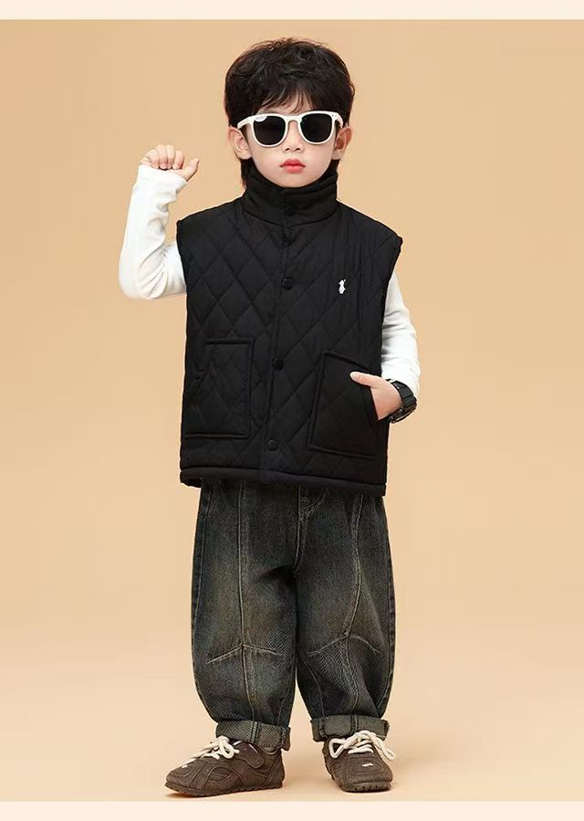 儿童马甲2025秋冬新款男女童刺绣潮牌休闲菱格加绒棉背心外套