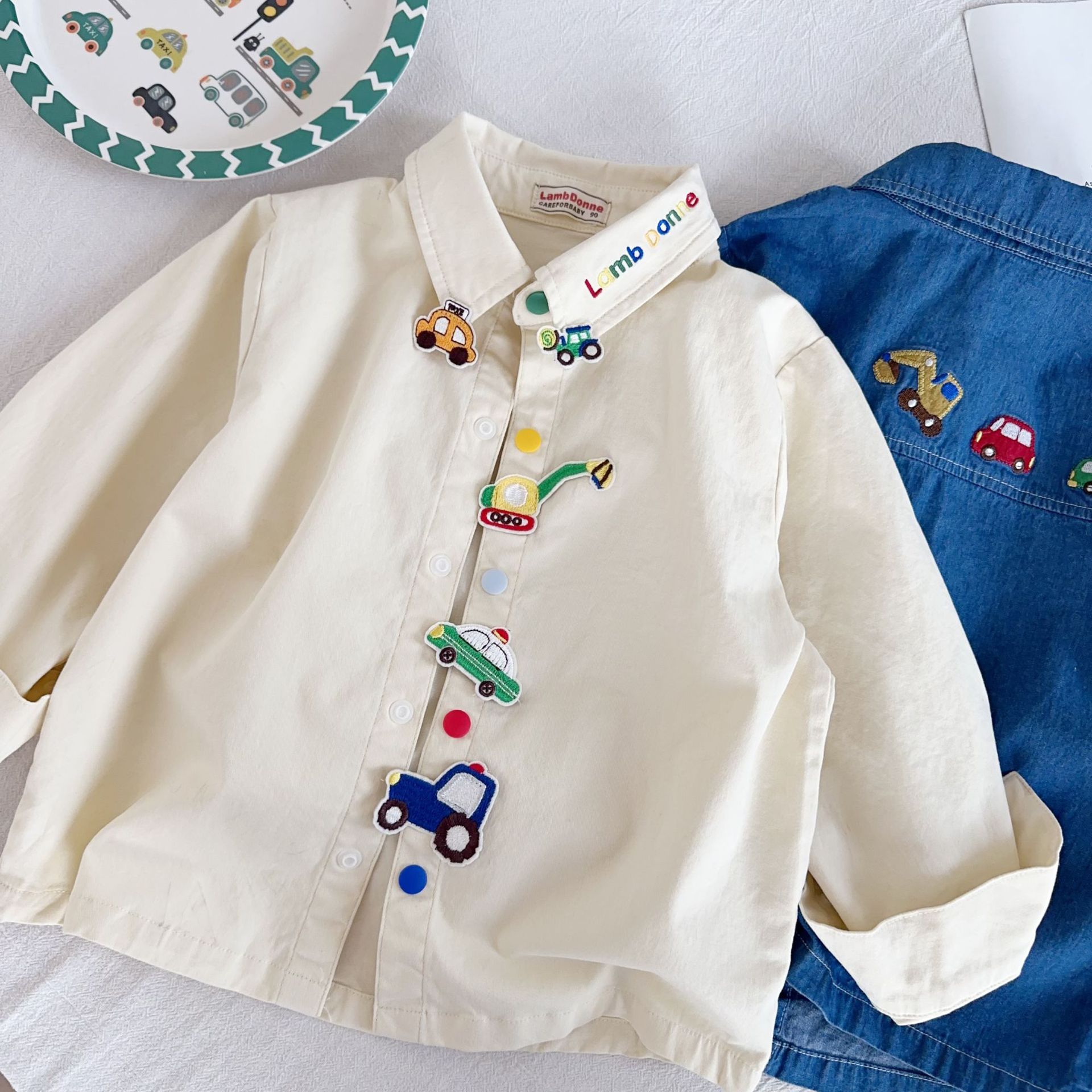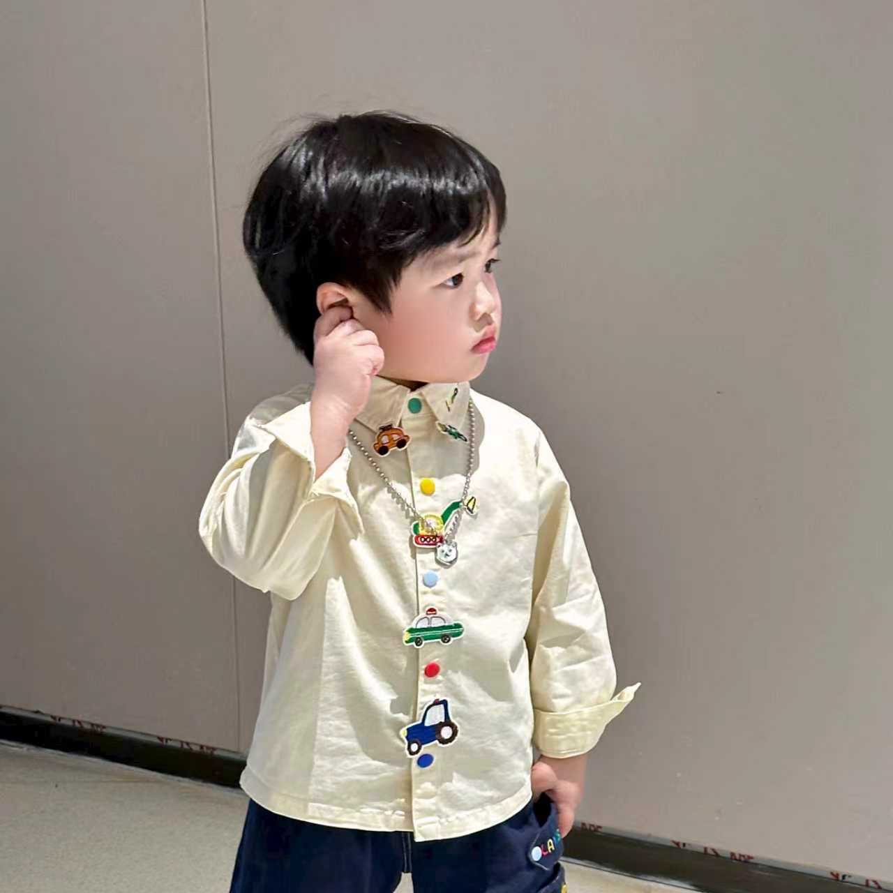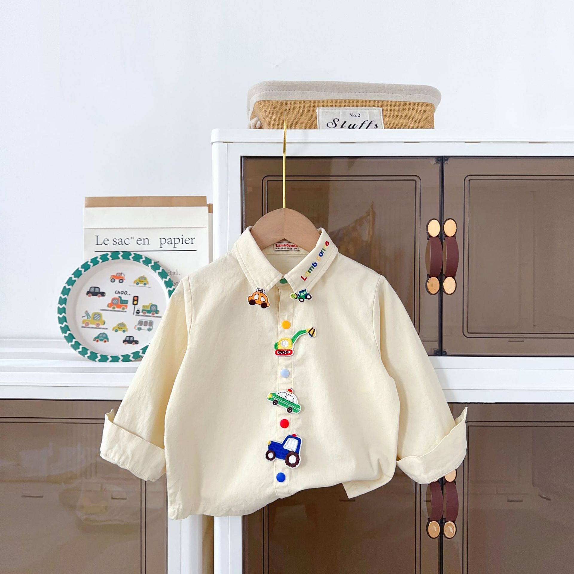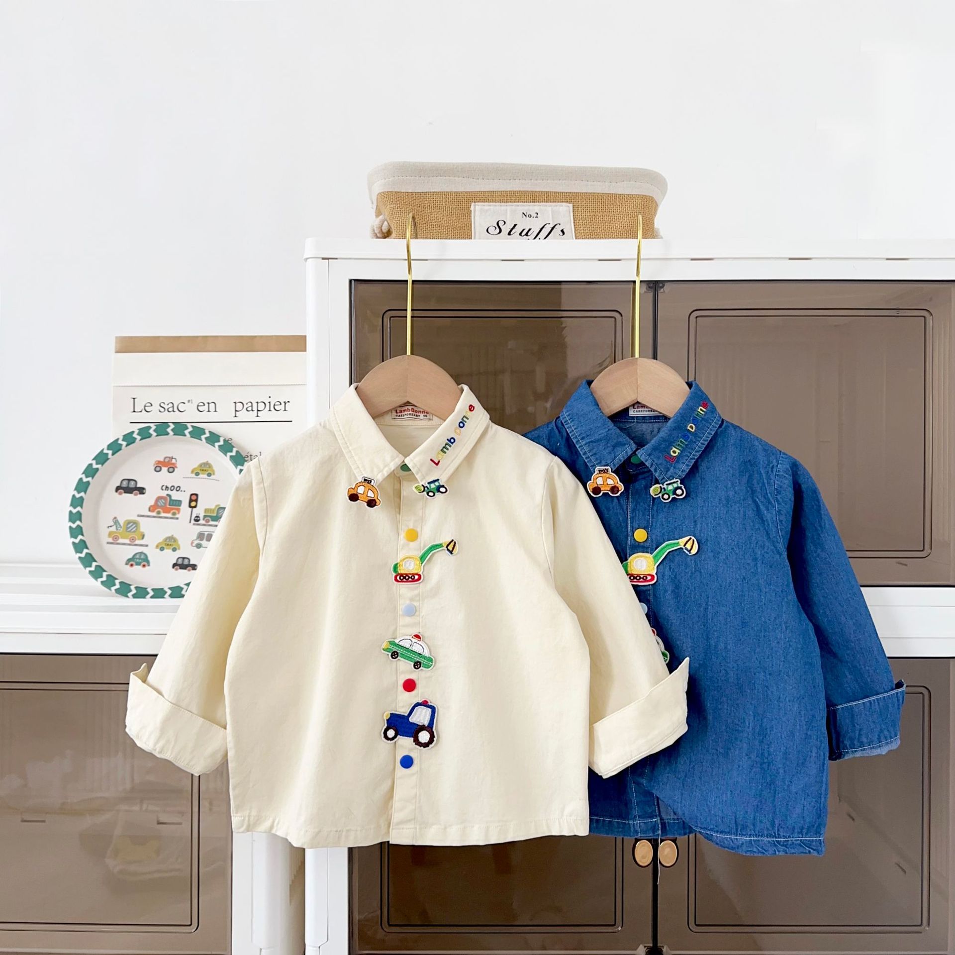 Детские рубашки для мальчиков, весна 2026, новинка в наличии, с мультяшной вышивкой, с длинным рукавом, для малышей и детей младшего возраста.