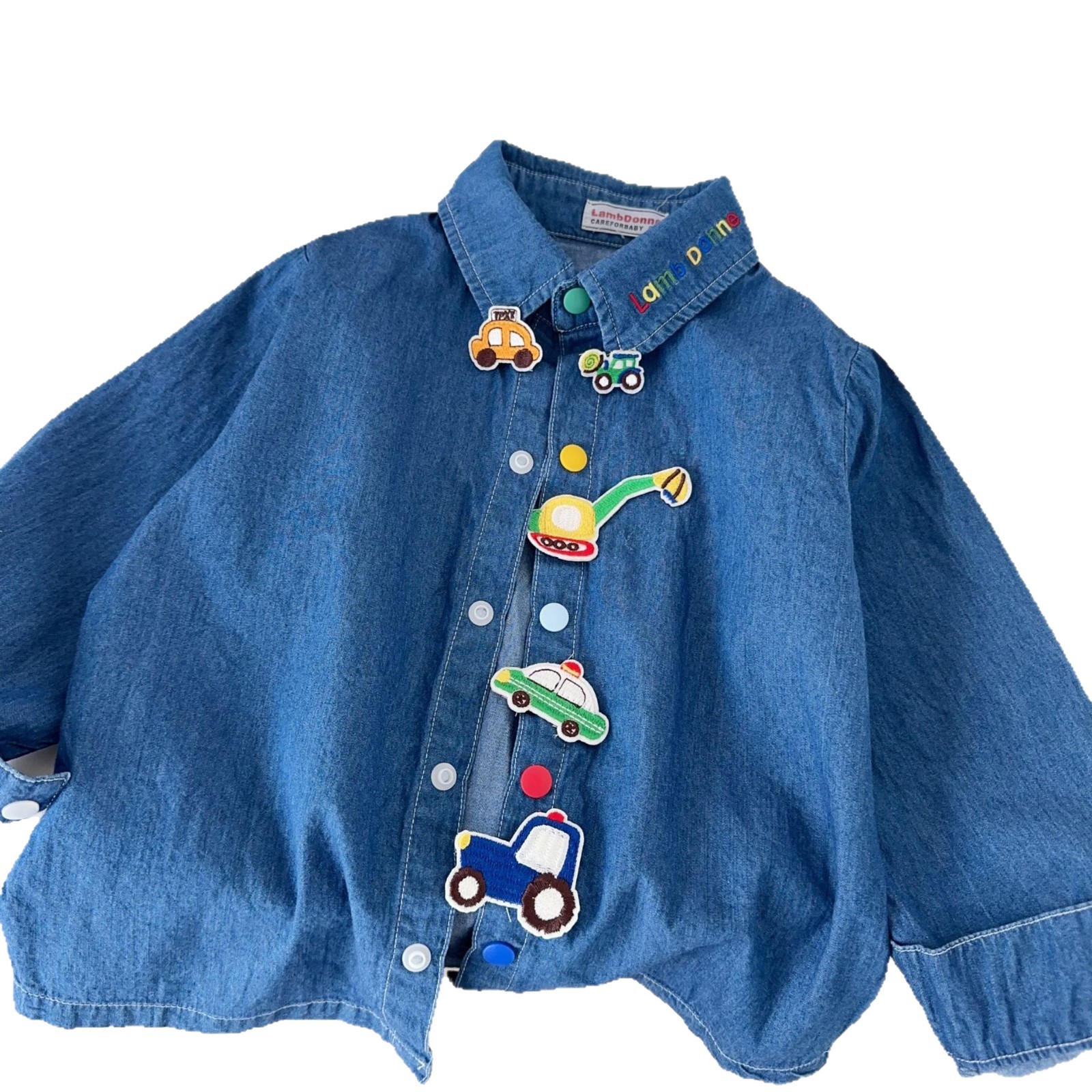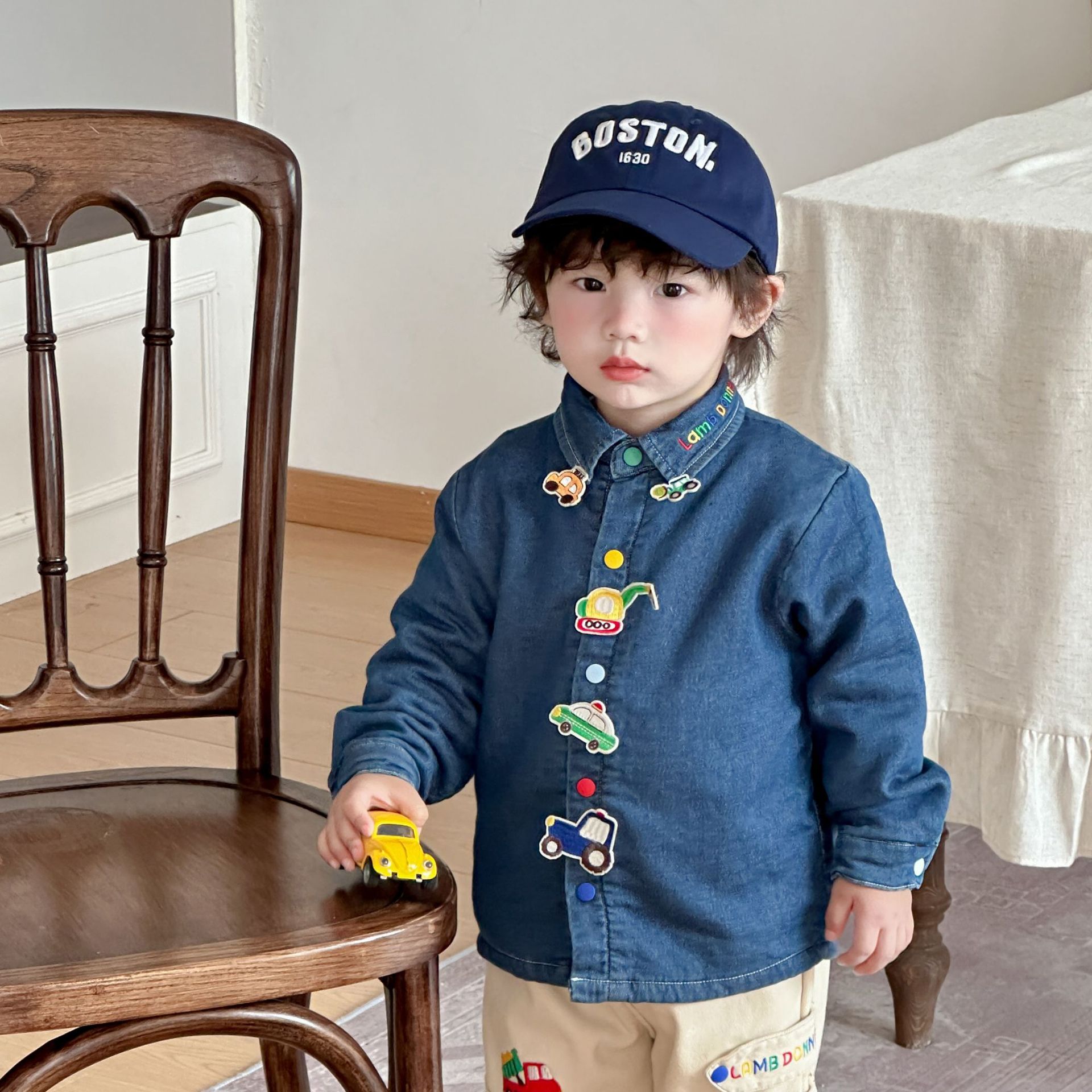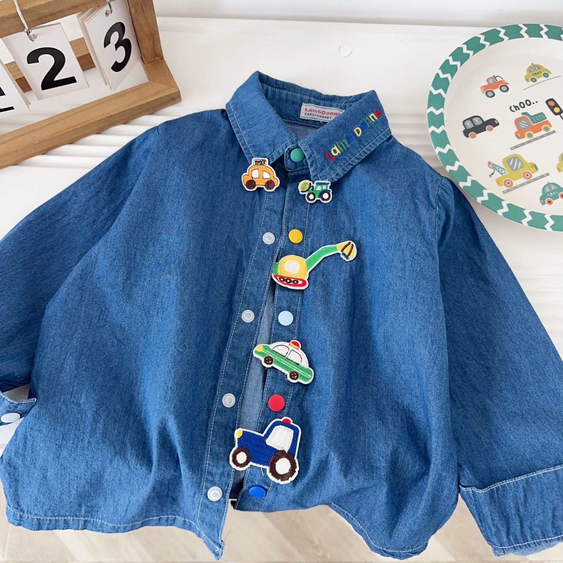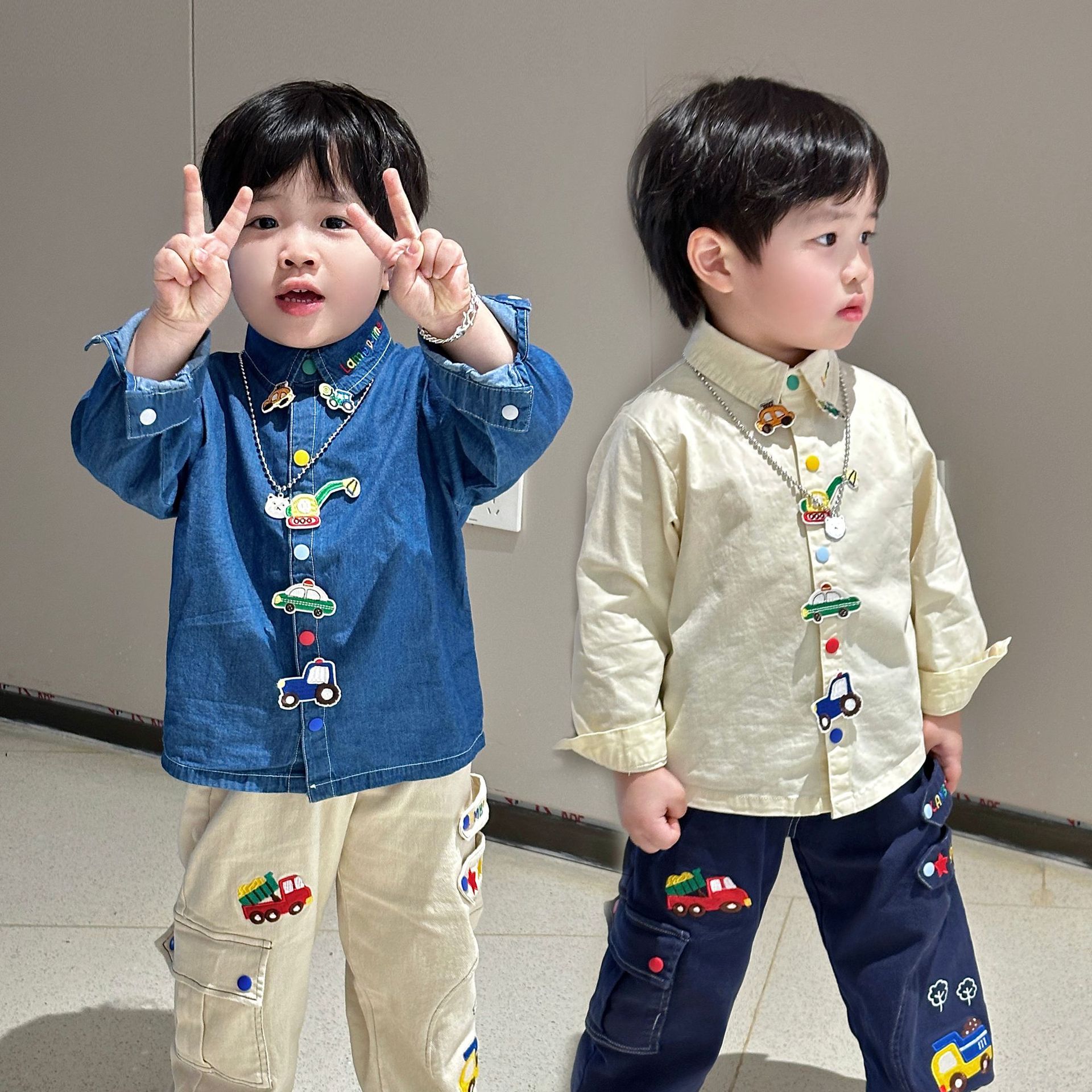 Детские рубашки для мальчиков, весна 2026, новинка в наличии, с мультяшной вышивкой, с длинным рукавом, для малышей и детей младшего возраста.