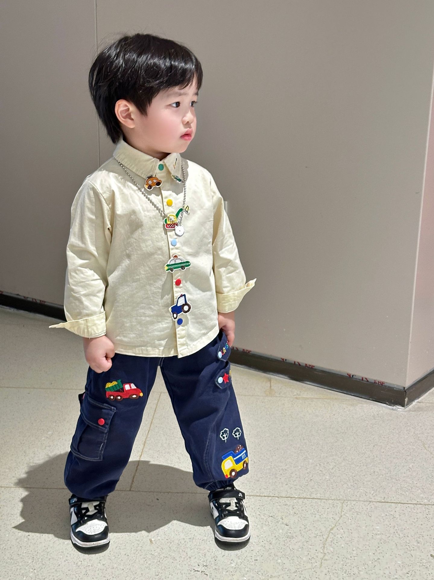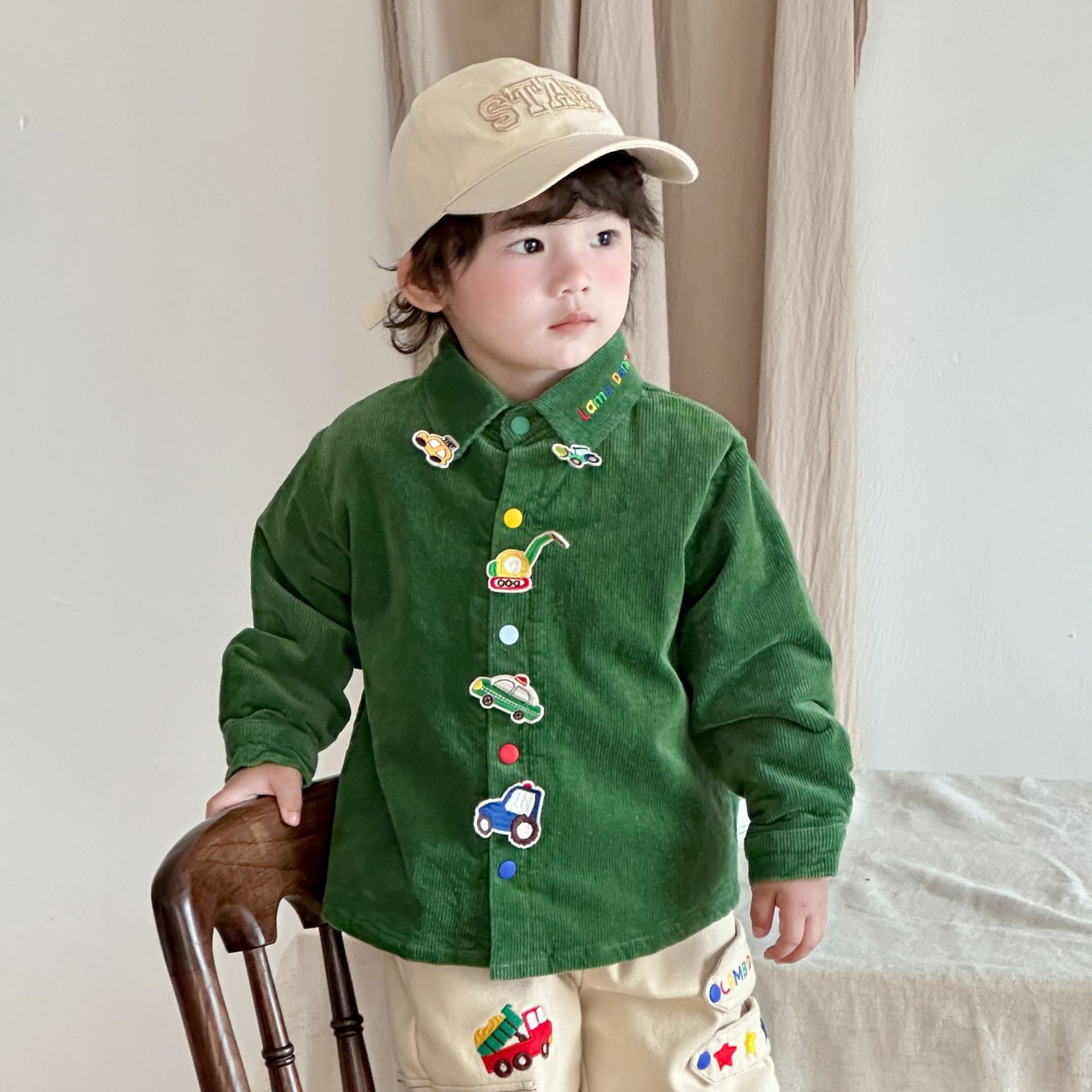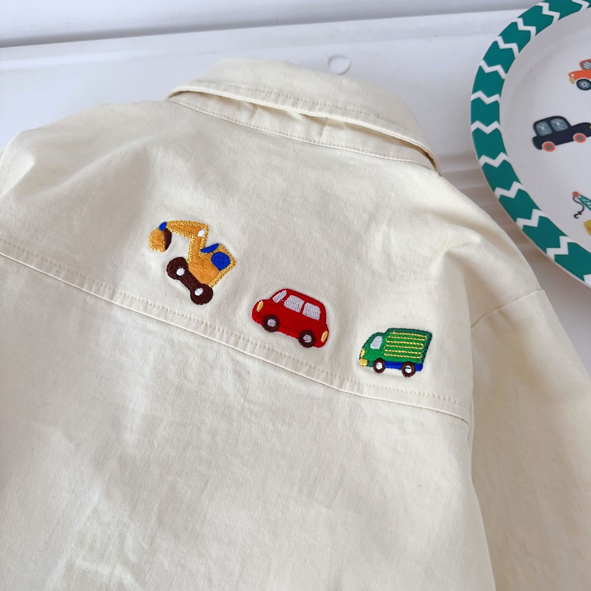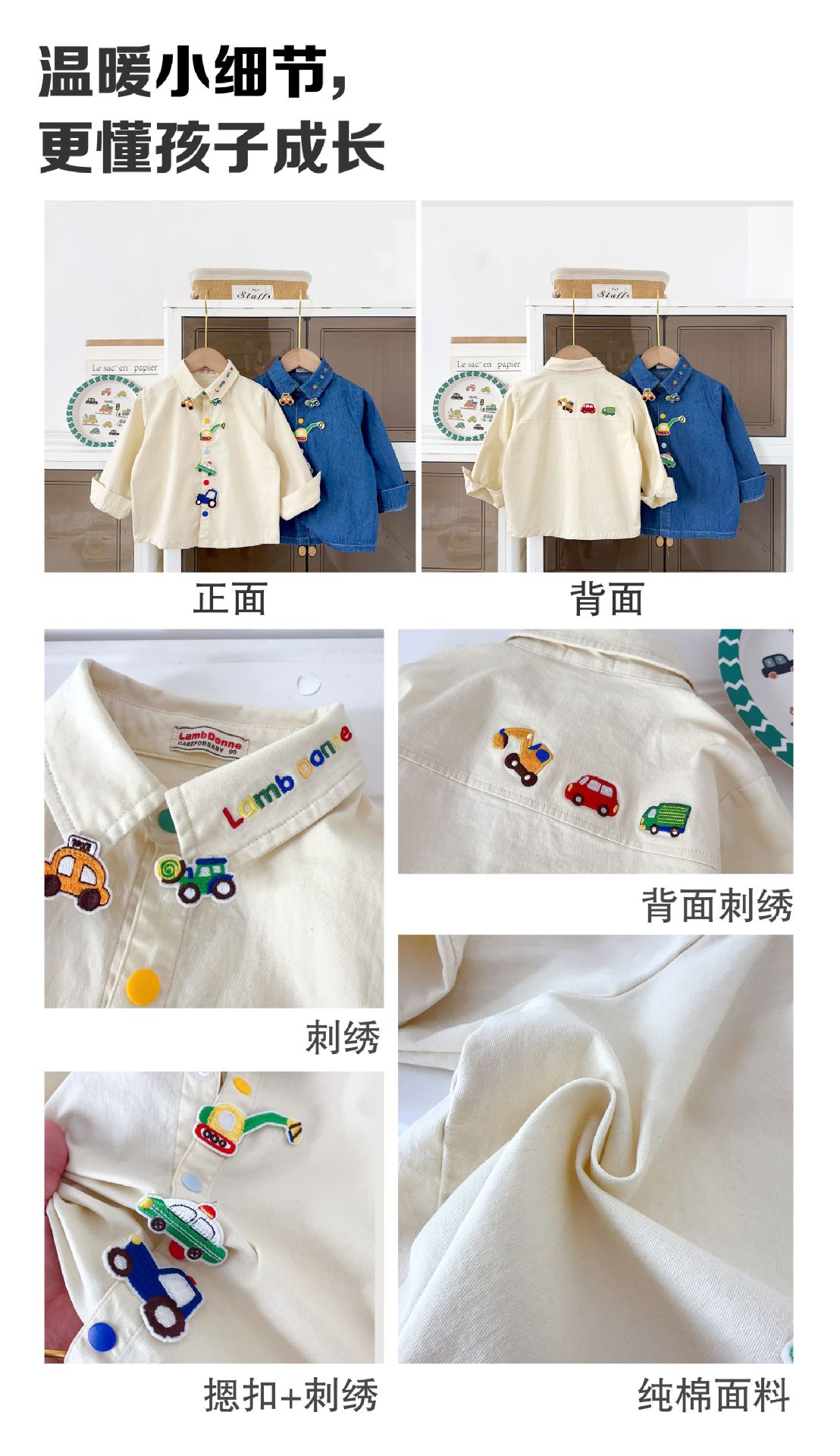 Детские рубашки для мальчиков, весна 2026, новинка в наличии, с мультяшной вышивкой, с длинным рукавом, для малышей и детей младшего возраста.