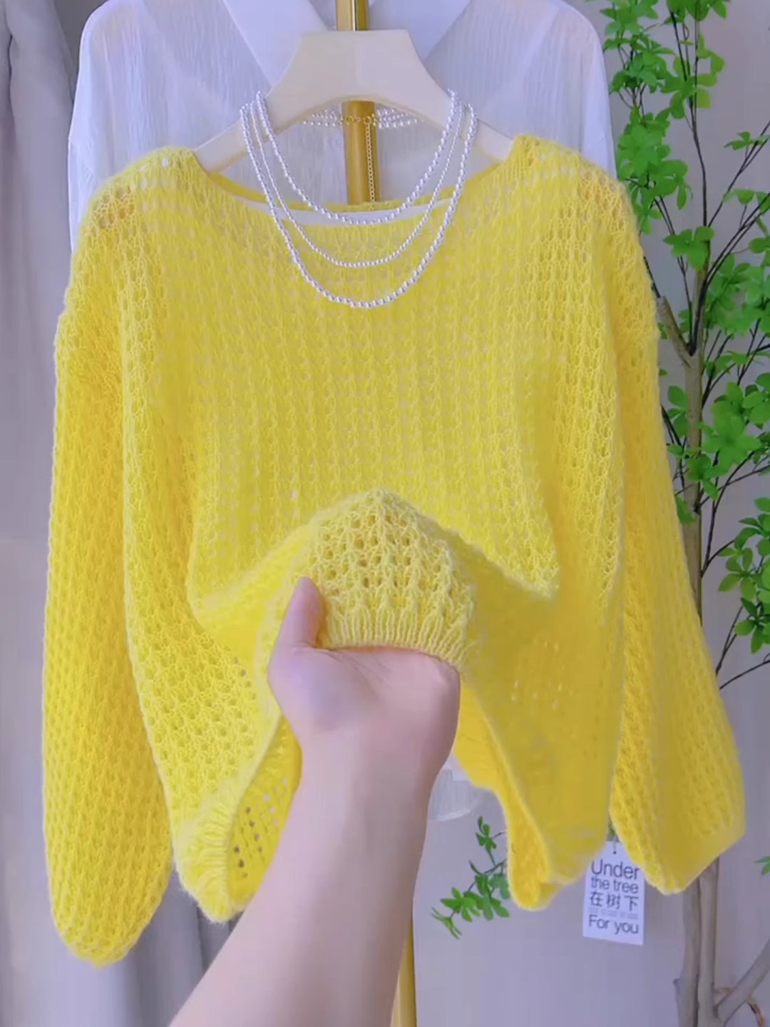 2025春夏季薄款镂空长袖针织衫女设计感宽松透气罩衫复古外搭上衣