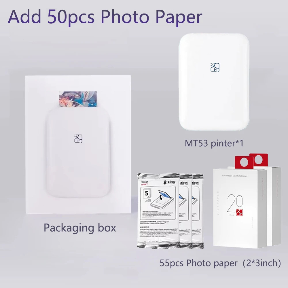Цветной фотопринтер Hanyin MT53 Портативный Bluetooth Mini 3inch Карманный фотопринтер для удостоверений личности