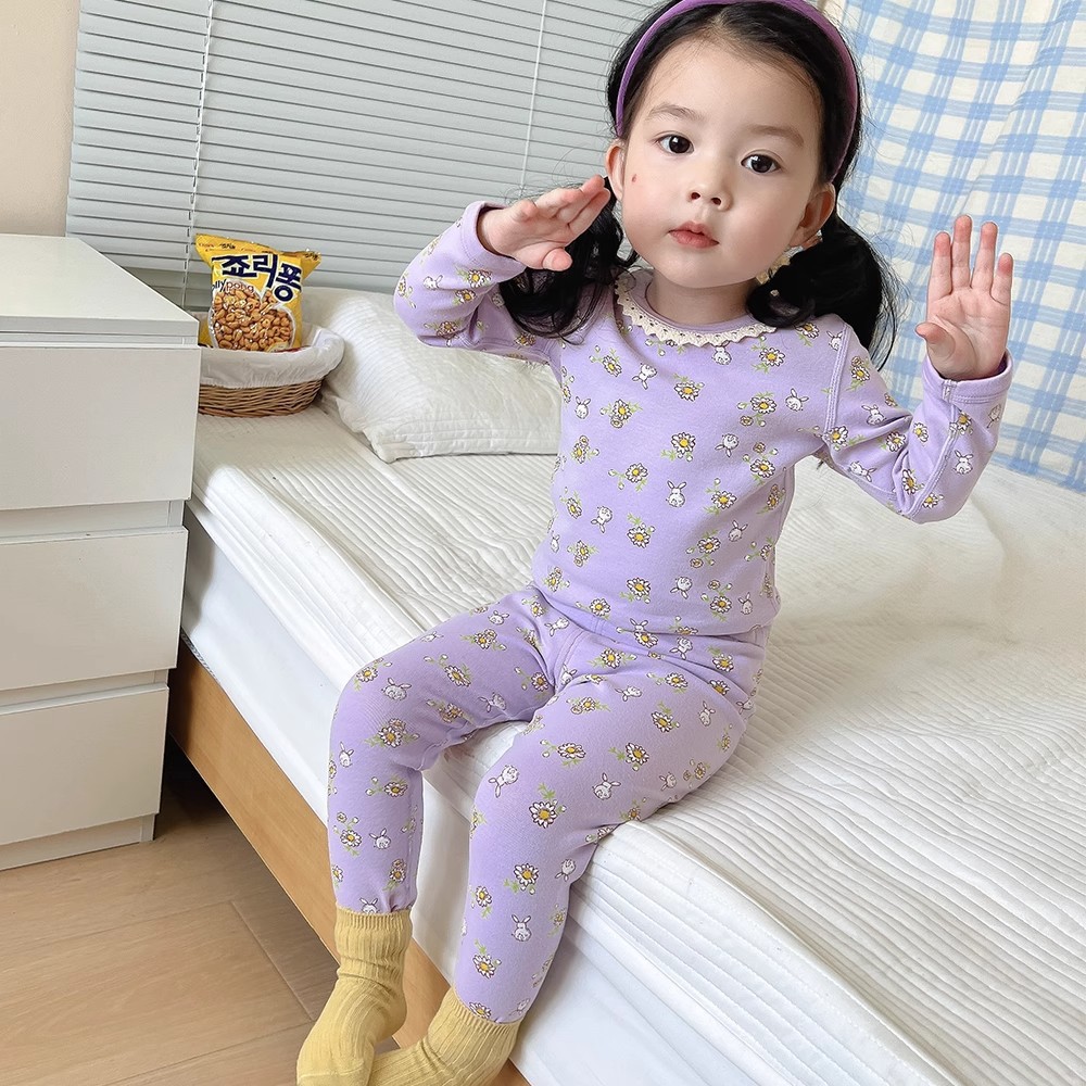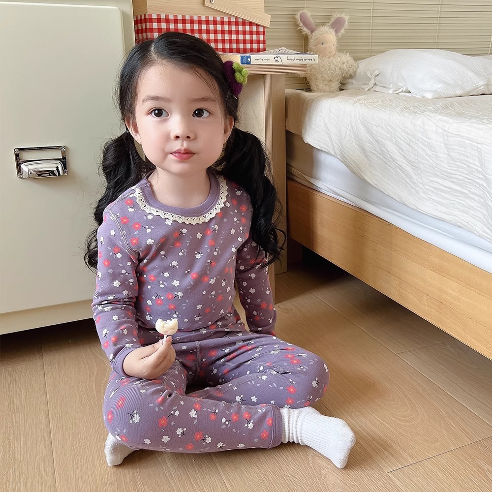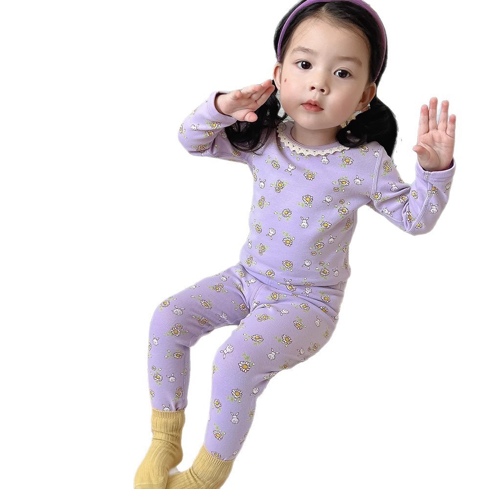 女童碎花家居服长袖长裤套装睡衣春秋新款德绒保暖秋衣裤两件套潮