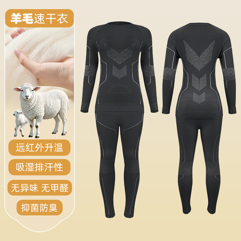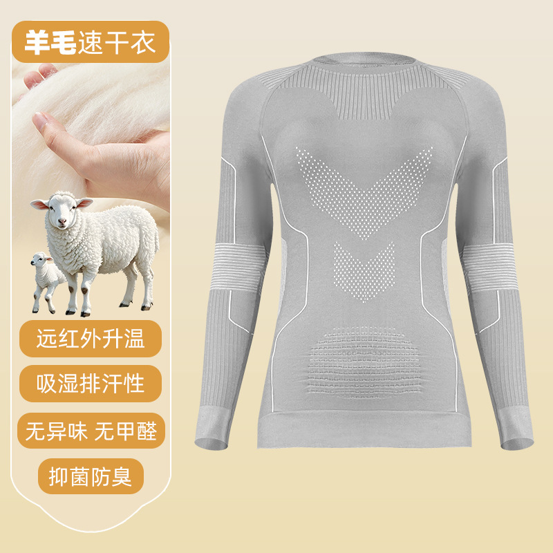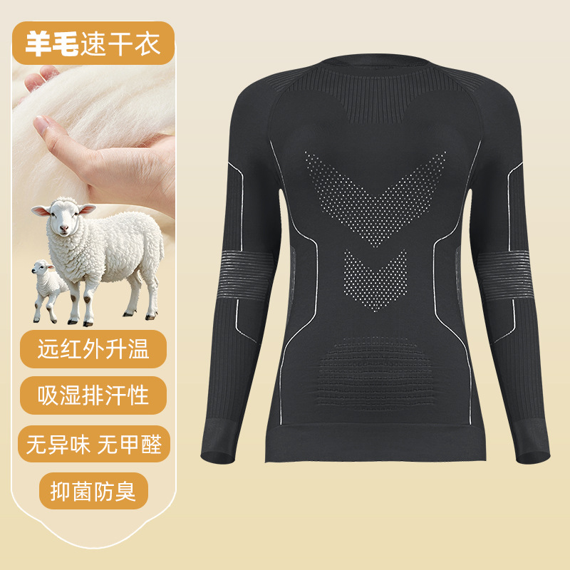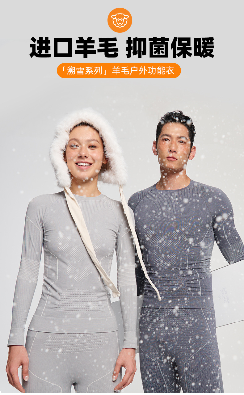 美利奴羊毛速干衣男女户外登山徒步秋冬保暖排汗内衣滑雪服速干衣