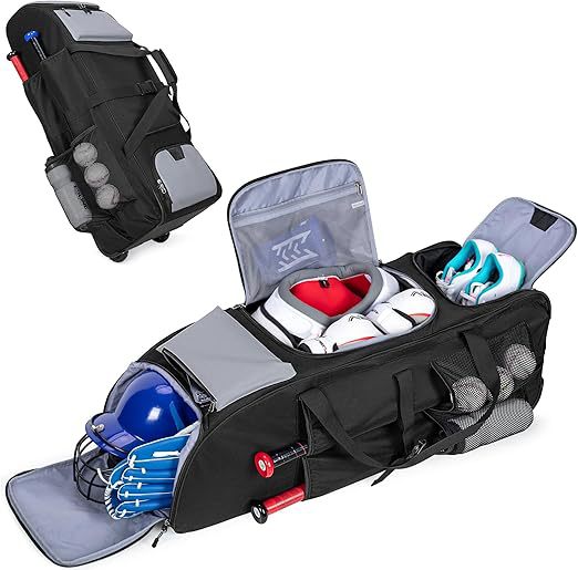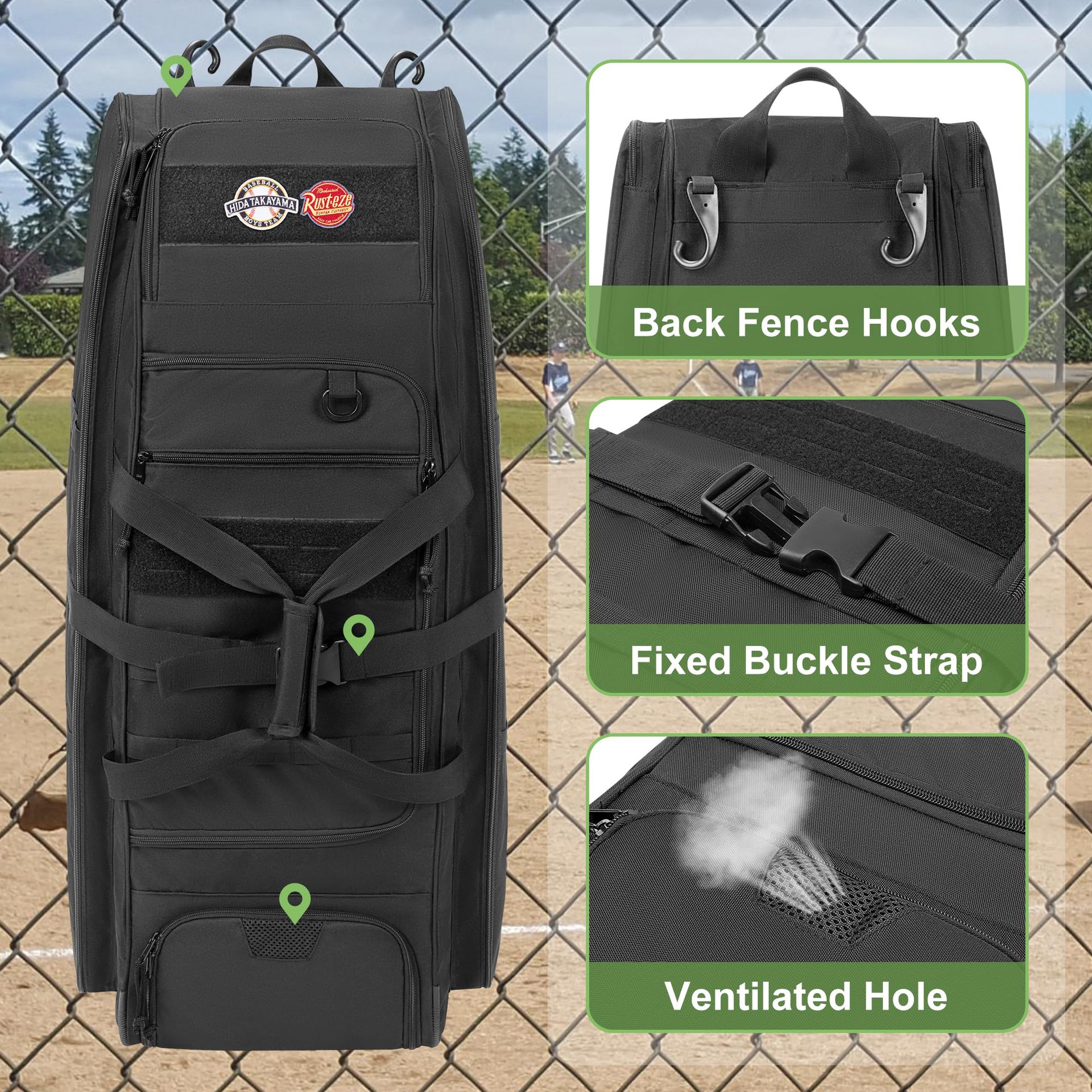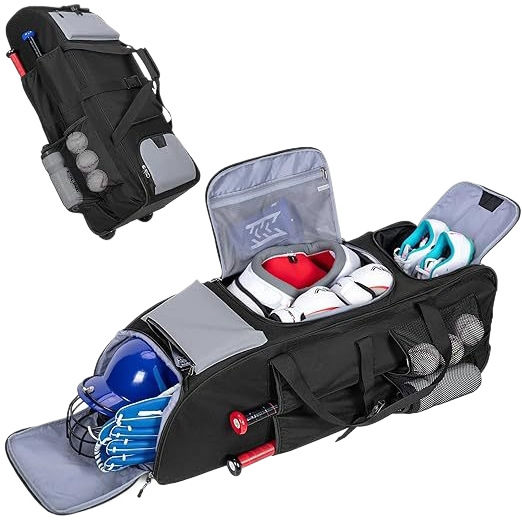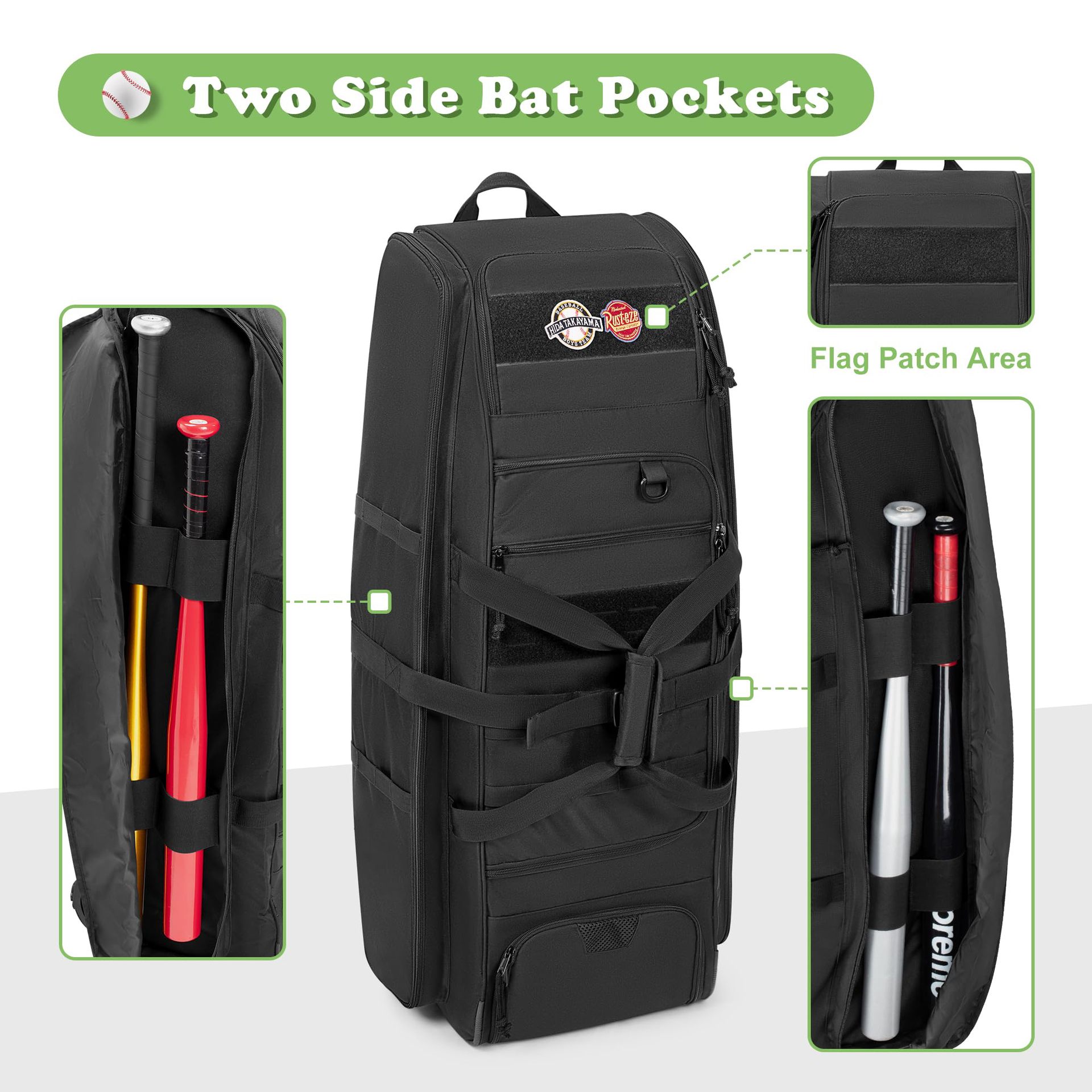 跨境滚动棒球包4 只球棒垒球接球包轮式装备包带独立鞋隔层训练包