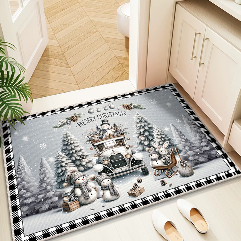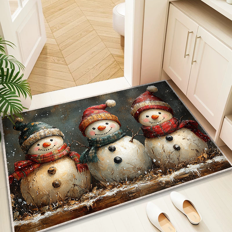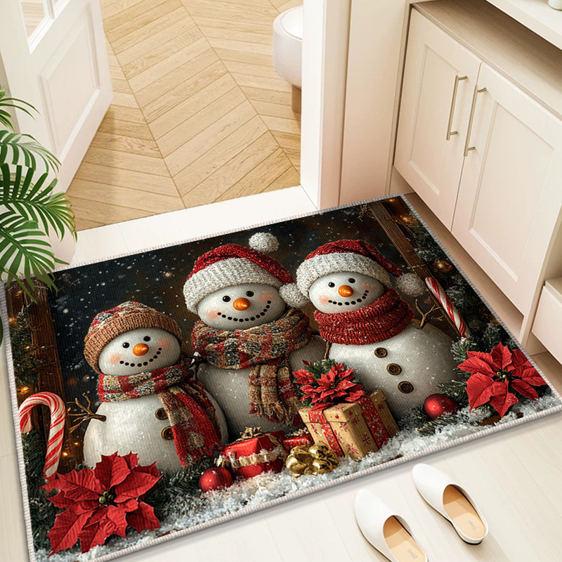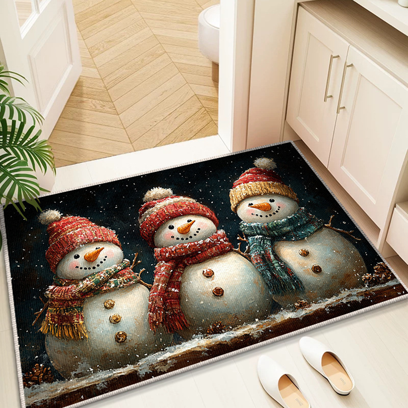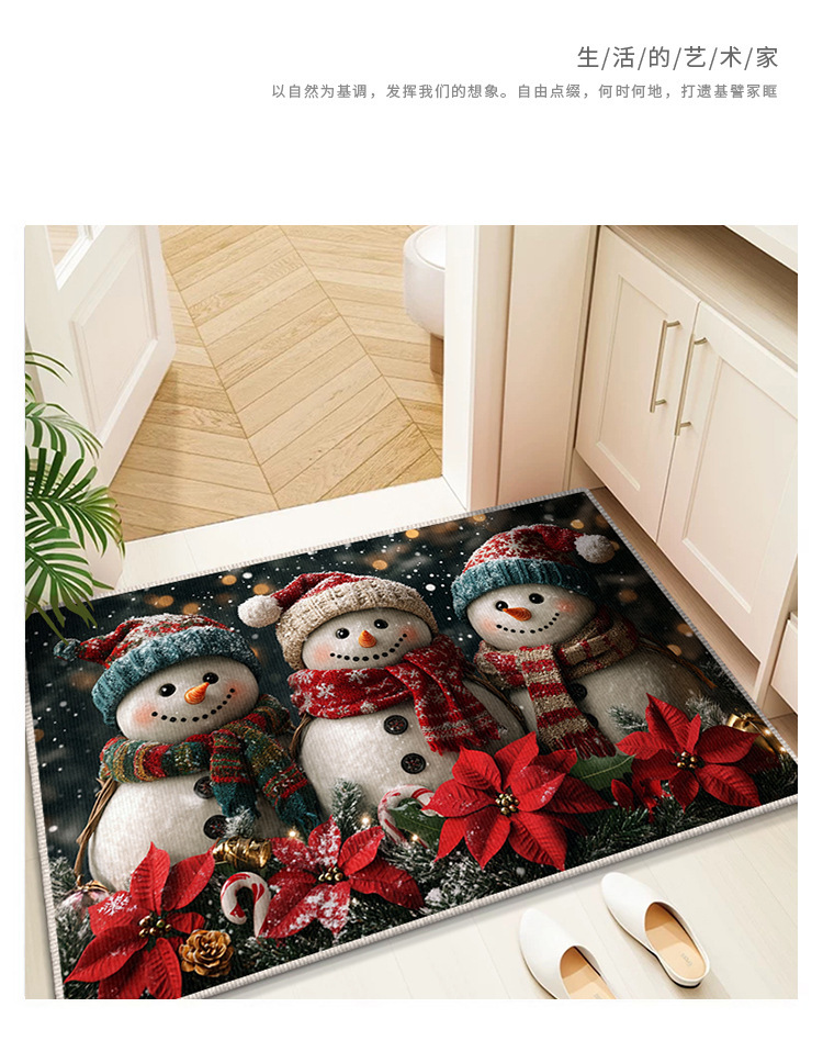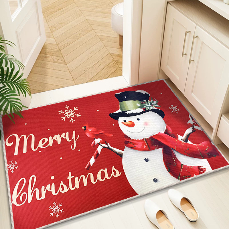 Трансграничный рождественский снеговик, напольный коврик для входной двери, кухонный водопоглощающий и грязеотталкивающий напольный коврик, легкий в уходе, кристаллический бархатный напольный коврик для ванной комнаты