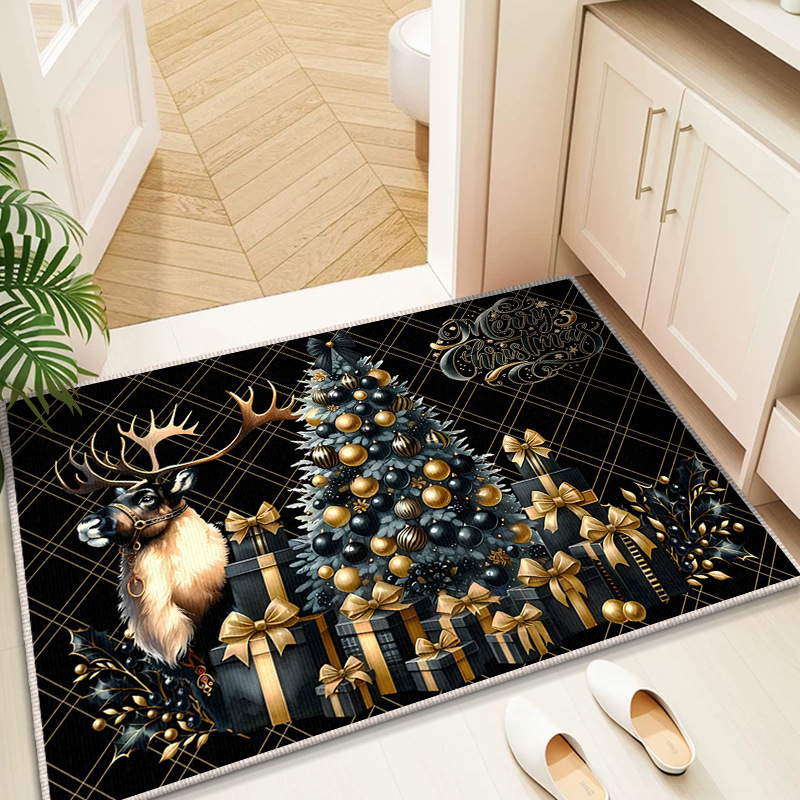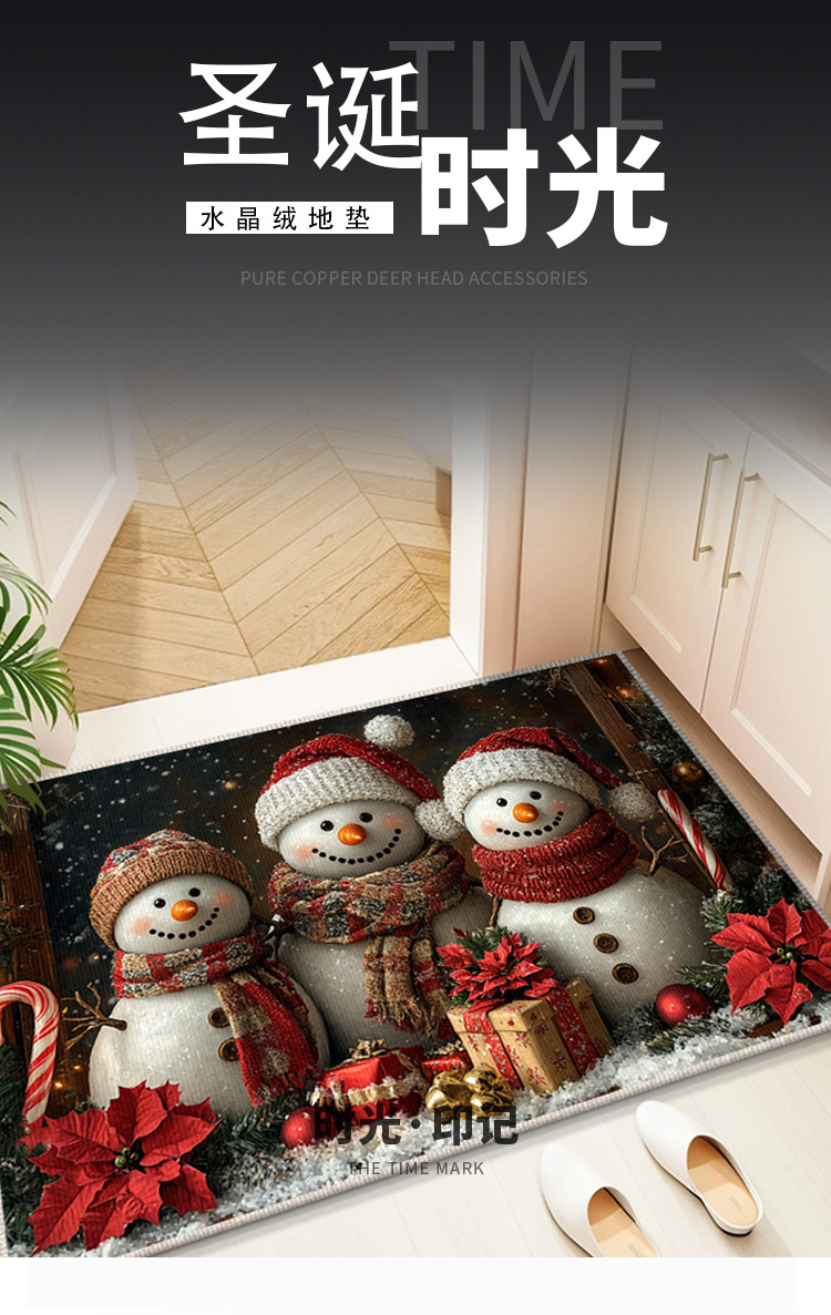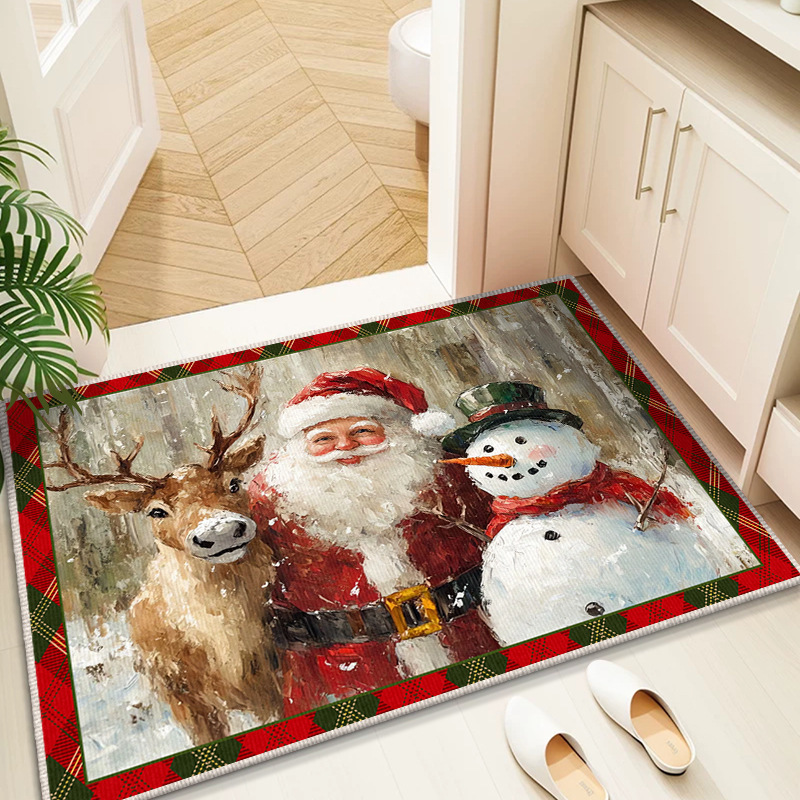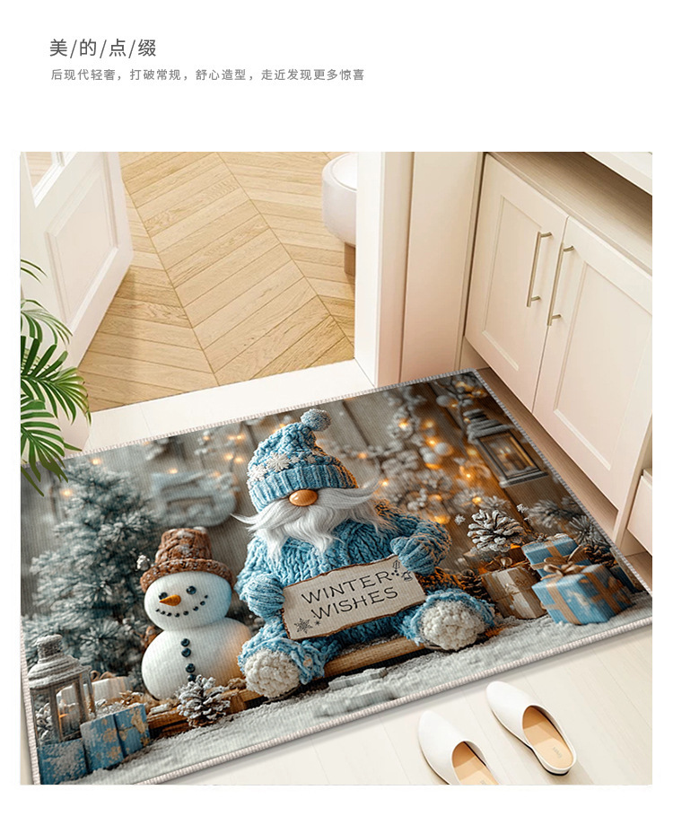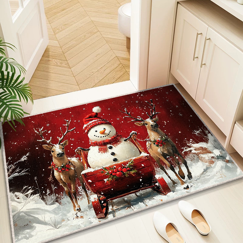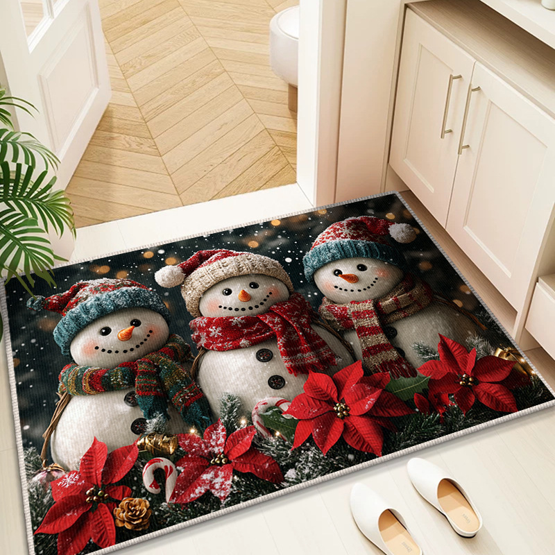 Трансграничный рождественский снеговик, напольный коврик для входной двери, кухонный водопоглощающий и грязеотталкивающий напольный коврик, легкий в уходе, кристаллический бархатный напольный коврик для ванной комнаты