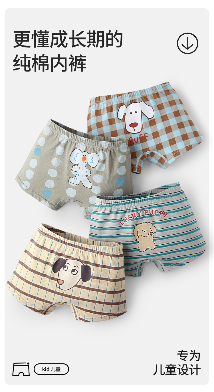 ZYZ儿童内裤批发条纹格子男童内裤卡通小狗纯棉A类儿童平角内裤