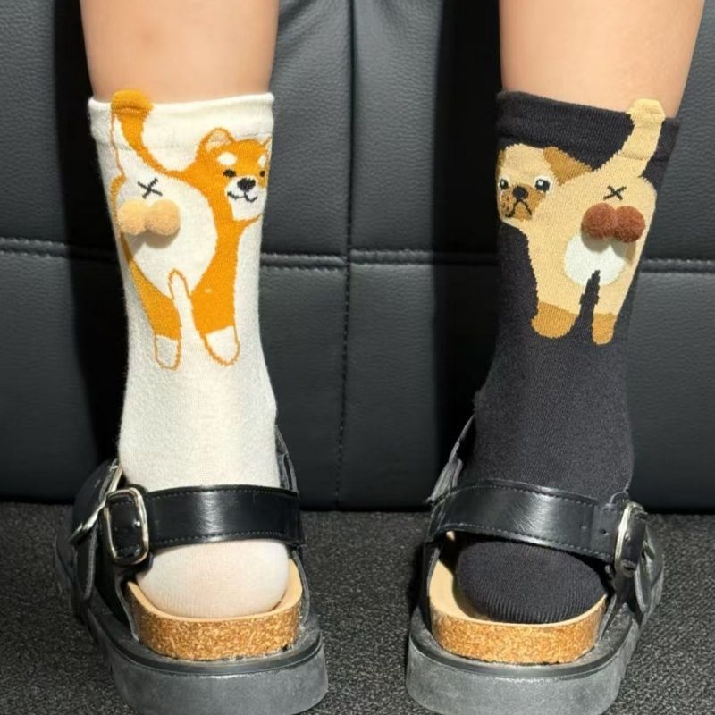 Новые летние креативные носки Puppy Dandan, женские носки из чесаного хлопка, персонализированные милые девчачьи уличные носки Ins Trend средней длины