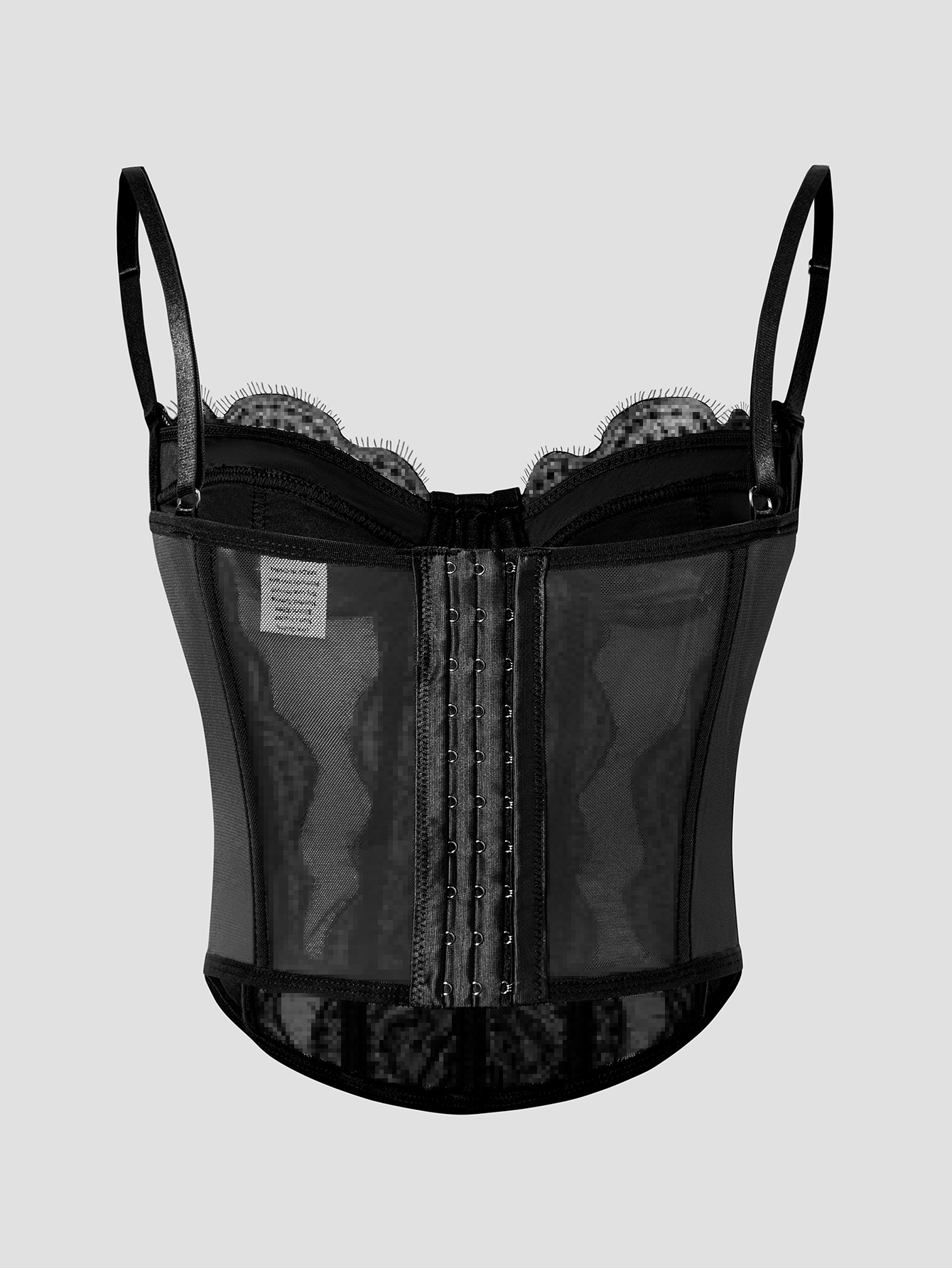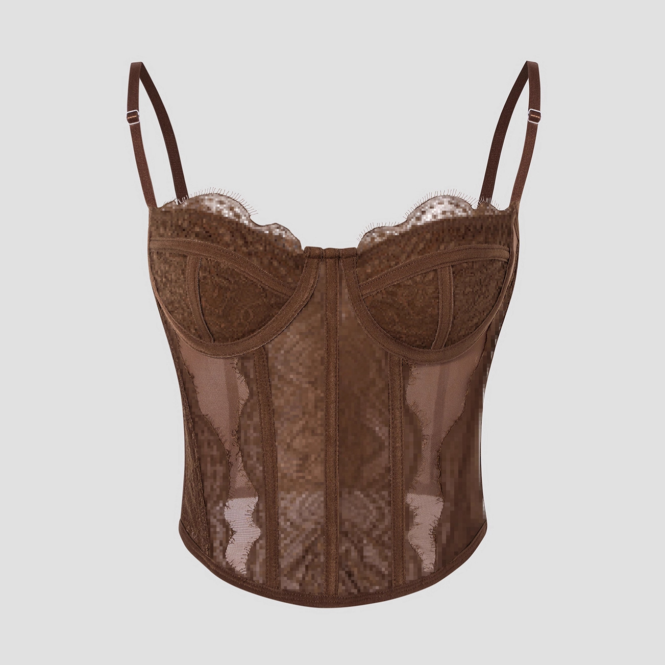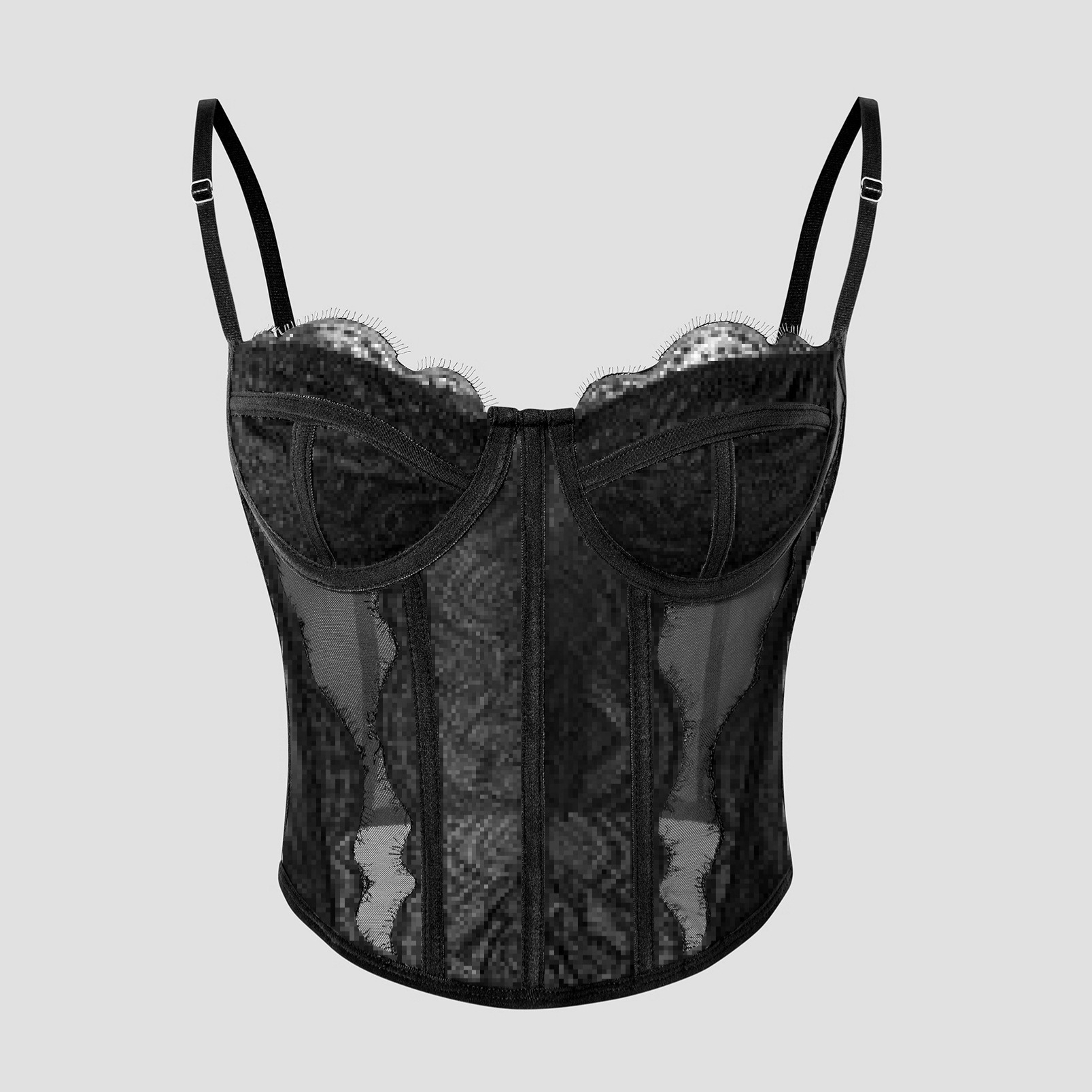 跨境爆品辣妹性感聚拢紧身鱼骨睫毛蕾丝透视吊带背心胸衣束身上衣