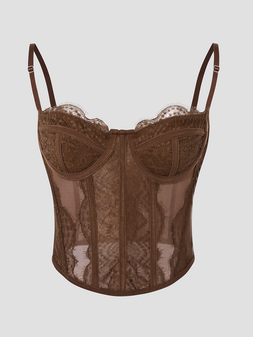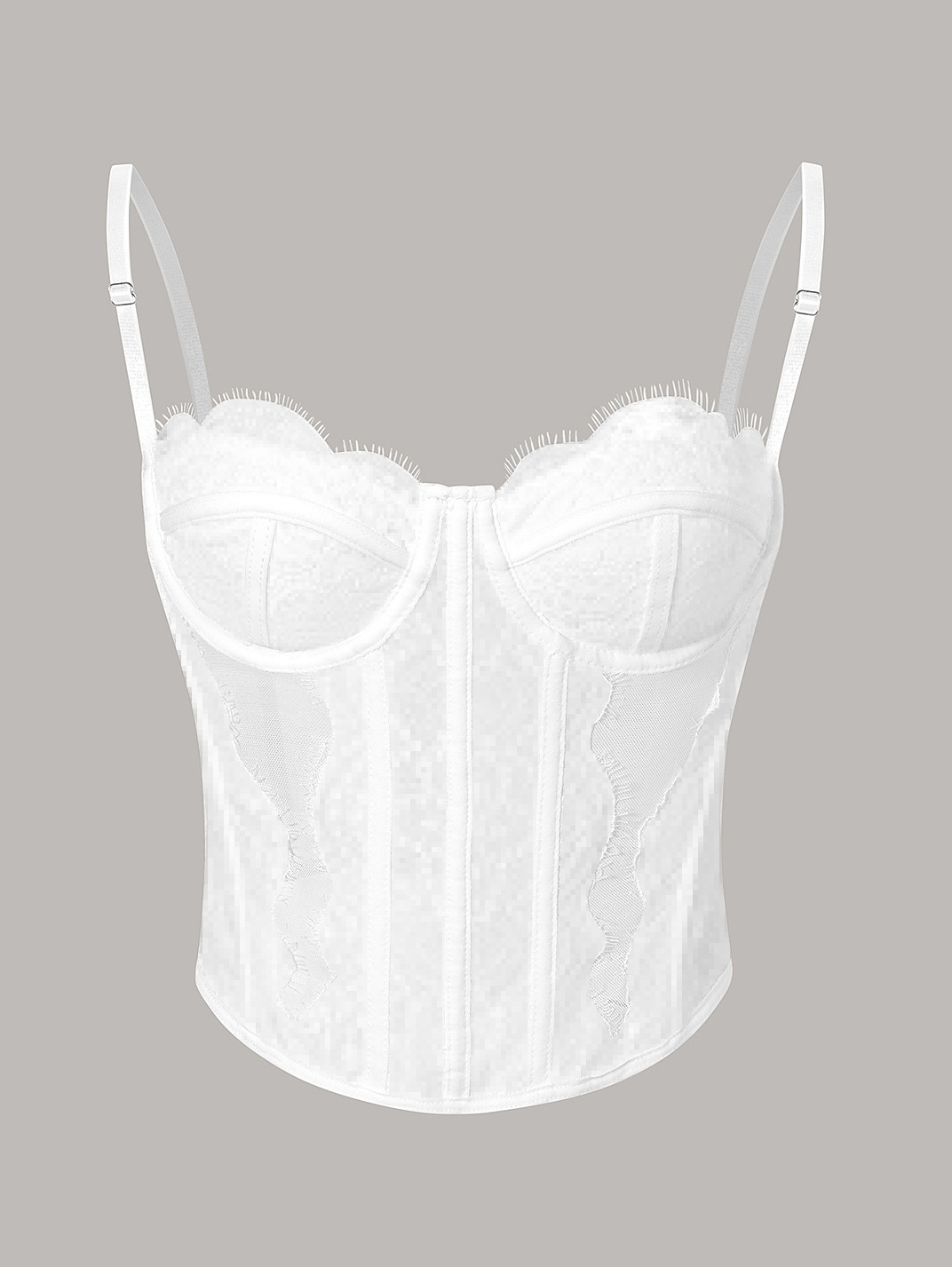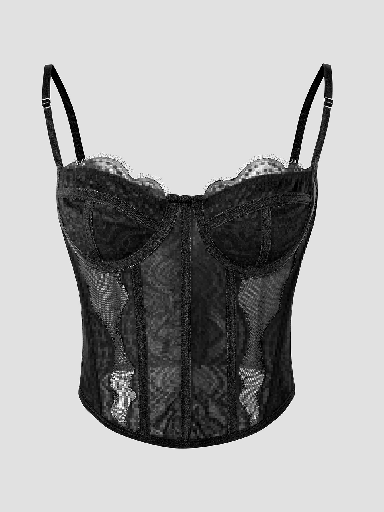 跨境爆品辣妹性感聚拢紧身鱼骨睫毛蕾丝透视吊带背心胸衣束身上衣