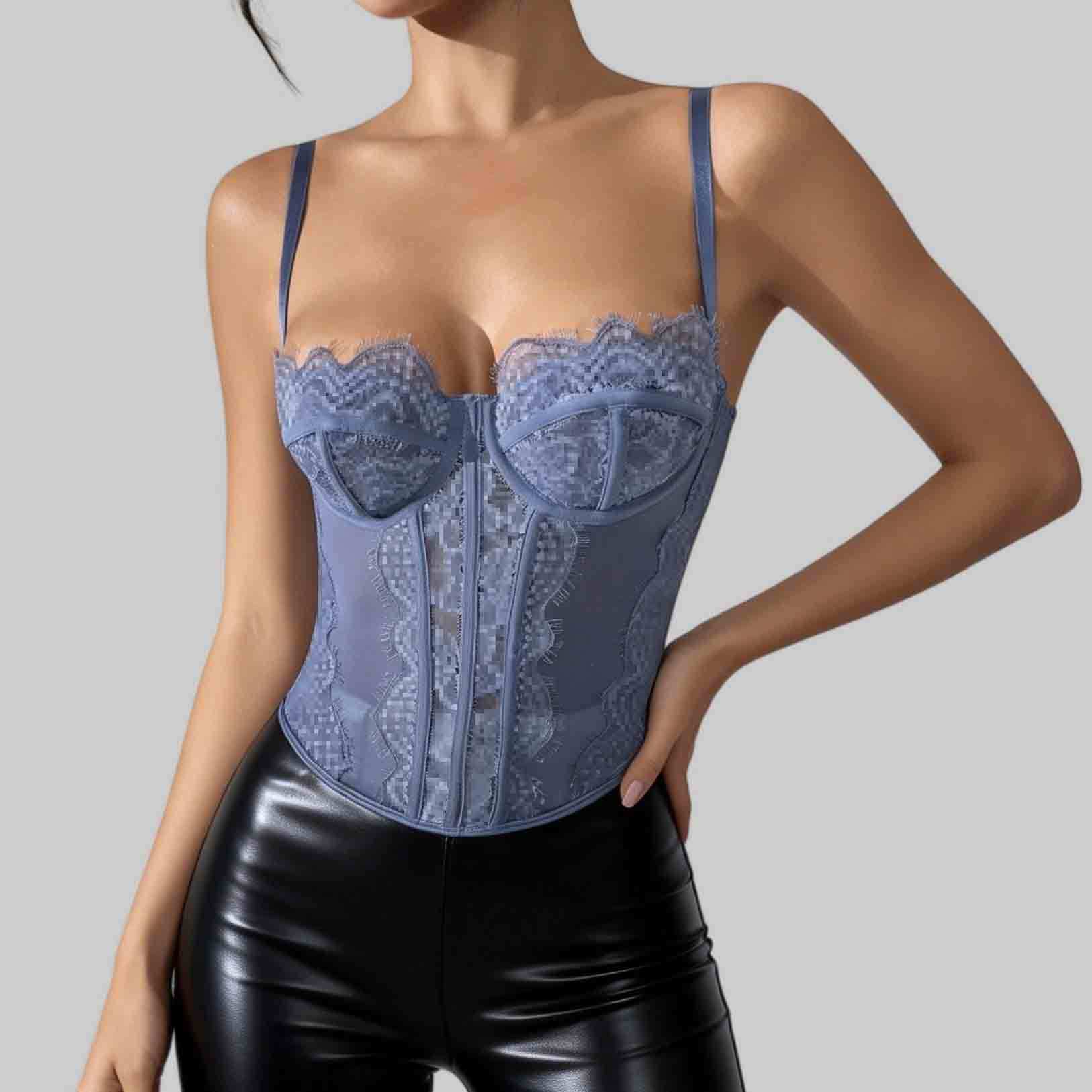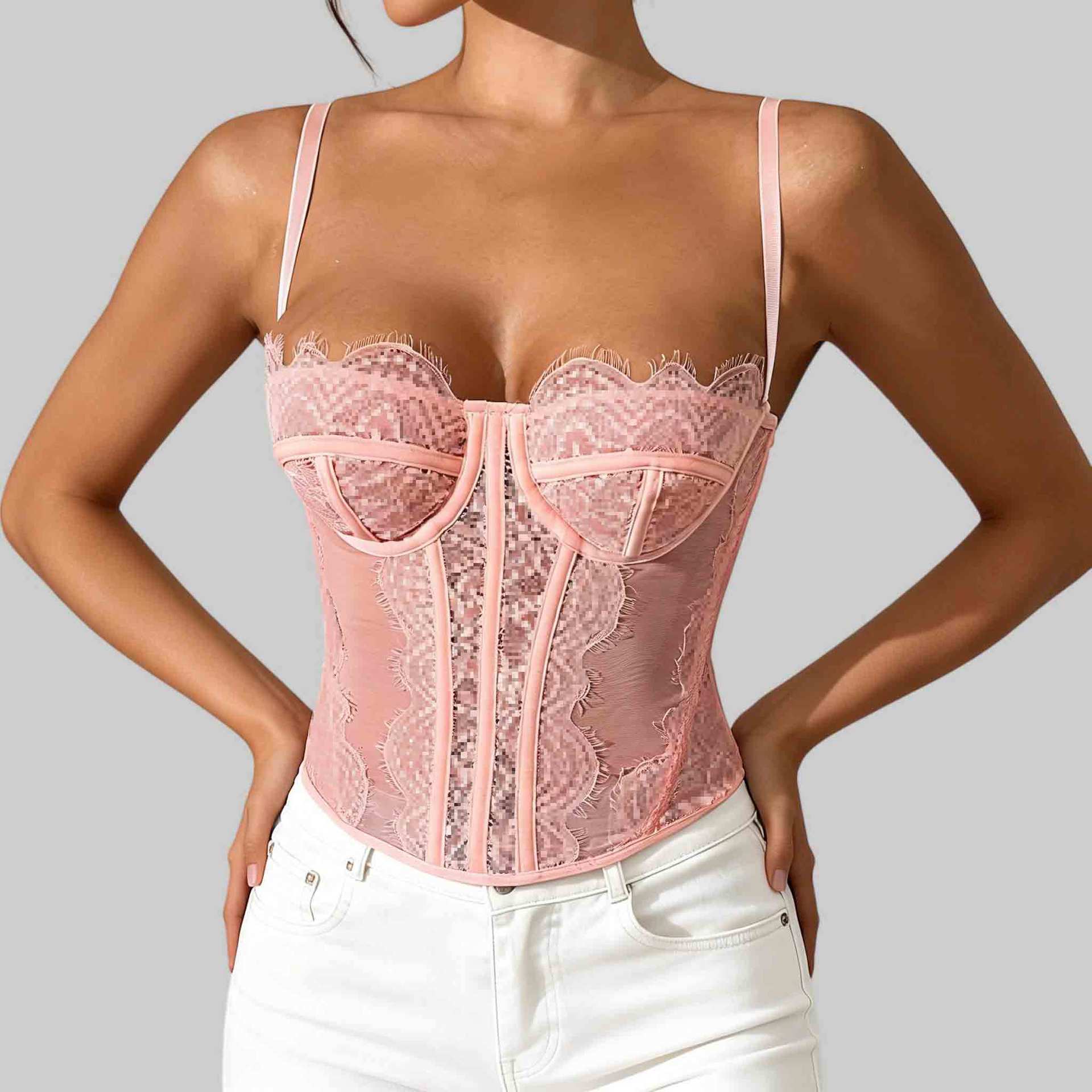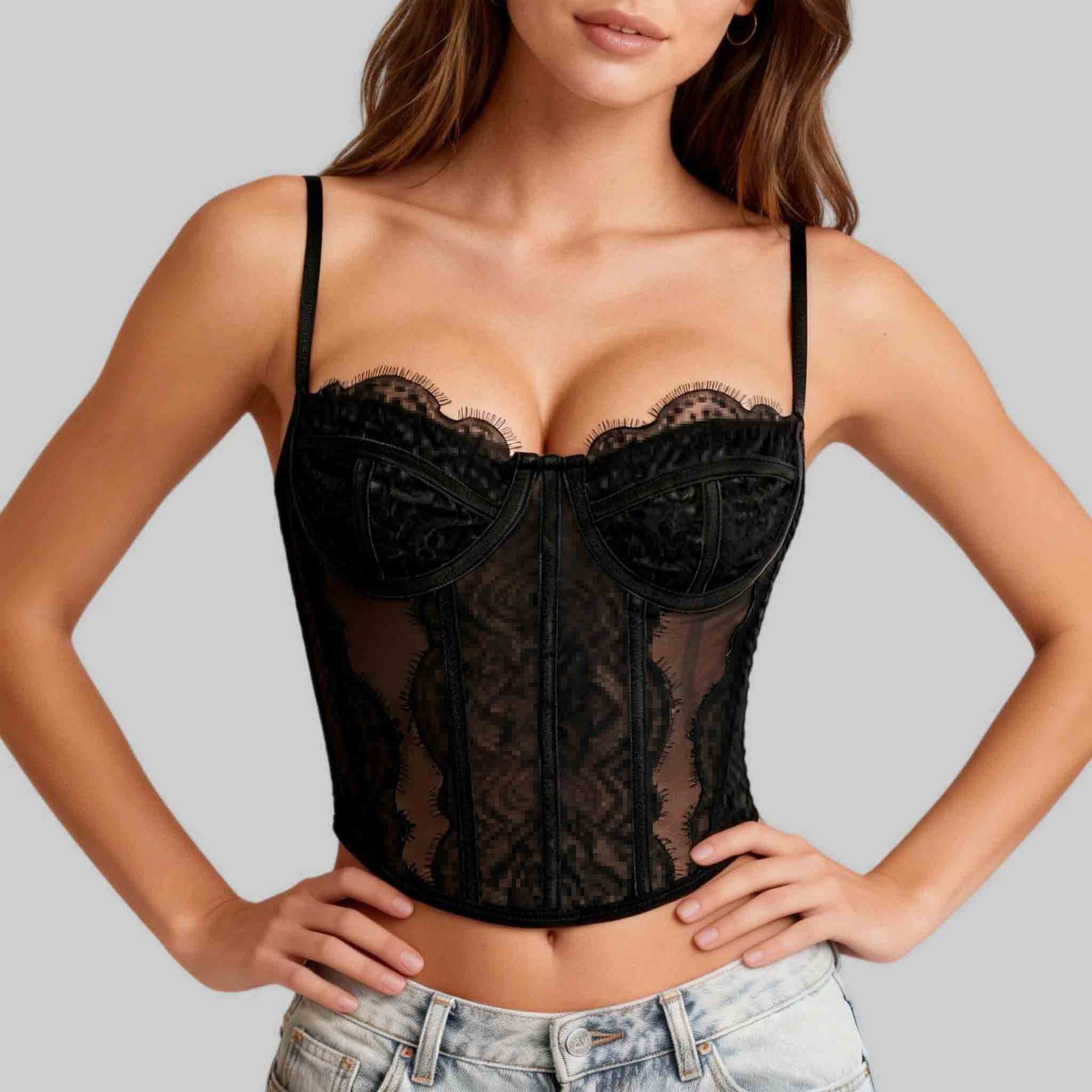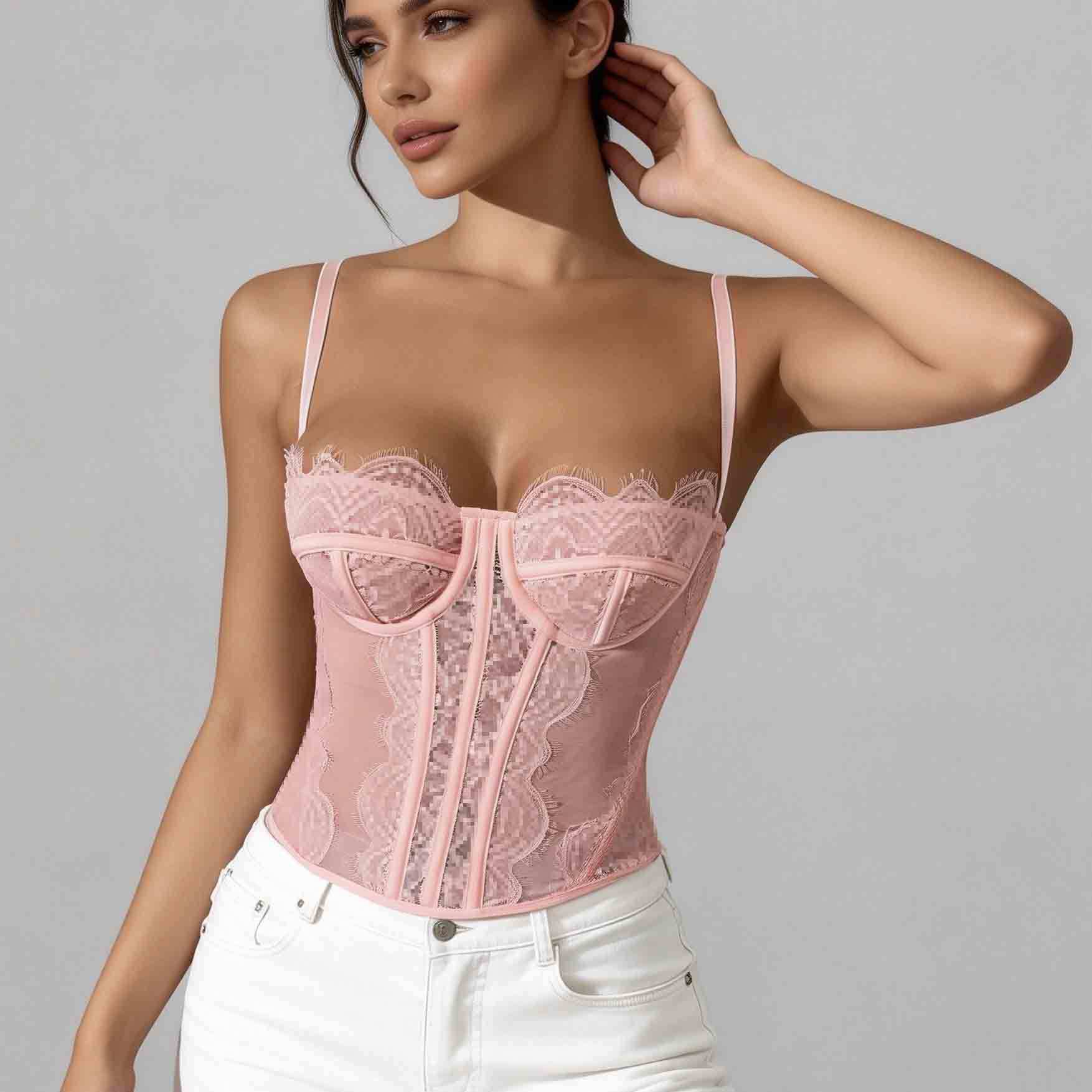 Трансграничный хит продаж, сексуальный сексуальный пуш-ап, плотный кружевной прозрачный бюстгальтер с ресницами в виде рыбьей кости, корсетный топ
