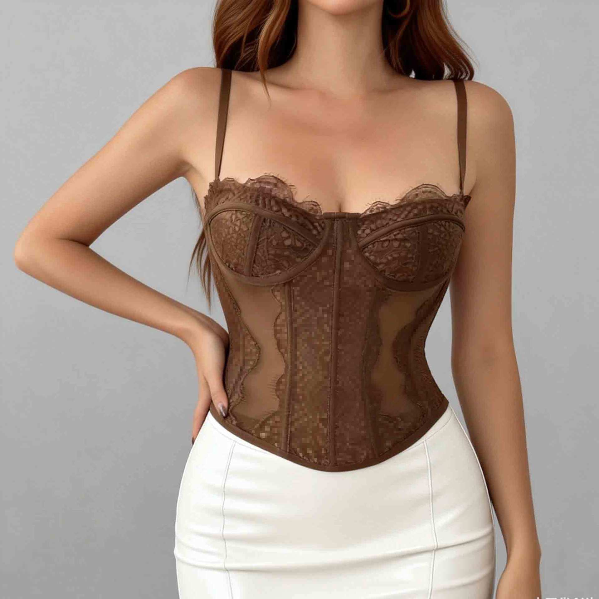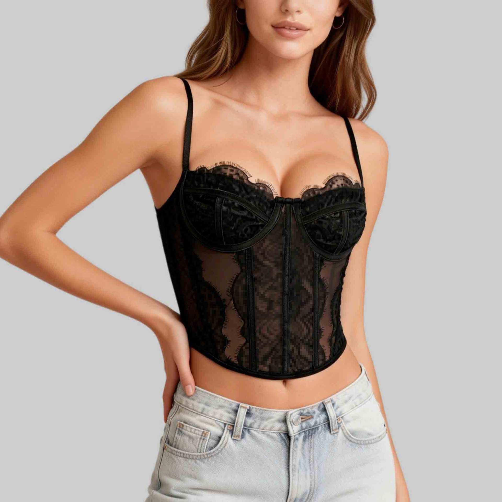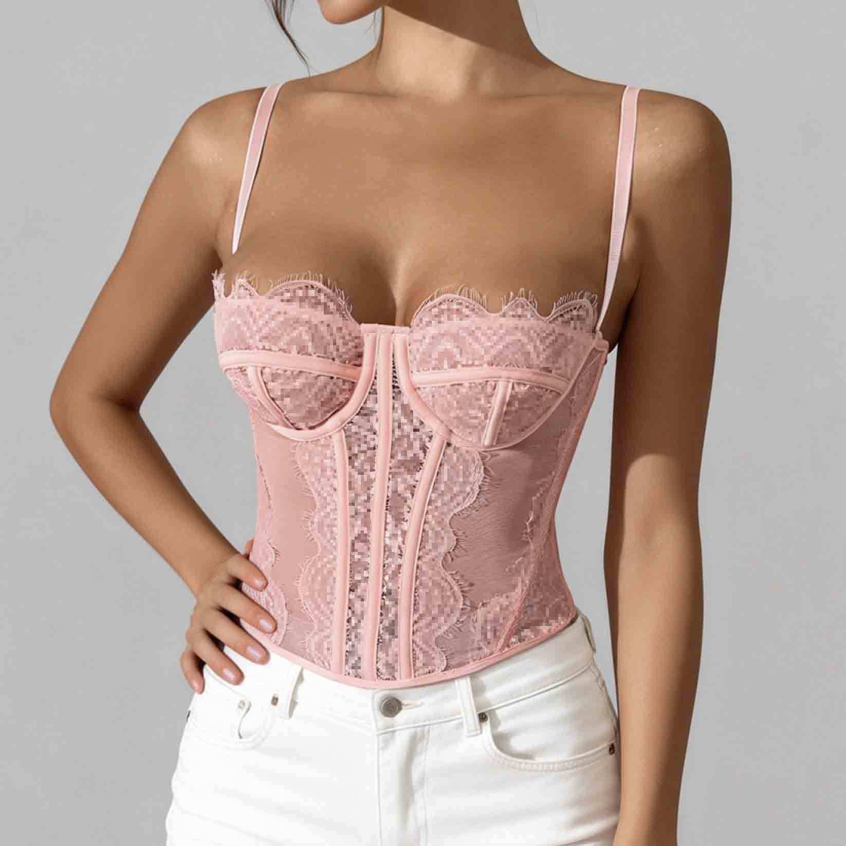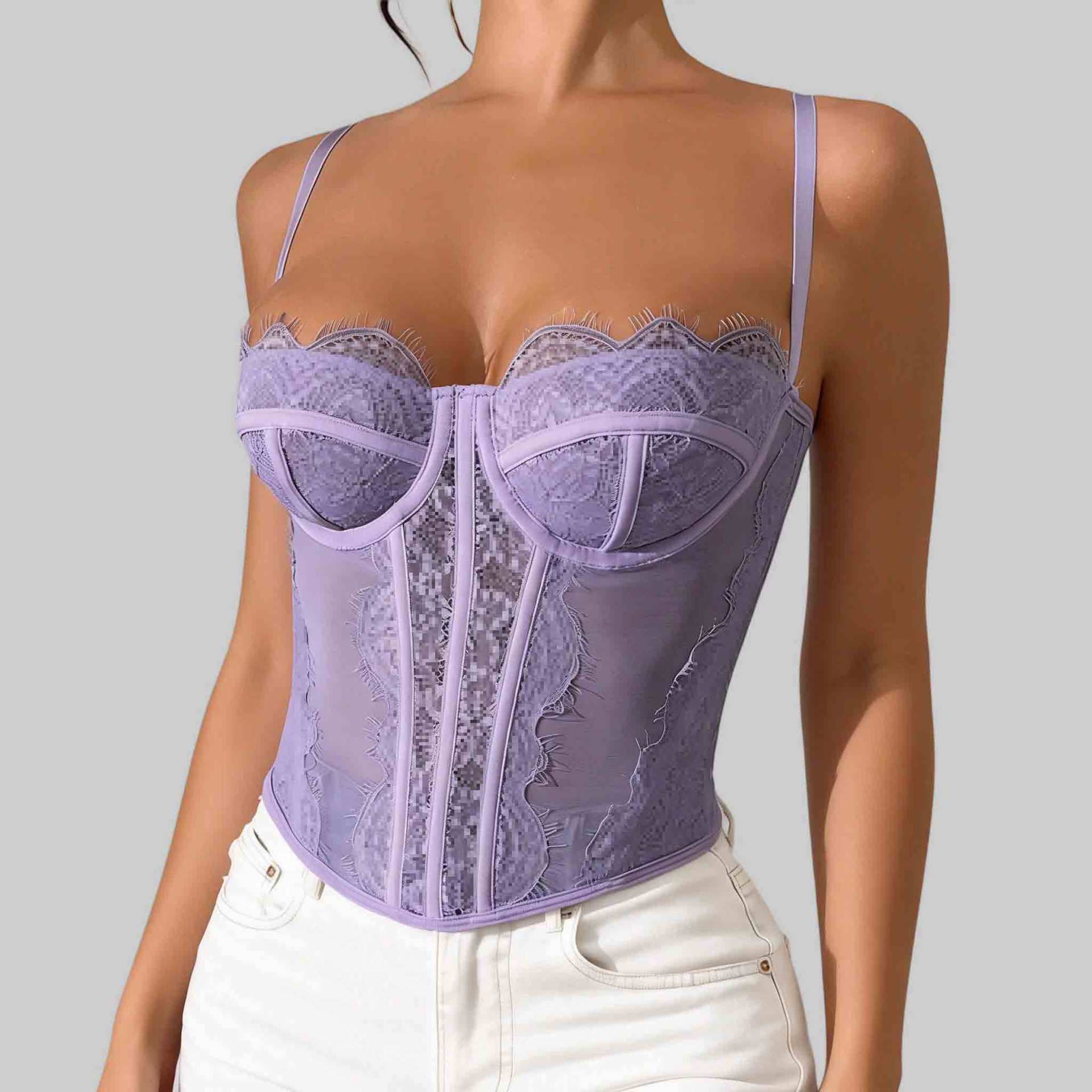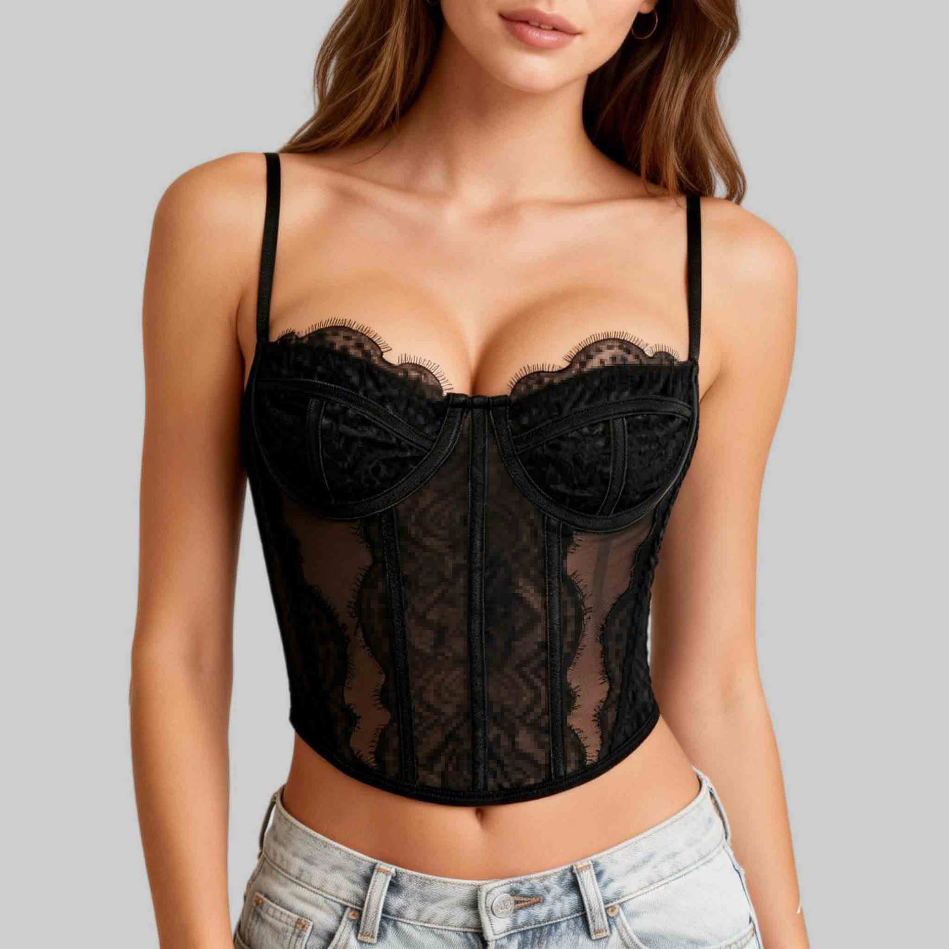Трансграничный хит продаж, сексуальный сексуальный пуш-ап, плотный кружевной прозрачный бюстгальтер с ресницами в виде рыбьей кости, корсетный топ