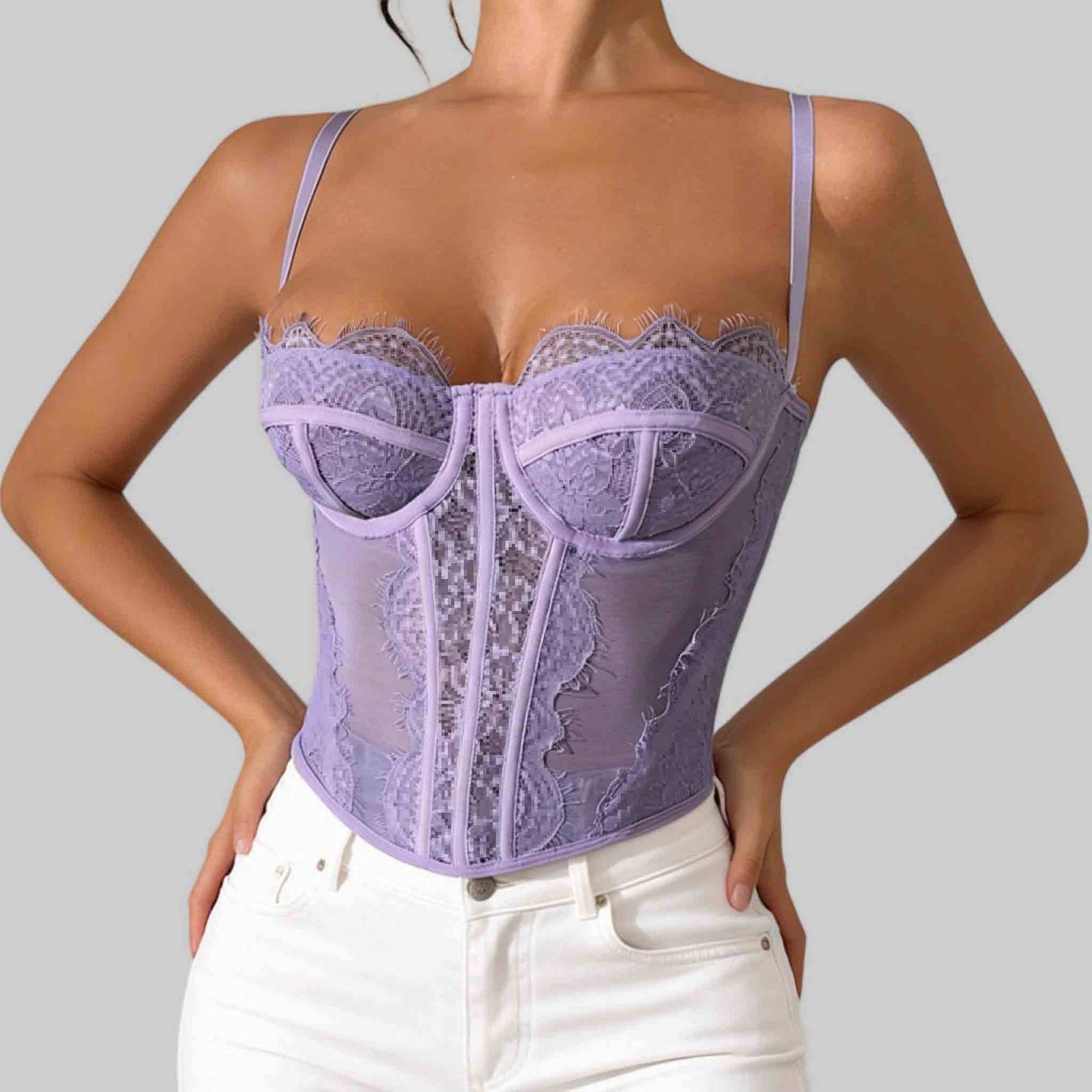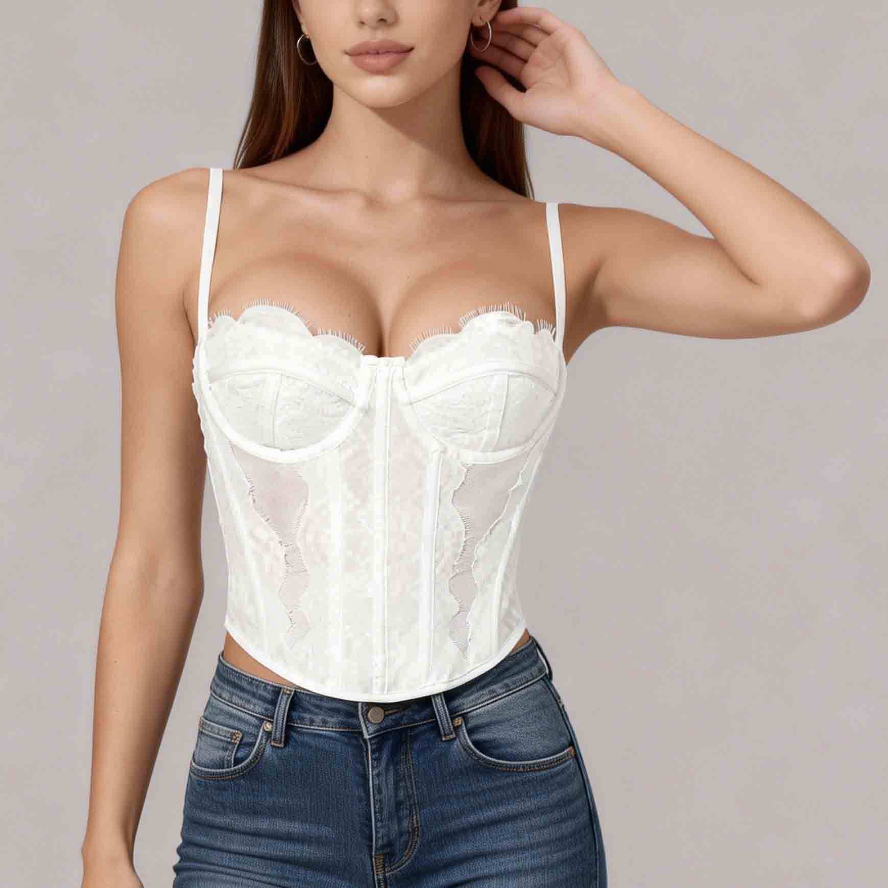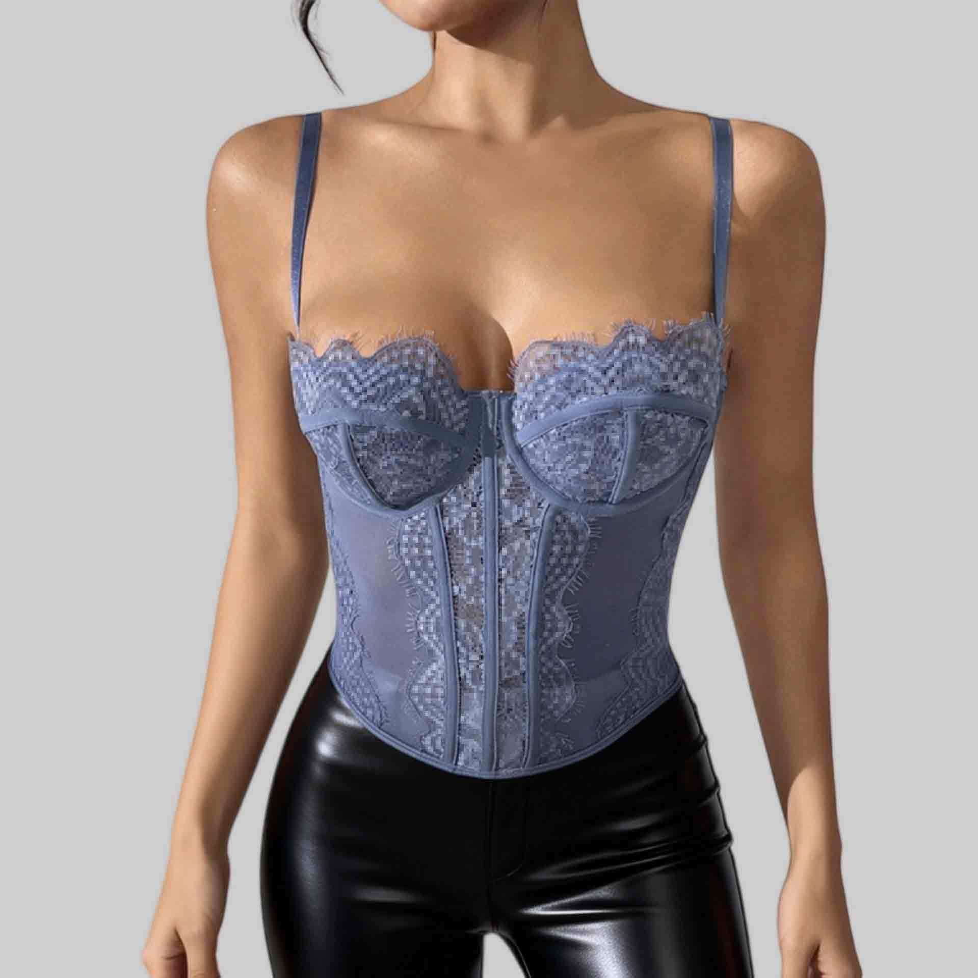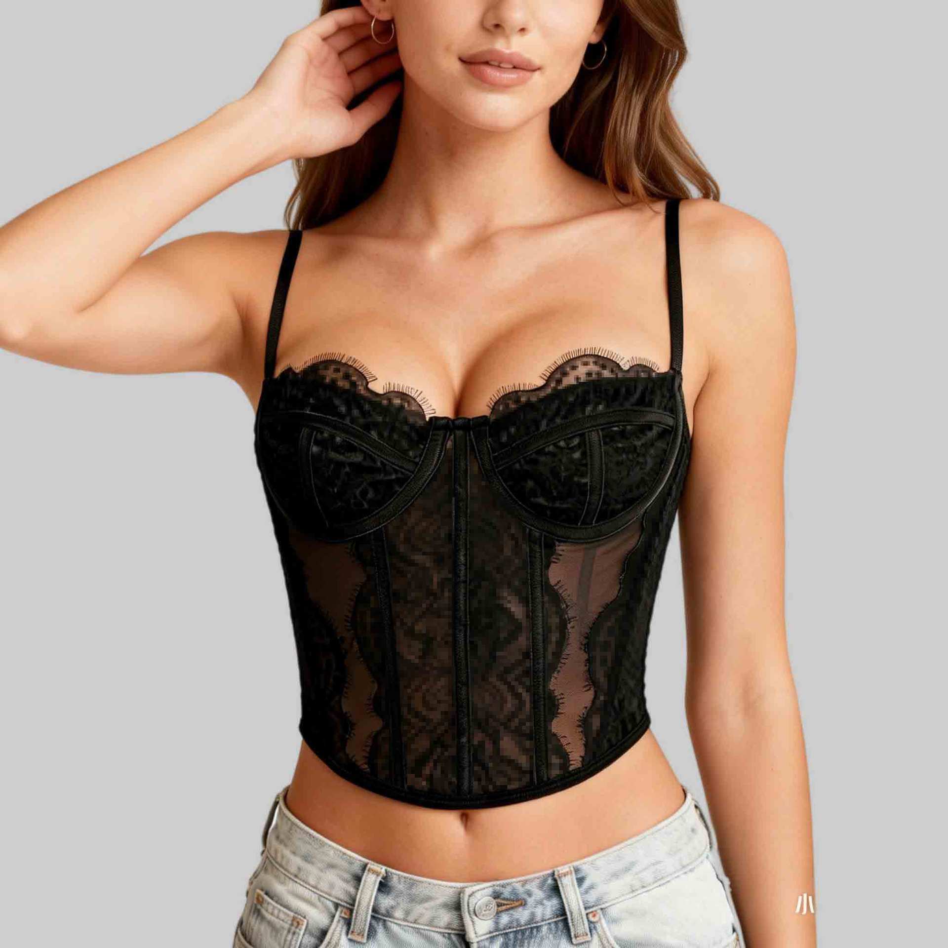 Трансграничный хит продаж, сексуальный сексуальный пуш-ап, плотный кружевной прозрачный бюстгальтер с ресницами в виде рыбьей кости, корсетный топ