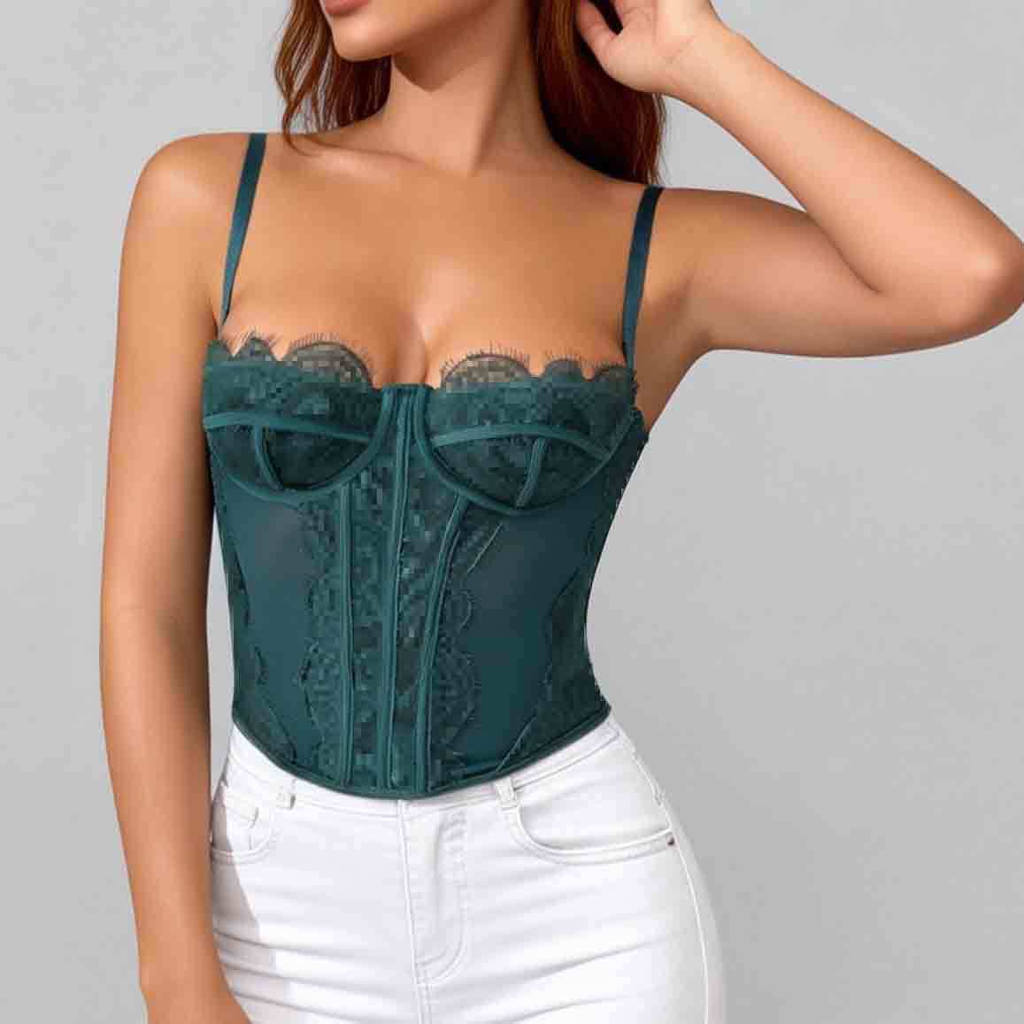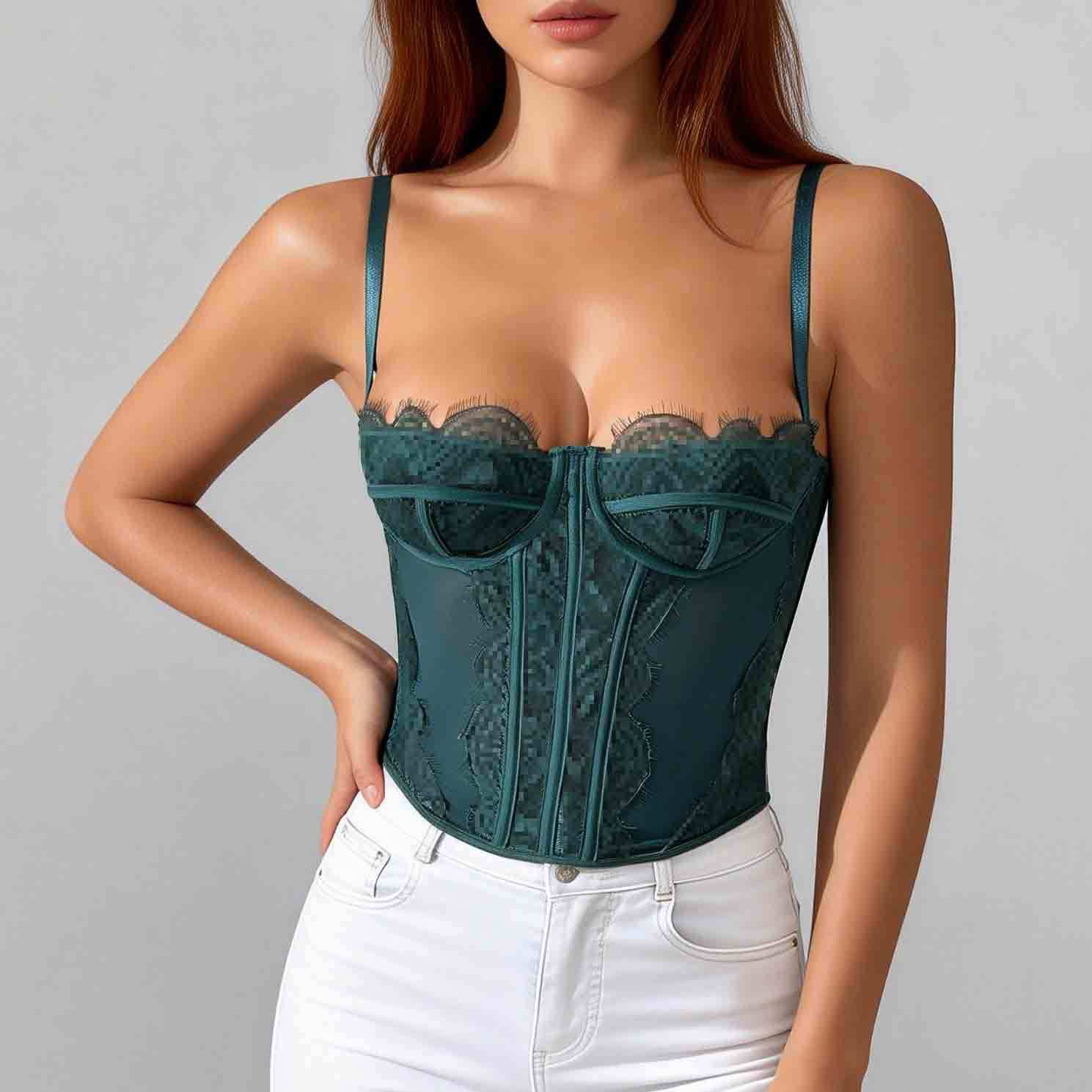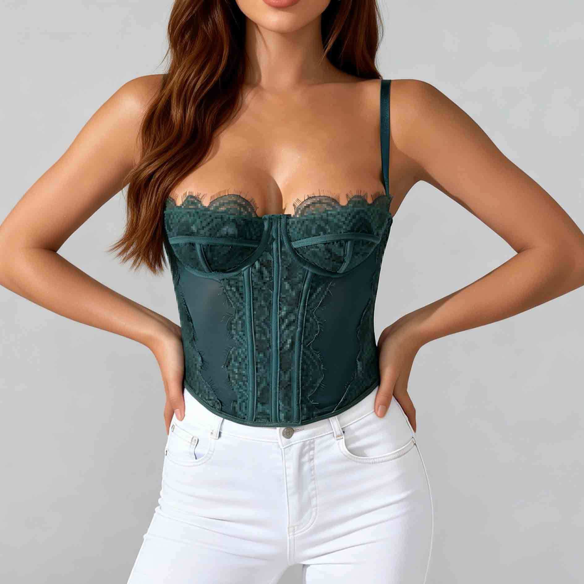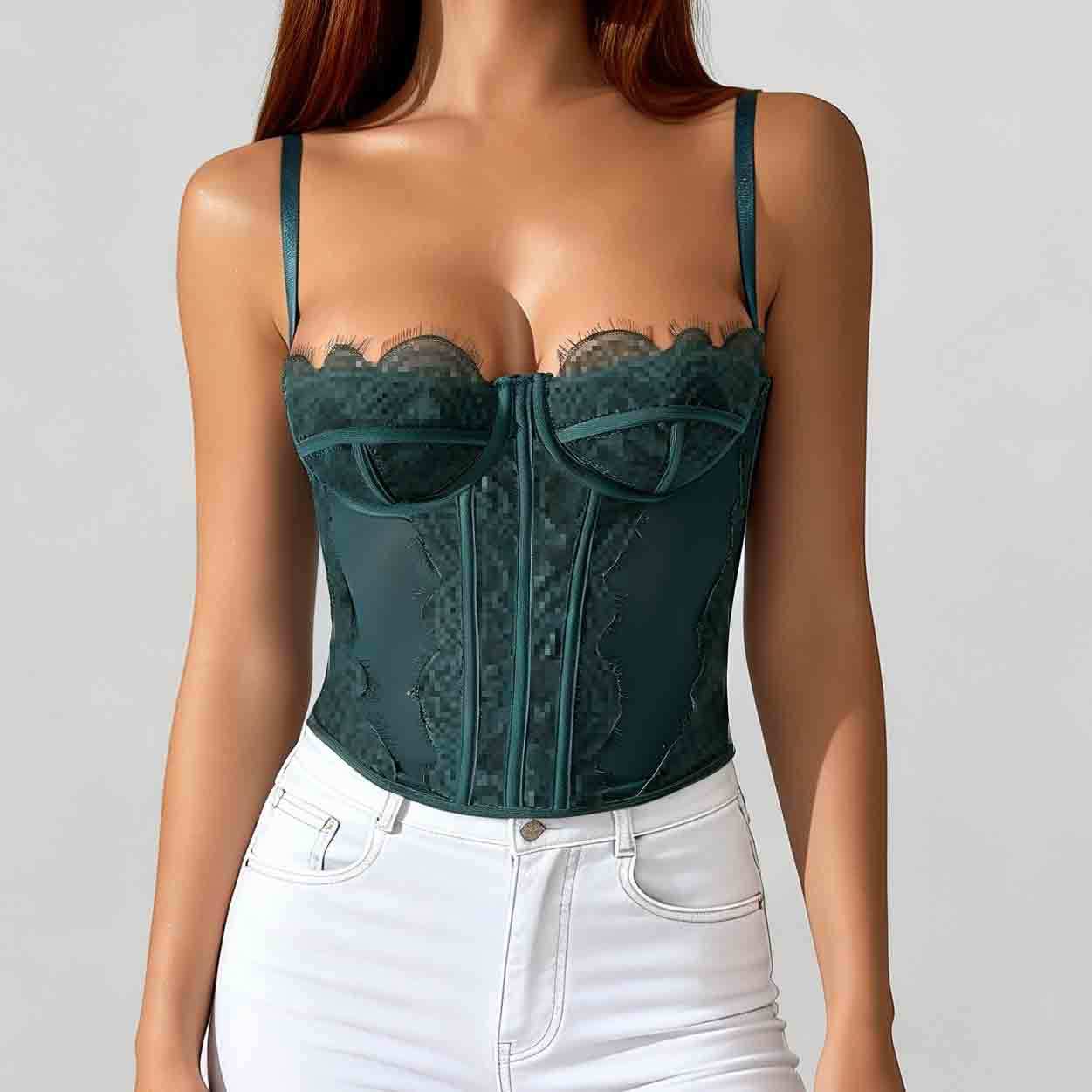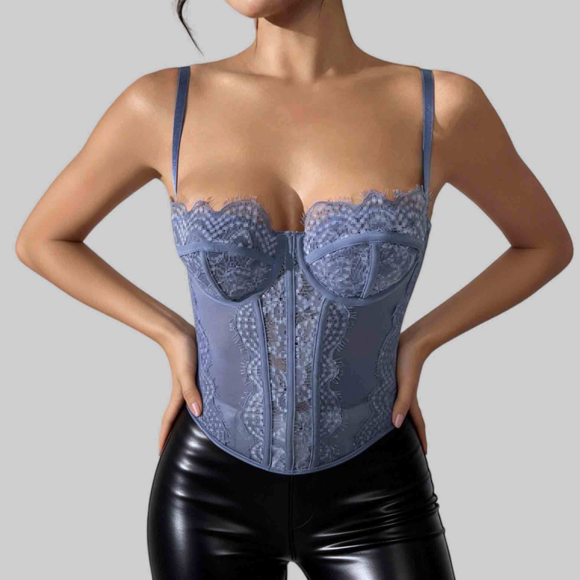 Трансграничный хит продаж, сексуальный сексуальный пуш-ап, плотный кружевной прозрачный бюстгальтер с ресницами в виде рыбьей кости, корсетный топ