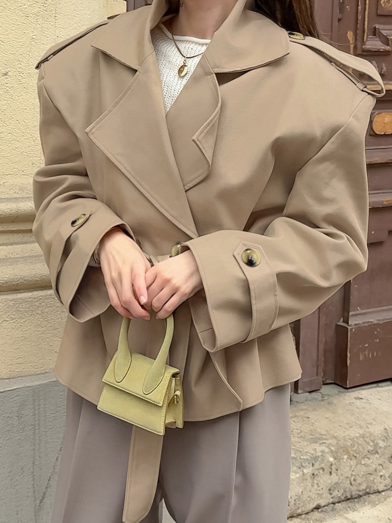 Европейская и американская трансграничная новинка 2025 года, осенний дизайн, модная повседневная ветровка средней длины цвета хаки на шнуровке на талии для женщин