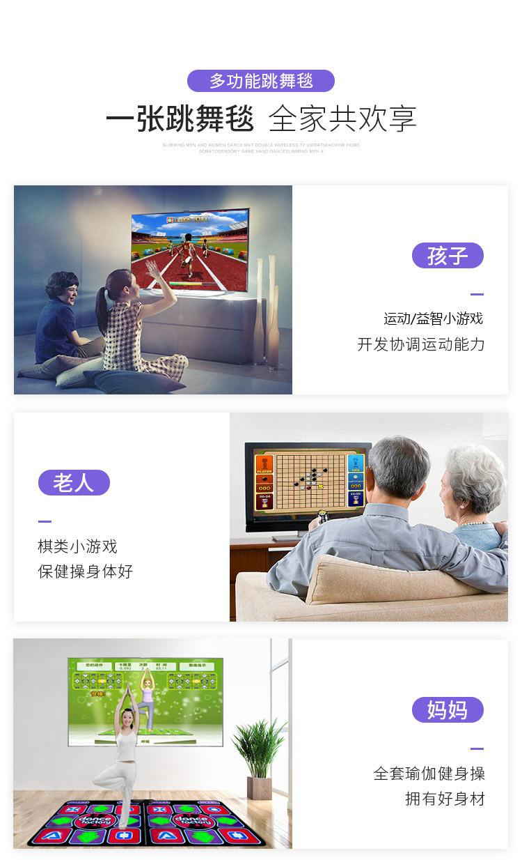 2025新款音充电无线双人家用跳舞毯电视体感游戏机跑步毯跳舞机