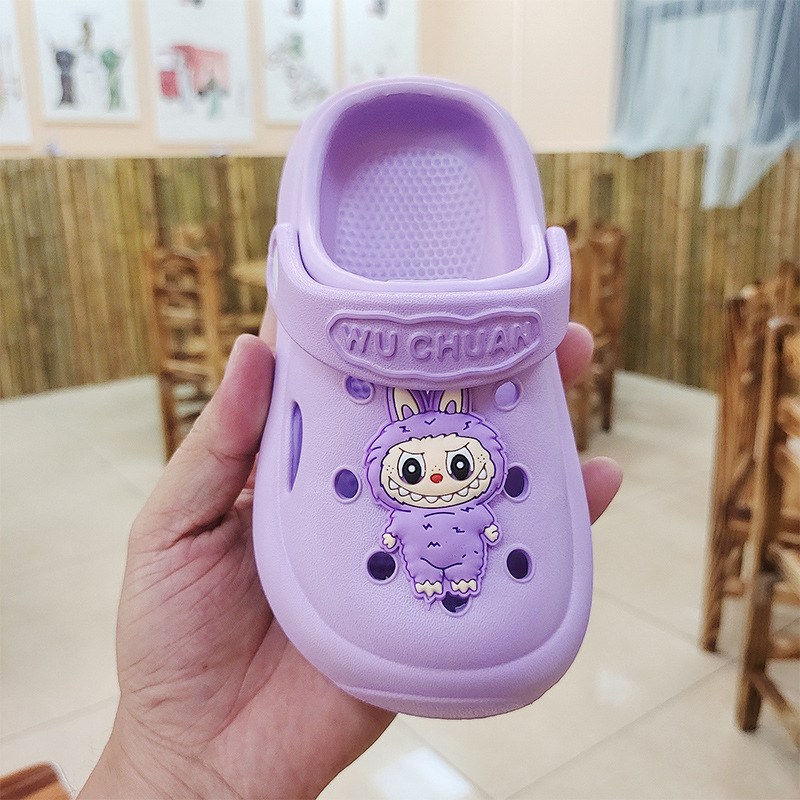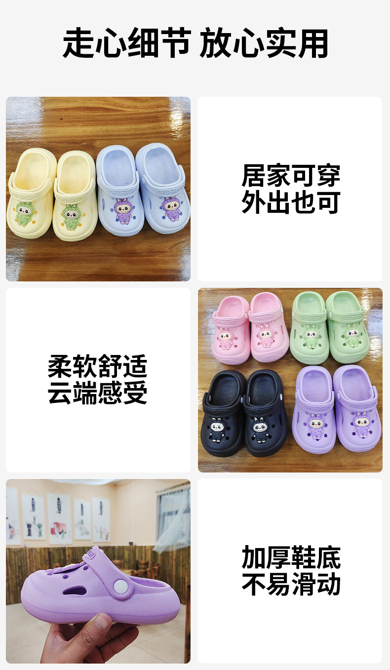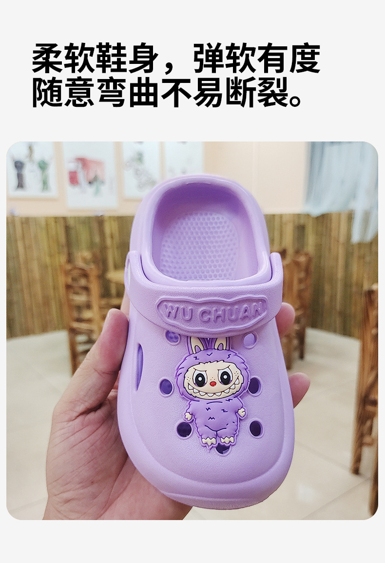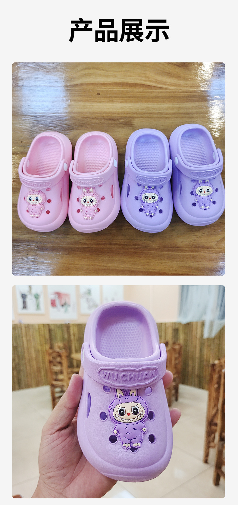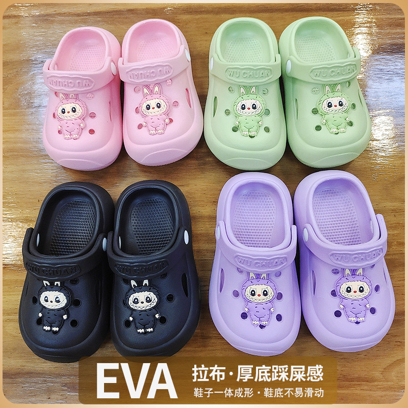 Летние домашние тапочки для девочек из ЭВА, новые детские сабо Labubu, оптом.