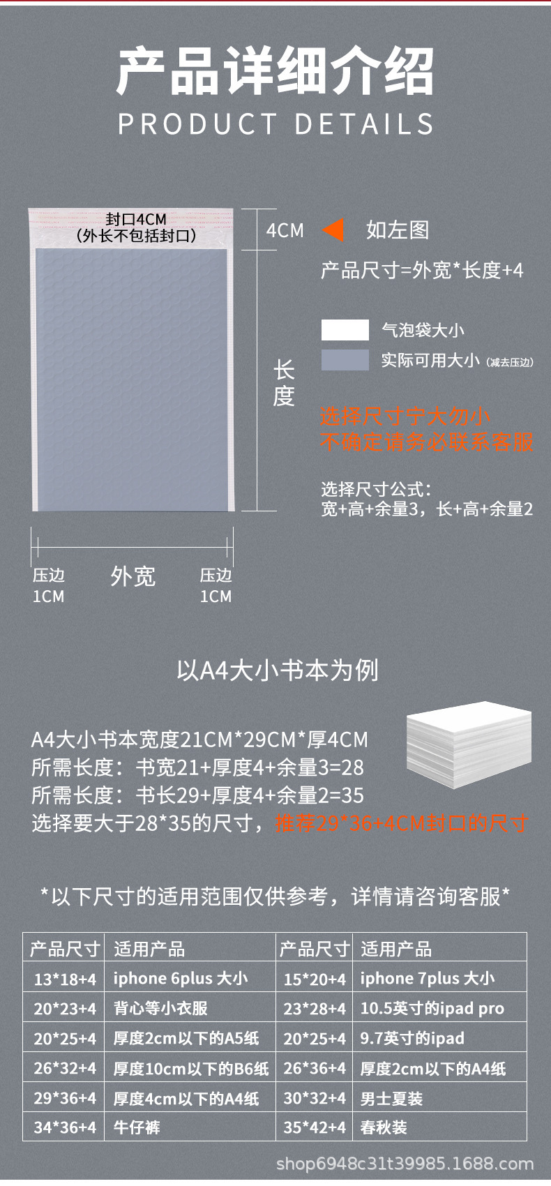 批发气泡快递袋防震防潮珠光膜复合气泡袋物流快递自粘打包气泡袋