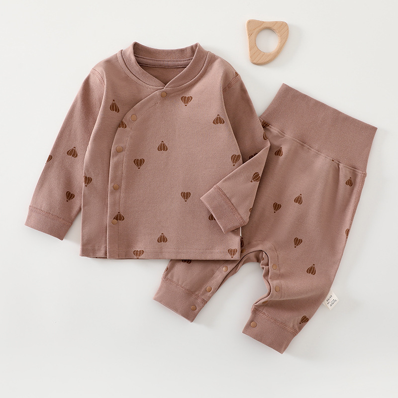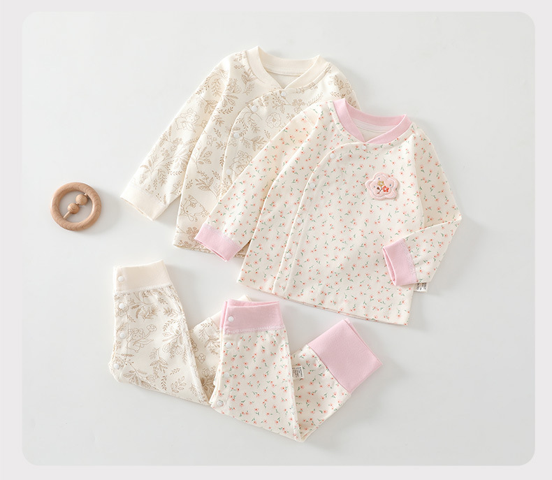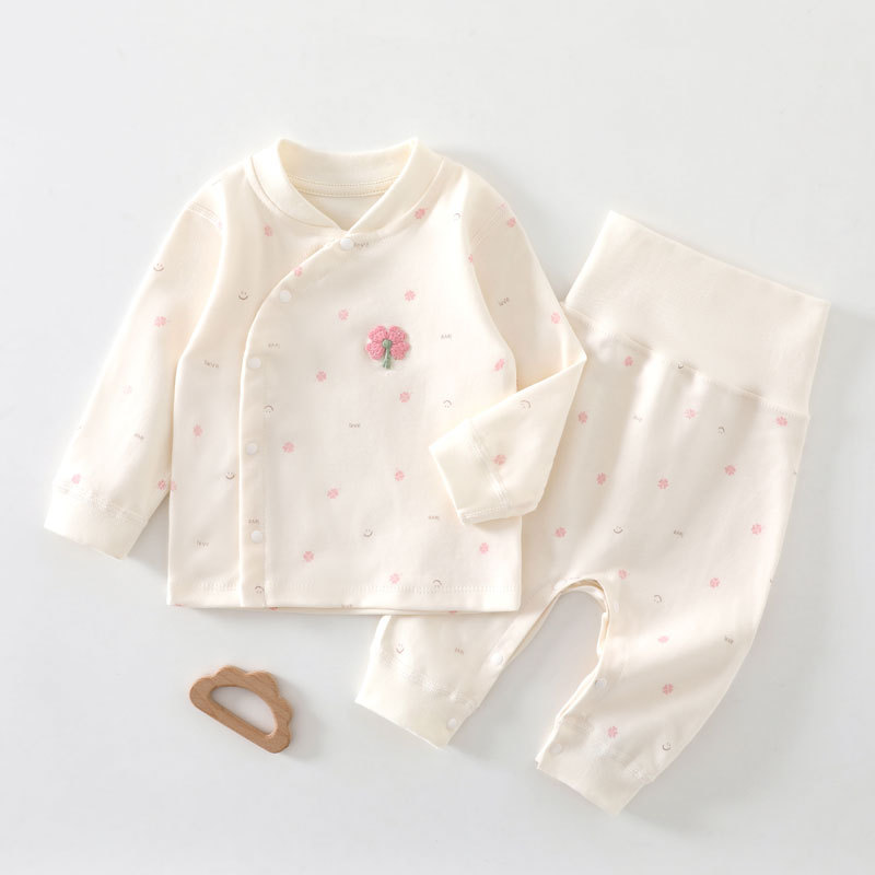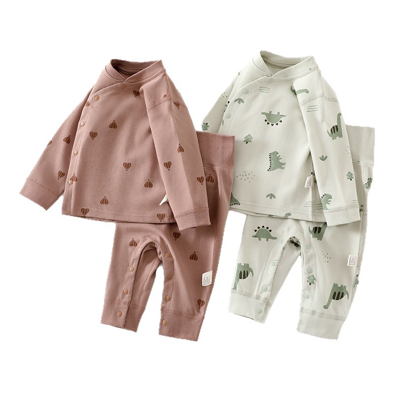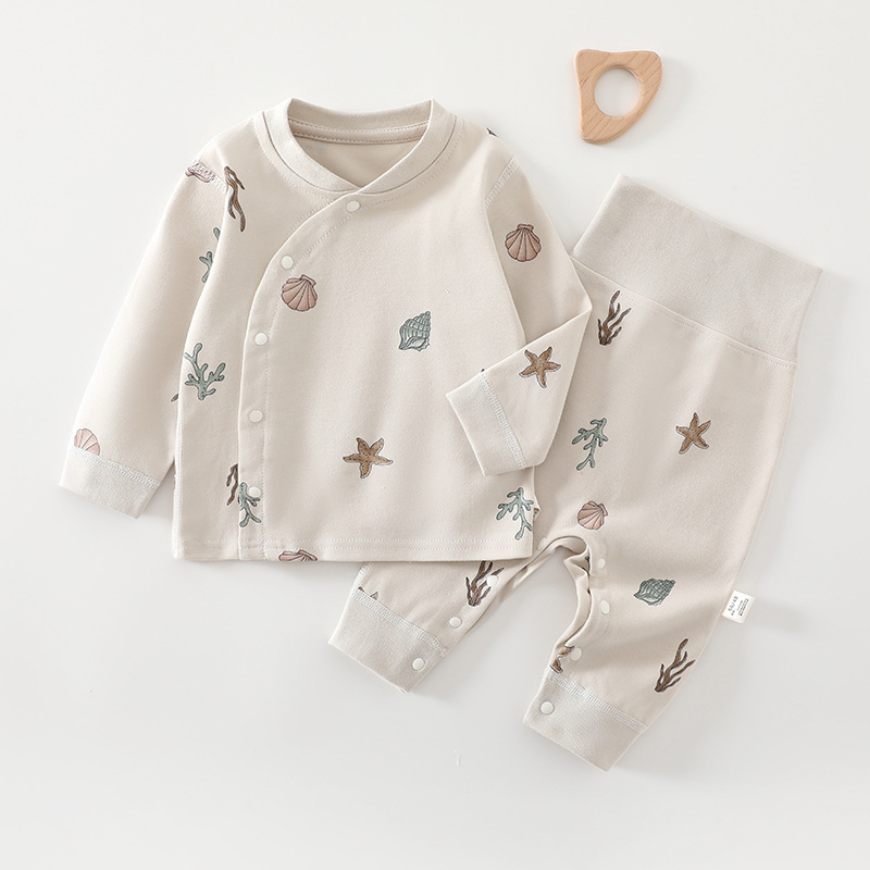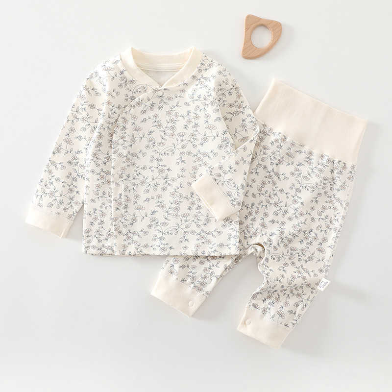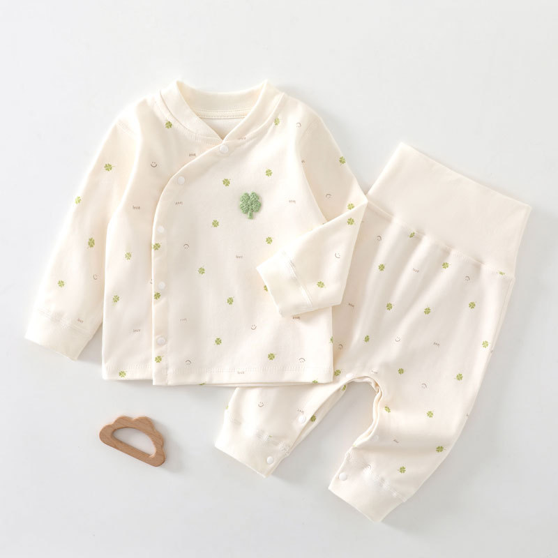 [Кнопка на ноге] Комплект детского нижнего белья из чистого хлопка Four Seasons, без костей, с частичной кнопкой, защита живота, детская осенняя одежда, пижамы