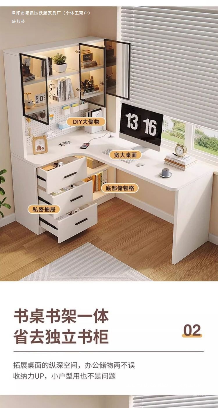 工厂直销转角书桌洞洞板家用书桌书架书房一体简约轻奢学习桌成套