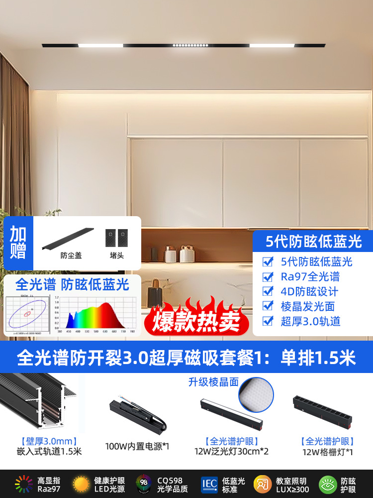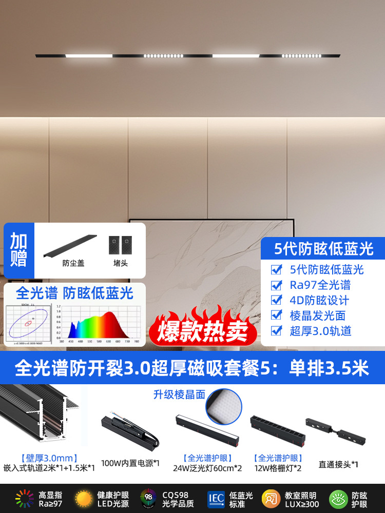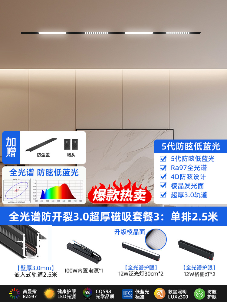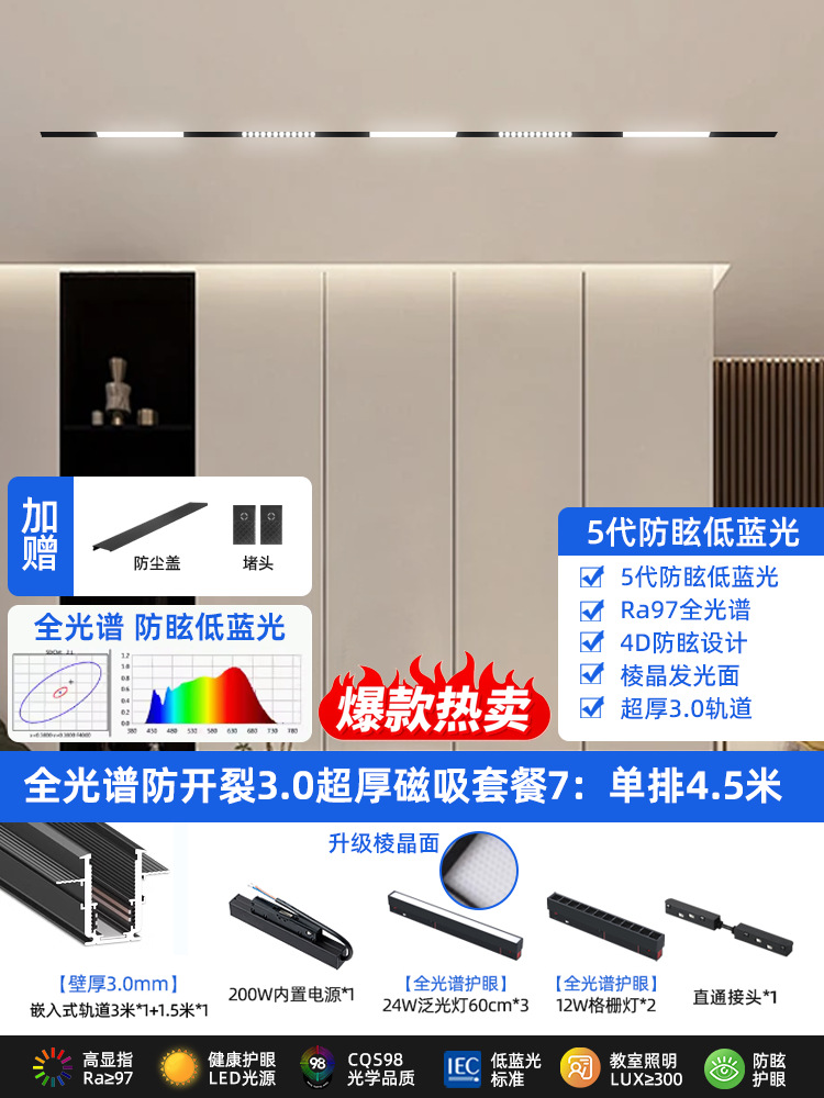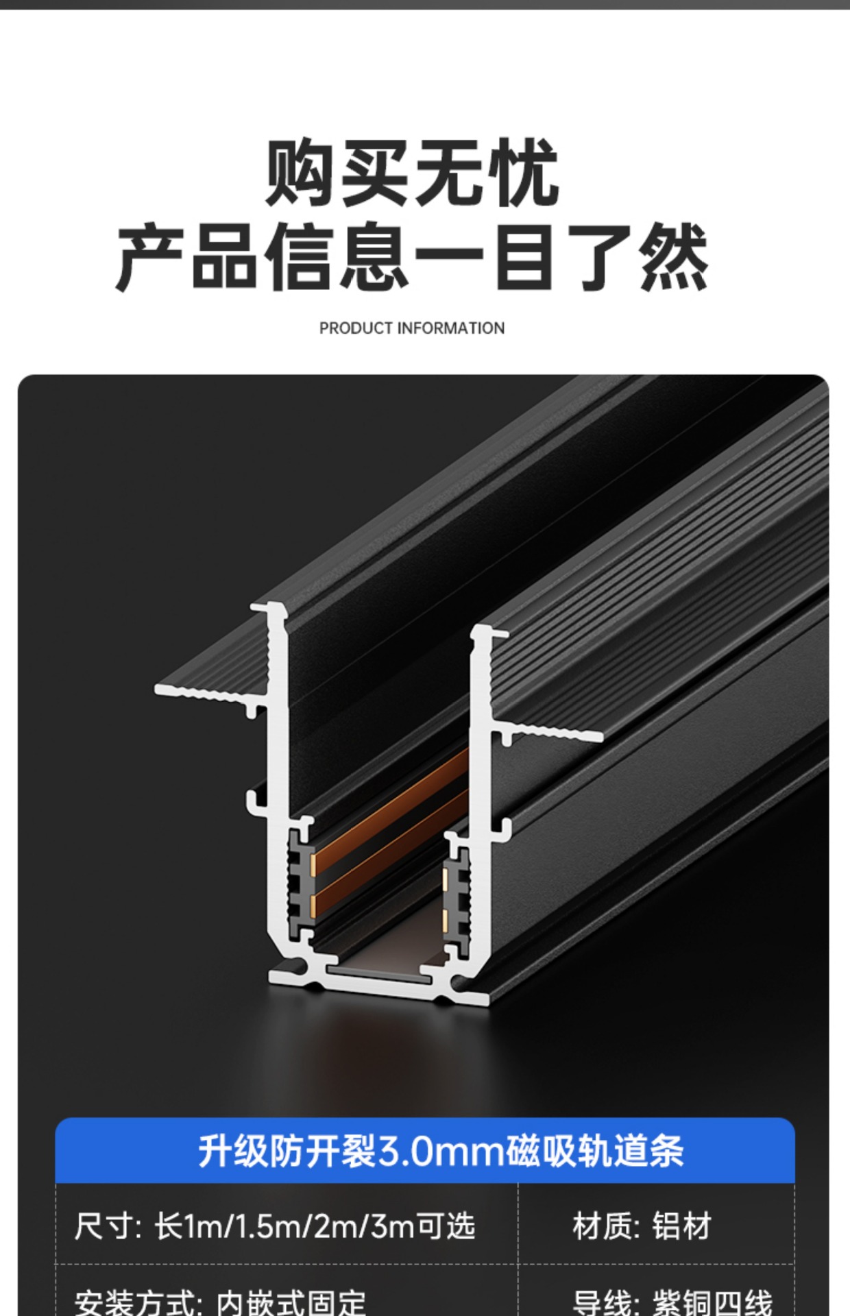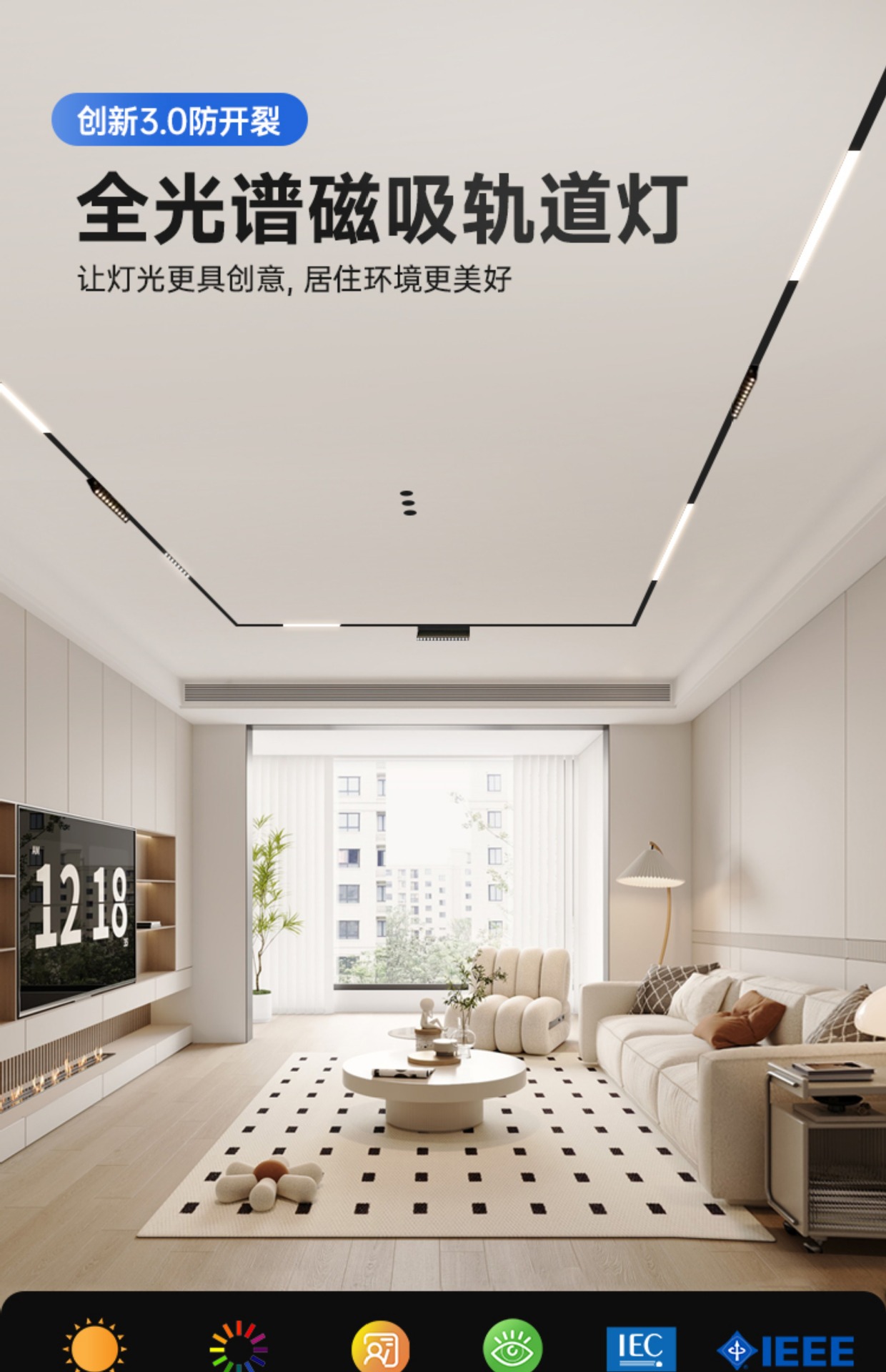 Магнитный трековый светильник с защитой от трещин, предустановленный встраиваемый прожектор, умный скрытый светильник без основного освещения.