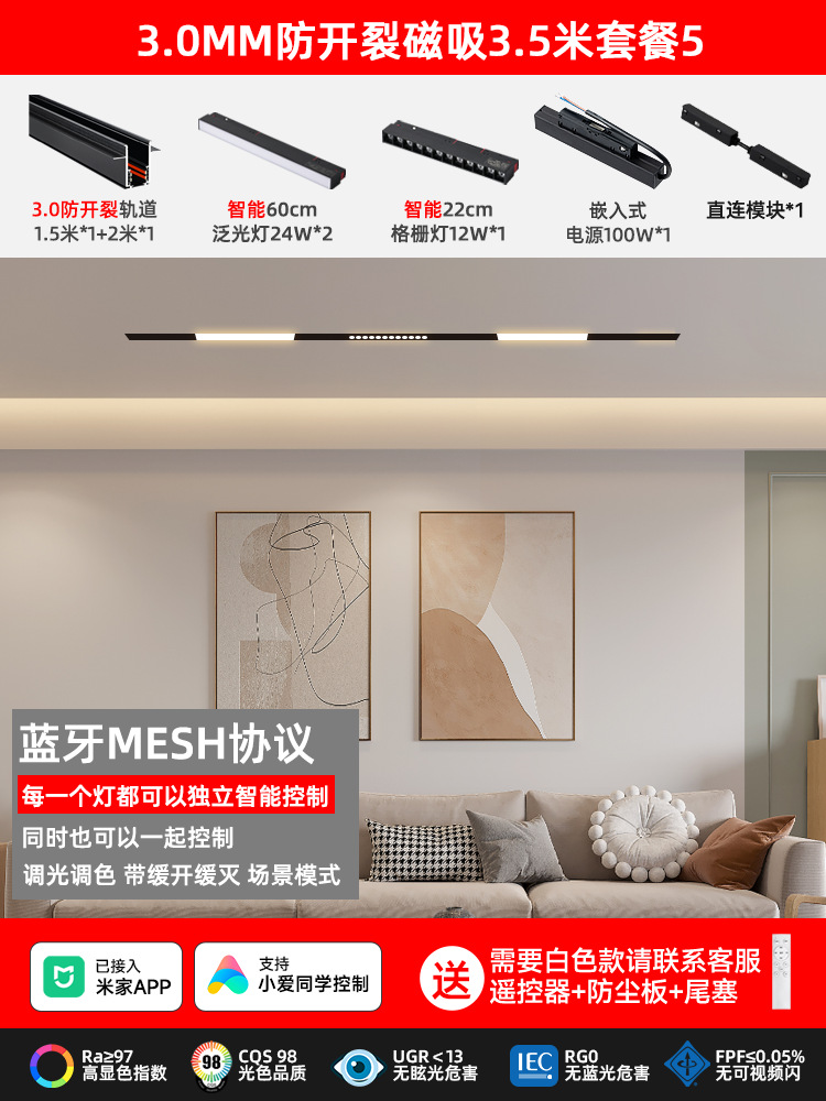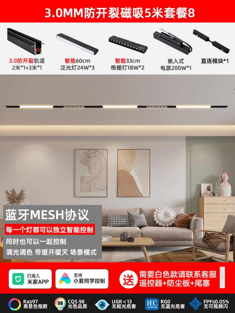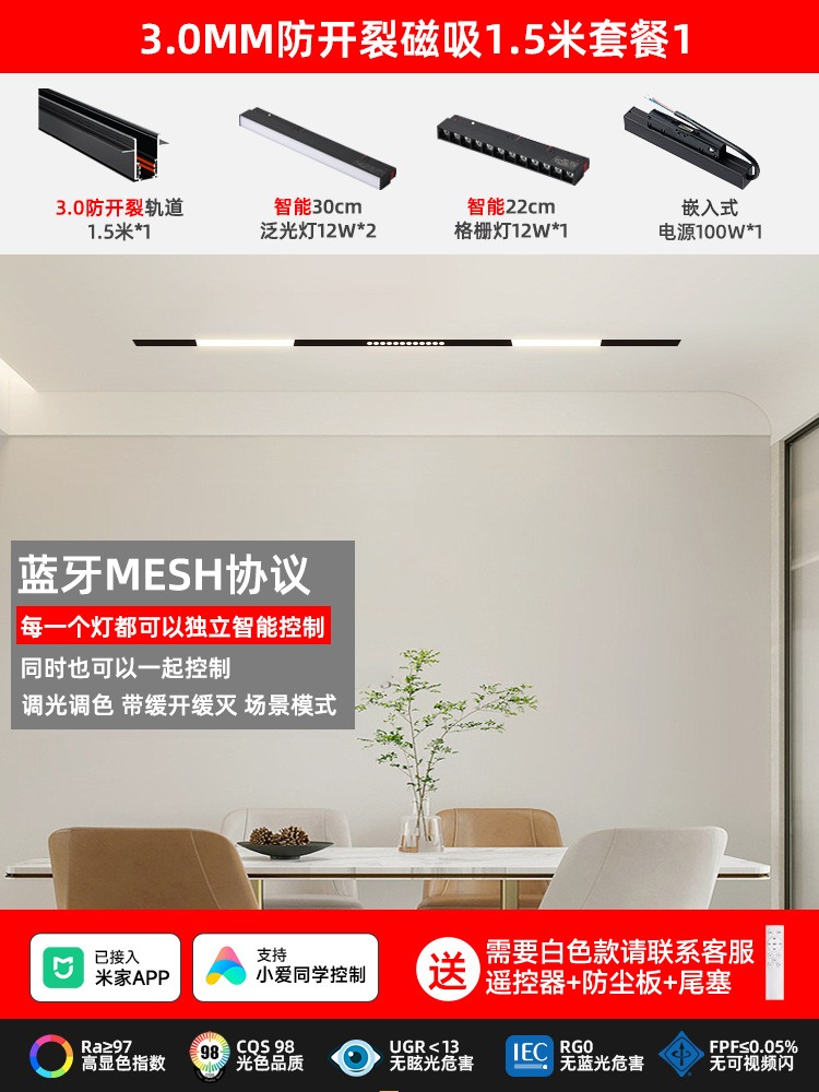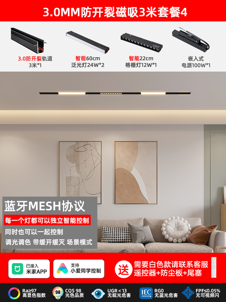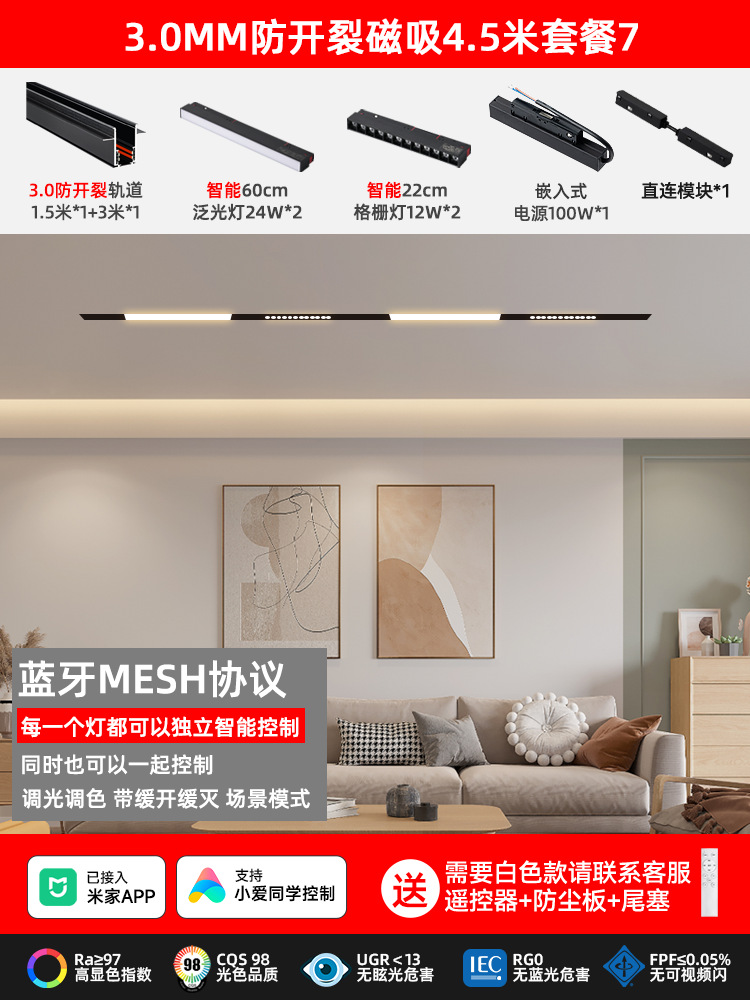 1.5m /Один ряд/упаковка [Одноцветный, 4000K, полный спектр, индекс цветопередачи 98]; 2m /Один ряд/упаковка [Одноцветный, 4000K, полный спектр, индекс цветопередачи 98]; 2.5m /Один ряд/упаковка [Одноцветный, 4000K, полный спектр, индекс цветопередачи 98]; 3m /Один ряд/упаковка [Одноцветный, 4000K, полный спектр, индекс цветопередачи 98]; 3.5m /Один ряд/упаковка [Одноцветный, 4000K, полный спектр, индекс цветопередачи 98]; 4m /Один ряд/упаковка [Одноцветный, 4000K, полный спектр, индекс цветопередачи 98]; 4.5m /Один ряд/упаковка [Одноцветный, 4000K, полный спектр, индекс цветопередачи 98]; 5m /Один ряд/упаковка [Одноцветный, 4000K, полный спектр, индекс цветопередачи 98]; 6m /Один ряд/упаковка [Одноцветный, 4000K, полный спектр, индекс цветопередачи 98]; 1.5m /Один ряд/упаковка [подключено к приложению Mijia/Smart]; 2m /Один ряд/упаковка [подключено к приложению Mijia/Smart]; 2.5m /Один ряд/упаковка [подключено к приложению Mijia/Smart]; 3m /Один ряд/упаковка [подключено к приложению Mijia/Smart]; 3.5m /Один ряд/упаковка [подключено к приложению Mijia/Smart]; 4m /Один ряд/упаковка [подключено к приложению Mijia/Smart]; 4.5m /Один ряд/упаковка [подключено к приложению Mijia/Smart]; 5m /Один ряд/упаковка [подключено к приложению Mijia/Smart]; 6m /Один ряд/упаковка [подключено к приложению Mijia/Smart]; 1m трек (предварительно встроенный) [3.0, утолщённый для предотвращения растрескивания]; 1.5m трек (предварительно встроенный) [3.0, утолщённый для предотвращения растрескивания]; 2m трек (предварительно встроенный) [3.0, утолщённый для предотвращения растрескивания]; 3m трек (предварительно встроенный) [3.0, утолщённый для предотвращения растрескивания]; Прожектор-12 Вт [монохромный, 4000K, полный спектр, индекс цветопередачи 98]; Прожектор-24 Вт [монохромный, 4000K, полный спектр, индекс цветопередачи 98]; Прожектор Floodlight-36W [монохромный, 4000K, полный спектр, индекс цветопередачи 98]; Светильник для решетки - 6 Вт [монохромный, 4000K, полный спектр, индекс цветопередачи 98]; Светильник для решетки - 12 Вт [монохромный, 4000K, полный спектр, индекс цветопередачи 98]; Светильник для решетки - 18 Вт [монохромный, 4000K, полный спектр, индекс цветопередачи 98]; Светильник для решетки - 24 Вт [монохромный, 4000K, полный спектр, индекс цветопередачи 98]; Складной светильник с решеткой - 6 Вт [монохромный, 4000K, полный спектр, индекс цветопередачи 98]; Складной светильник с решеткой - 12 Вт [монохромный, 4000K, полный спектр, индекс цветопередачи 98]; Складной светильник с решеткой - 18 Вт [монохромный, 4000K, полный спектр, индекс цветопередачи 98]; Трековый светильник - 12 Вт [Одноцветный, 4000K, полный спектр, CRI98]; Трековый светильник - 24 Вт [Одноцветный, 4000K, полный спектр, CRI 98]; Прожектор-12 Вт [подключен к приложению Mijia/Smart]; Прожектор-24 Вт [подключен к приложению Mijia/Smart]; Светильник для решетки - 12 Вт [подключается к приложению Mijia/Smart]; Светильник для решетки - 18 Вт [подключается к приложению Mijia/Smart]; Складной светильник с решеткой - 12 Вт [подключается к приложению Mijia/Smart]; Складной светильник с решеткой - 18 Вт [подключается к приложению Mijia/Smart]; Трековый светильник-спот - 12 Вт [Поддержка приложения Mi Home/Умный дом]; Подвесная люстра-10 Вт [подключена к приложению Mijia/Smart]; Блок питания 100 Вт; Блок питания 200 Вт; Блок питания 300 Вт; Продольно-проводящий модуль; Угловой проводящий модуль; Горизонтальный угол, защищающий от растрескивания