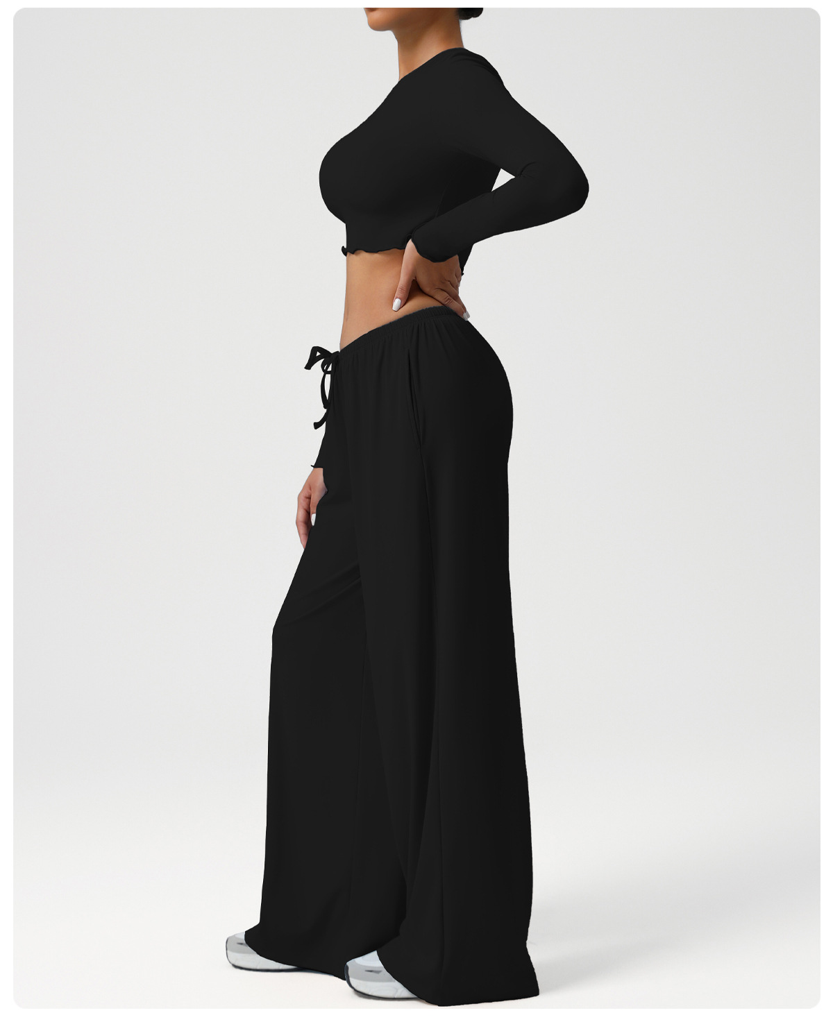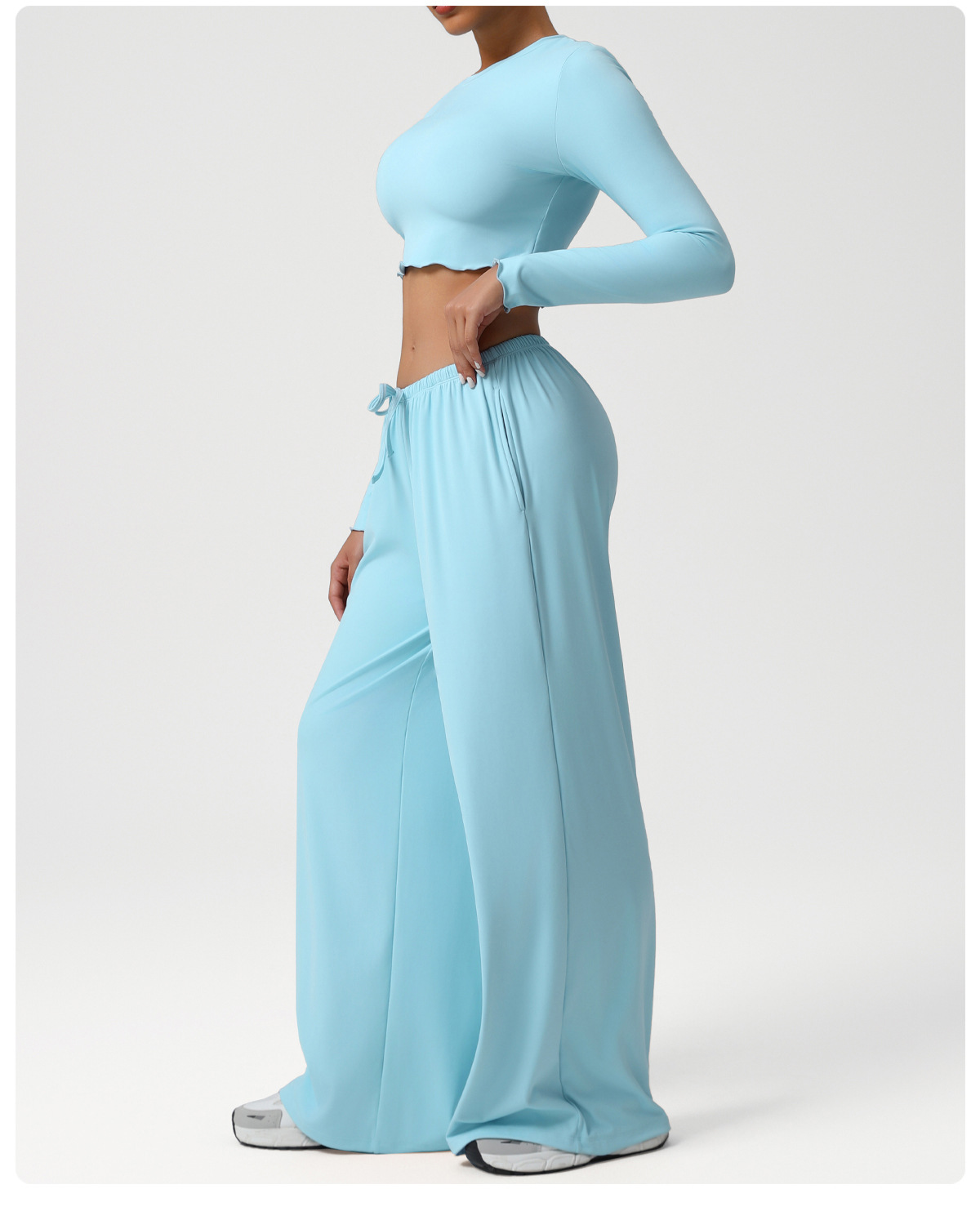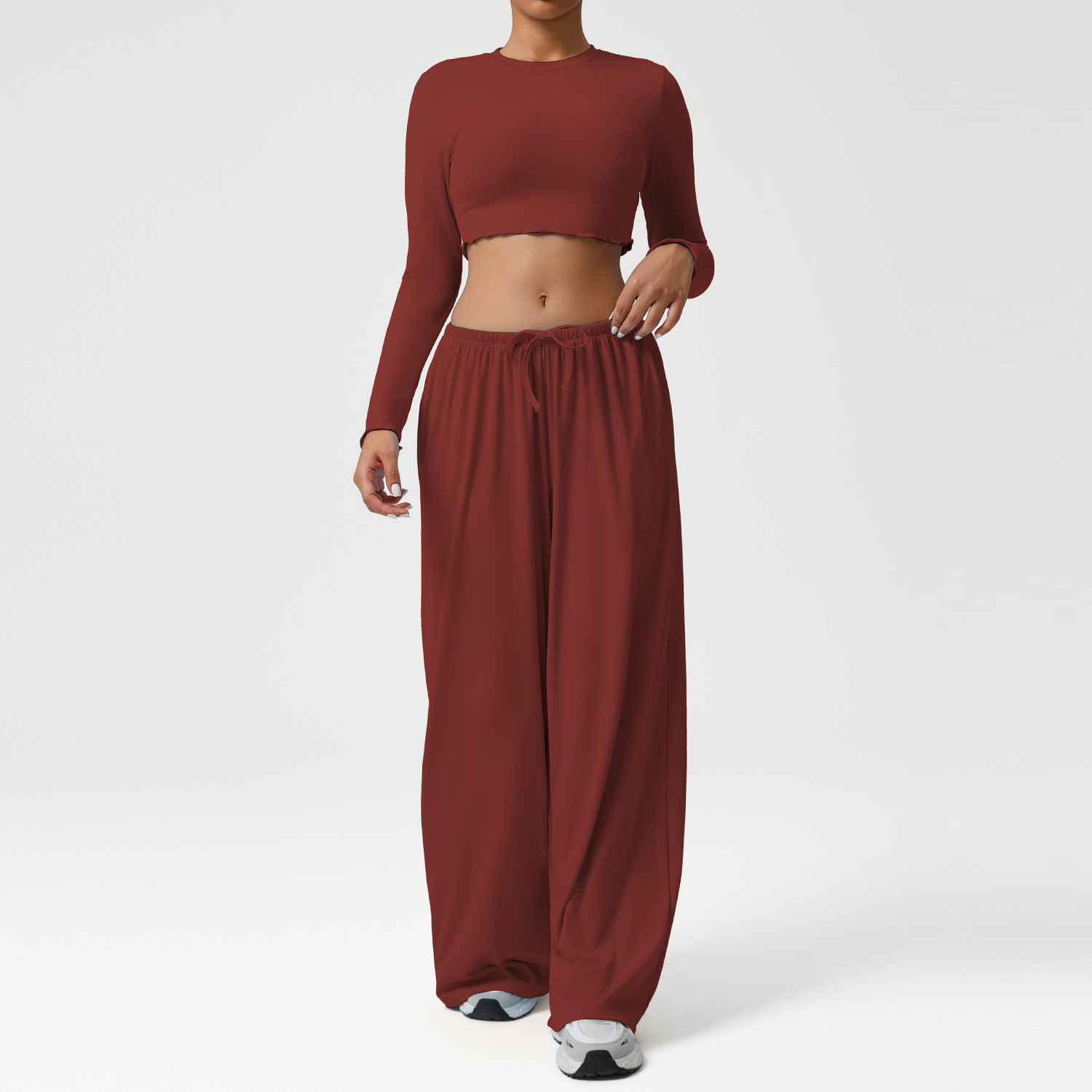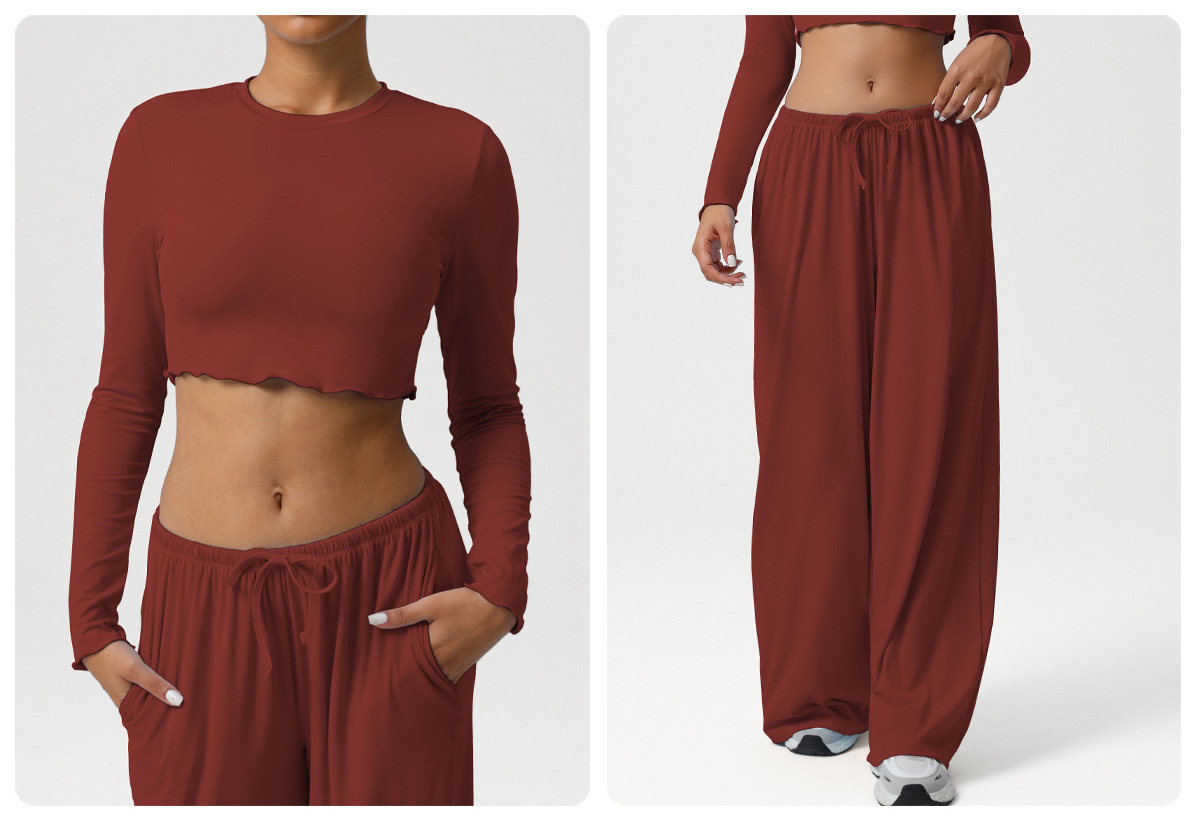 Новый европейский и американский костюм для танцев, спортивные свободные драпированные широкие брюки, одежда для йоги, тонкие топы с длинными рукавами, костюм для фитнеса