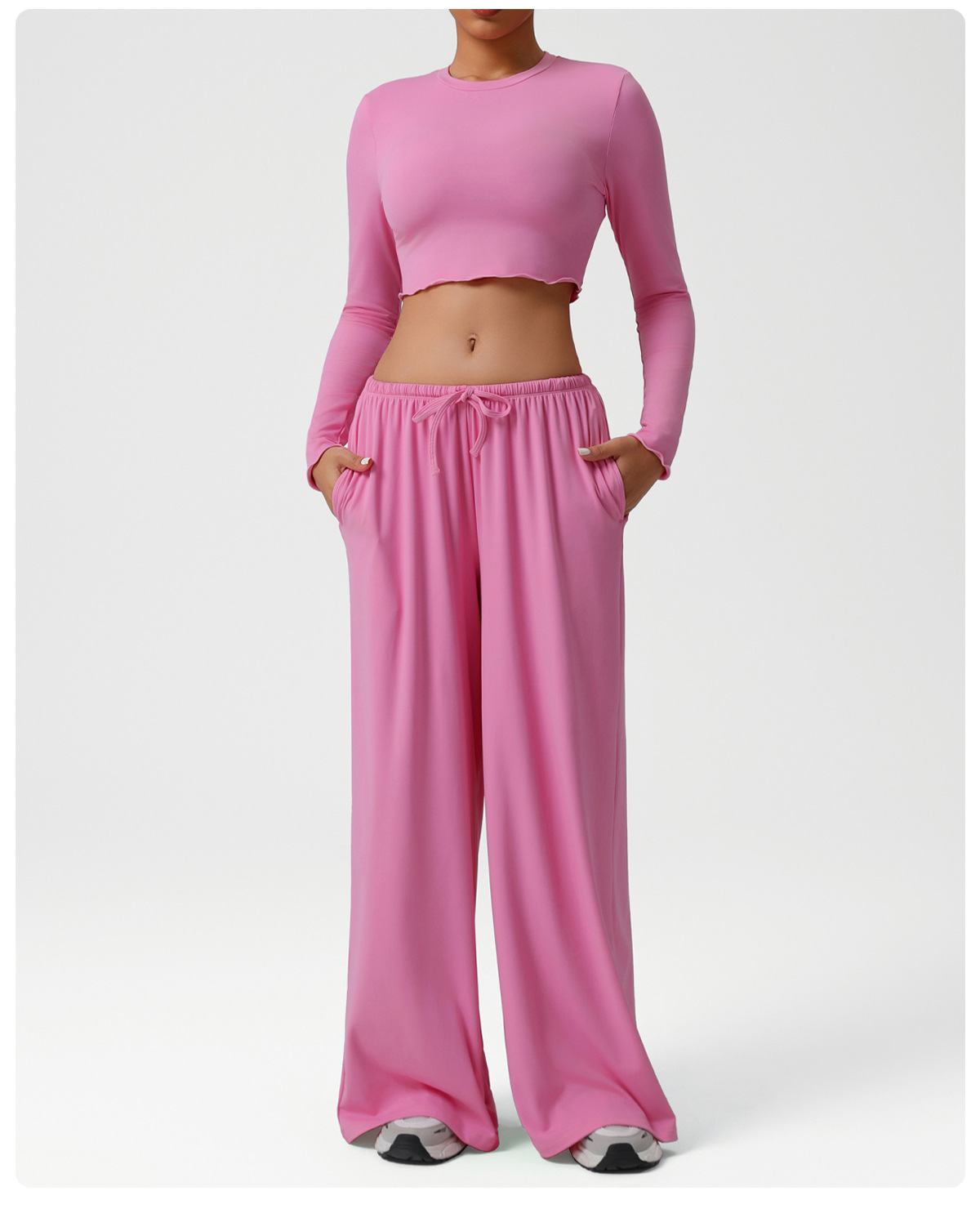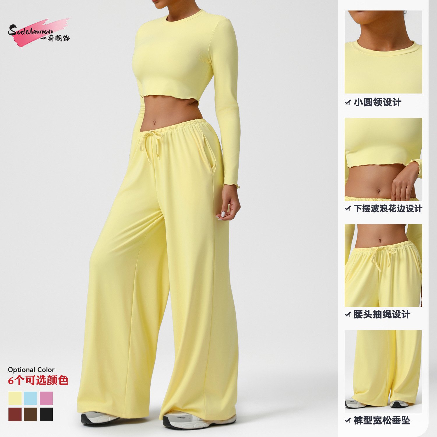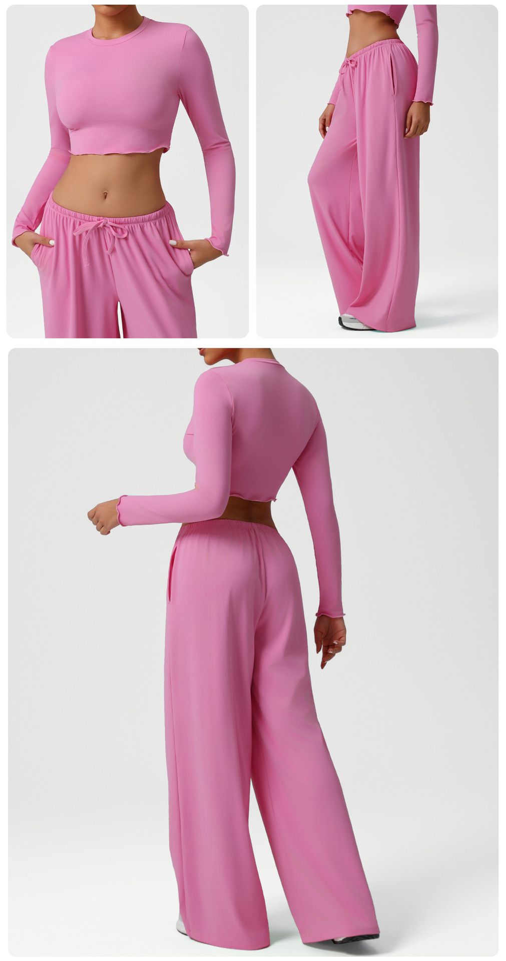 Новый европейский и американский костюм для танцев, спортивные свободные драпированные широкие брюки, одежда для йоги, тонкие топы с длинными рукавами, костюм для фитнеса